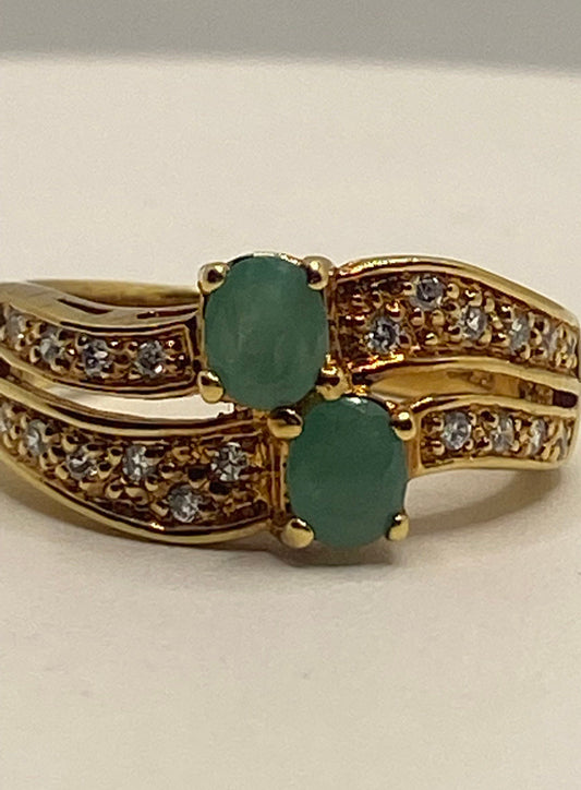Vintage Green Emerald Golden 925 Sterling Silver Cocktail Ring