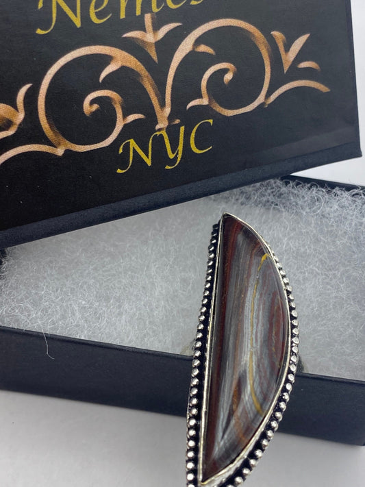 Vintage Large Red Tigers Eye Agate Silver Ring