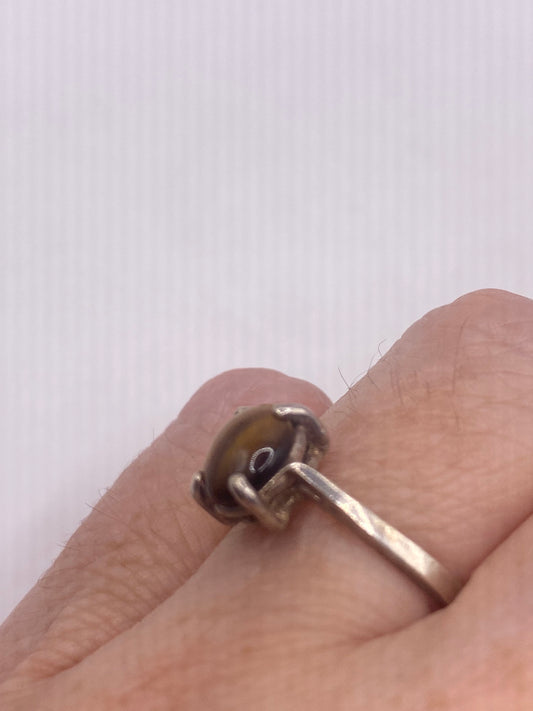 Vintage Handmade Deep Gold Sandstone Setting Silver Ring