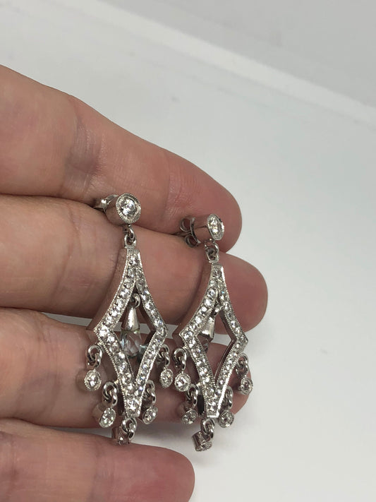 Vintage Sterling Silver diamond look Gemstone Chandelier Earrings