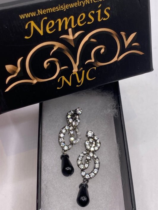 Vintage Black Onyx 925 Silver Dangle Earrings