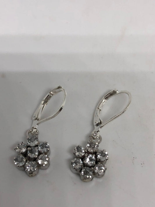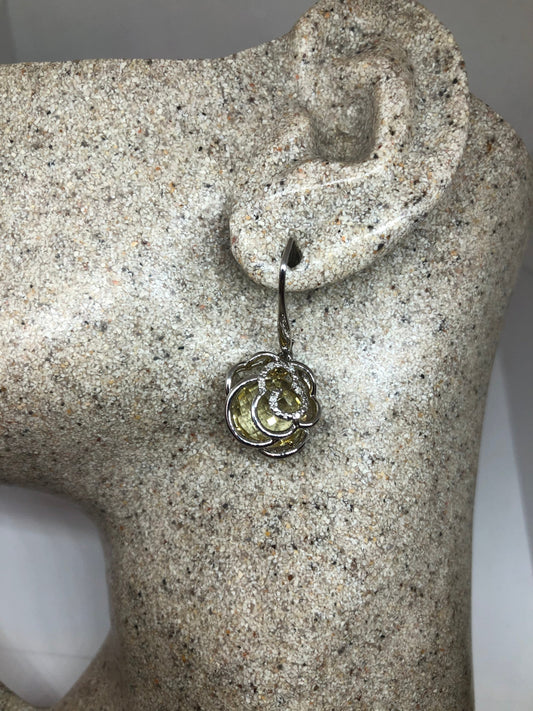 Vintage Genuine White Sapphire Clear Citrine 925 Sterling Silver Dangle Earrings