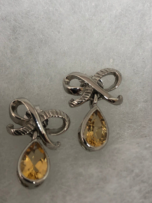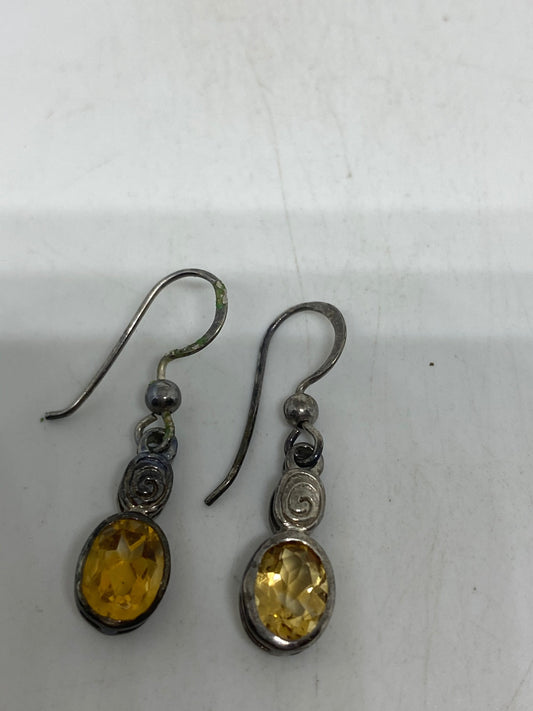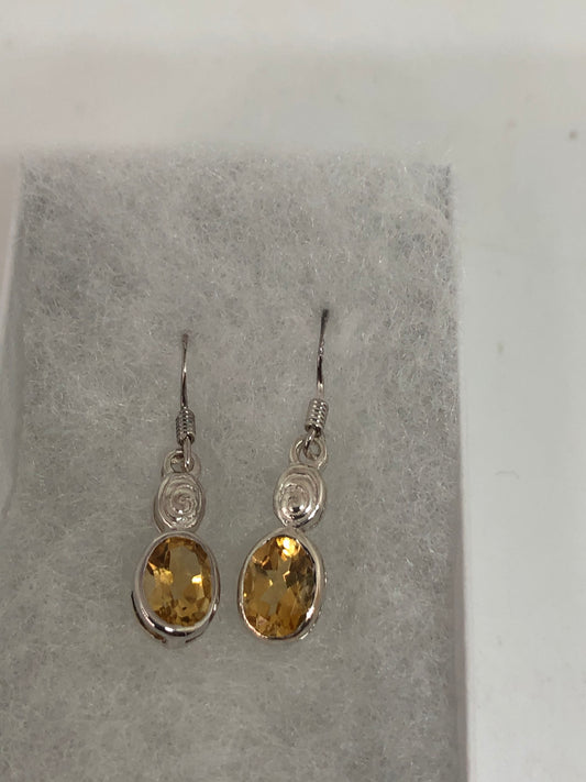 Vintage Citrine Earrings 925 Sterling Silver Drop Dangle