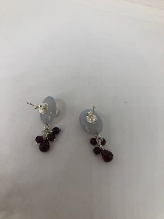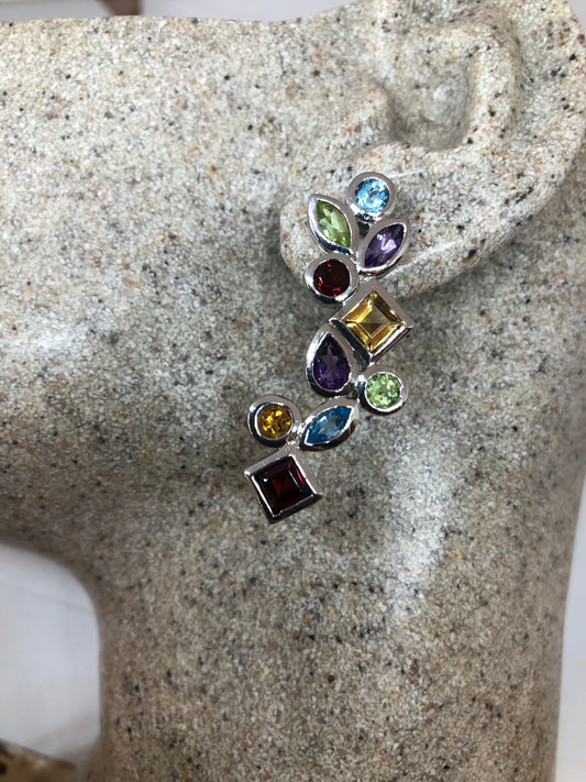 Vintage Mixed Genuine Gemstone Filigree 925 Sterling Silver Dangle button Earrings