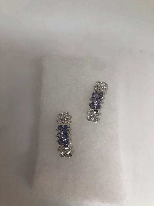 Vintage Blue Tanzanite Earrings 925 Sterling Silver Stud