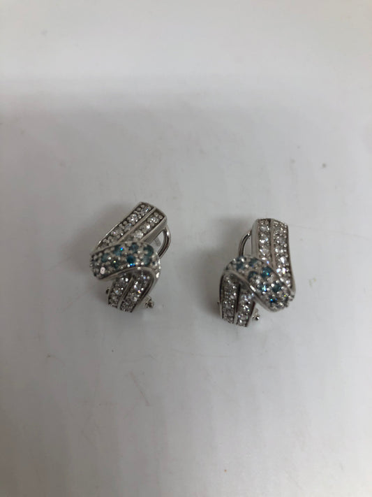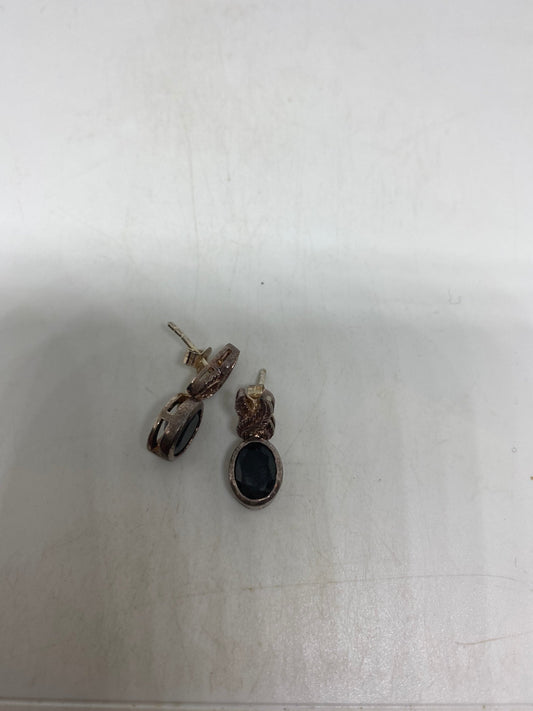 Vintage Genuine Blue Topaz Gemstone 925 Sterling Silver Earrings