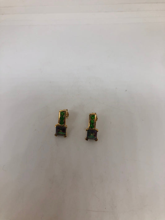 Vintage Blue Mystic Topaz Earrings Golden 925 Sterling Silver Stud button