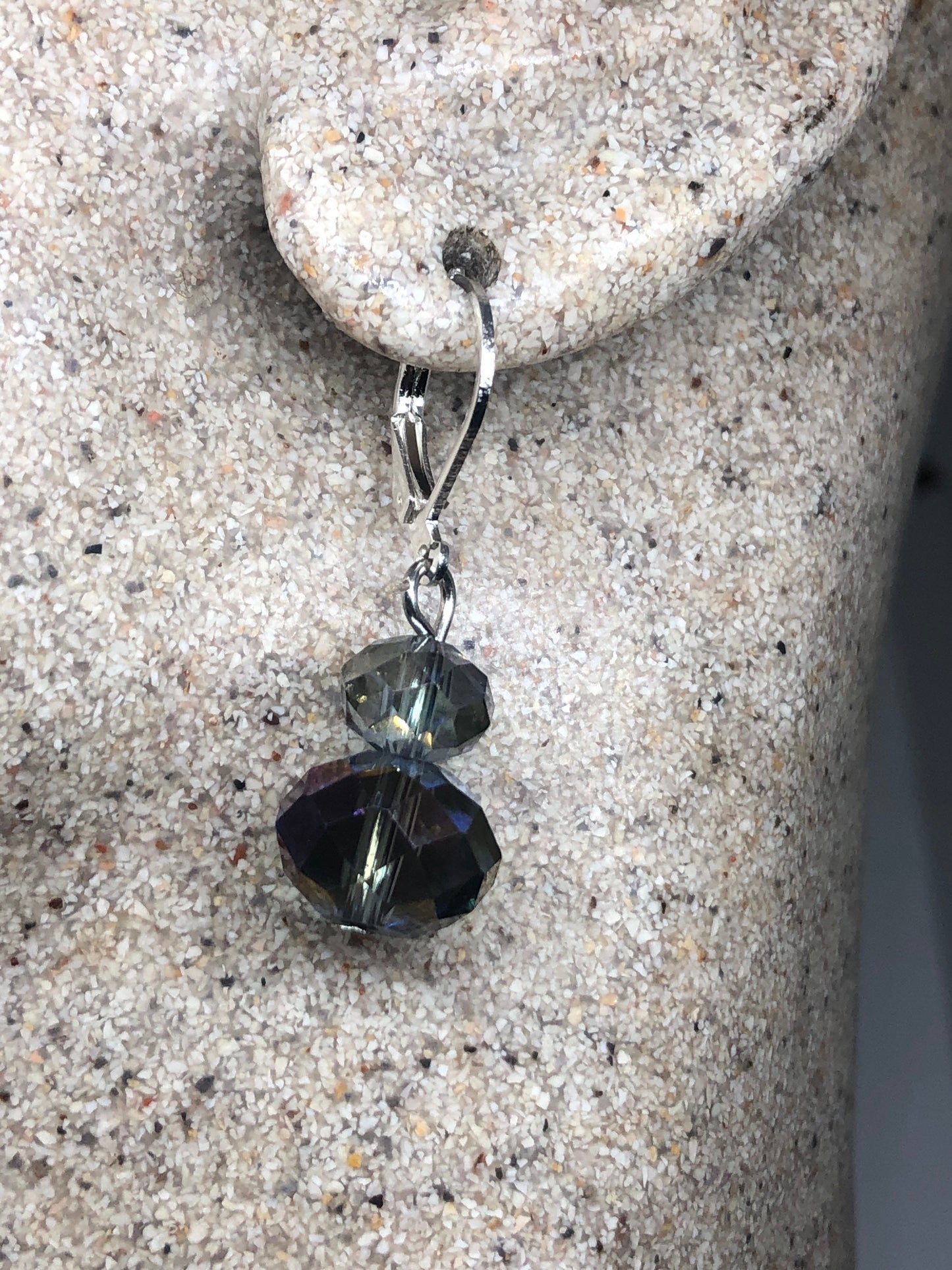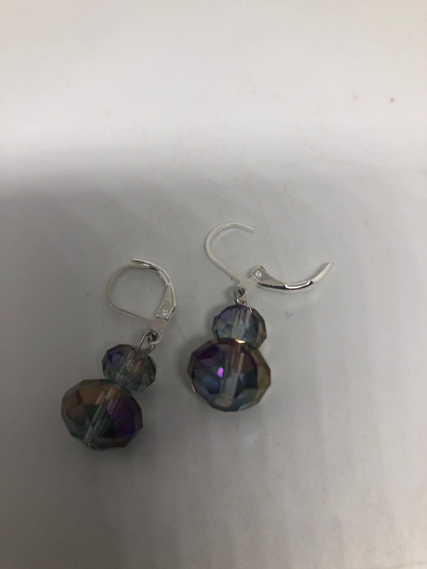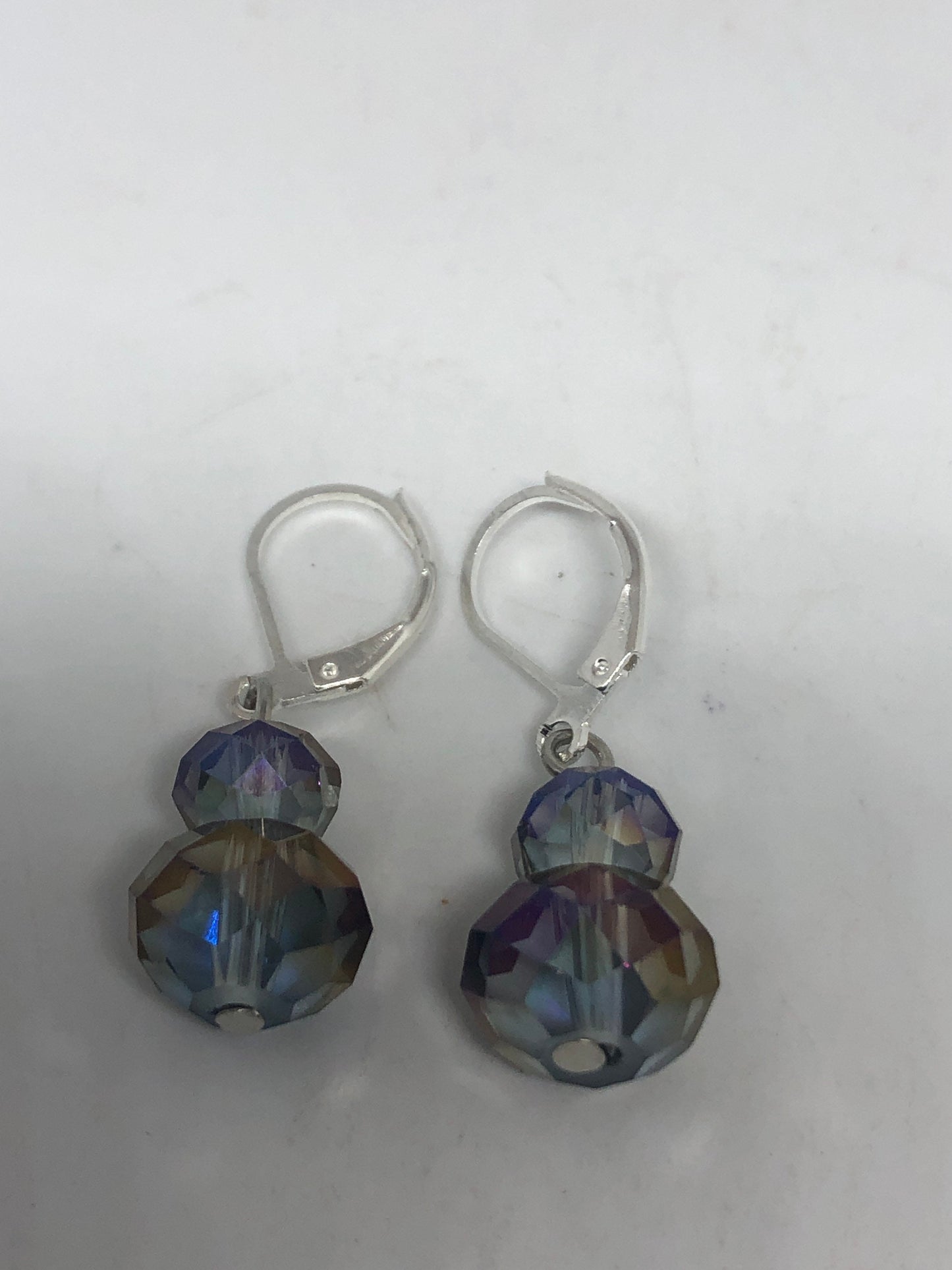 Antique Crystal Sterling Silver Lever Back Dangle Earrings