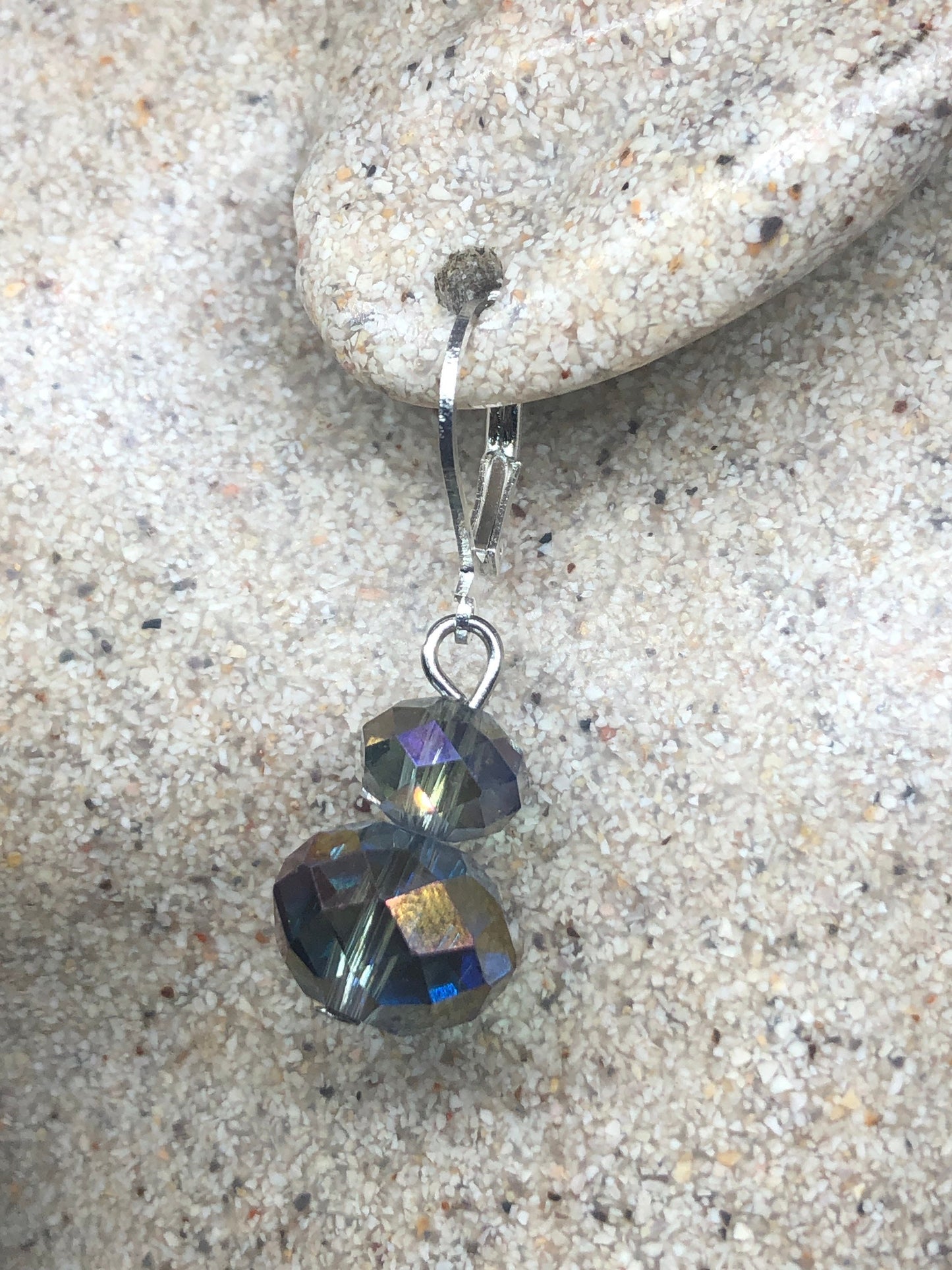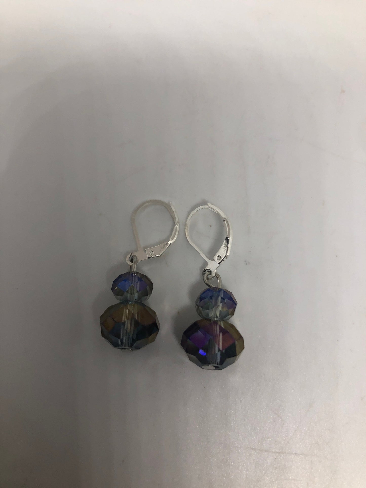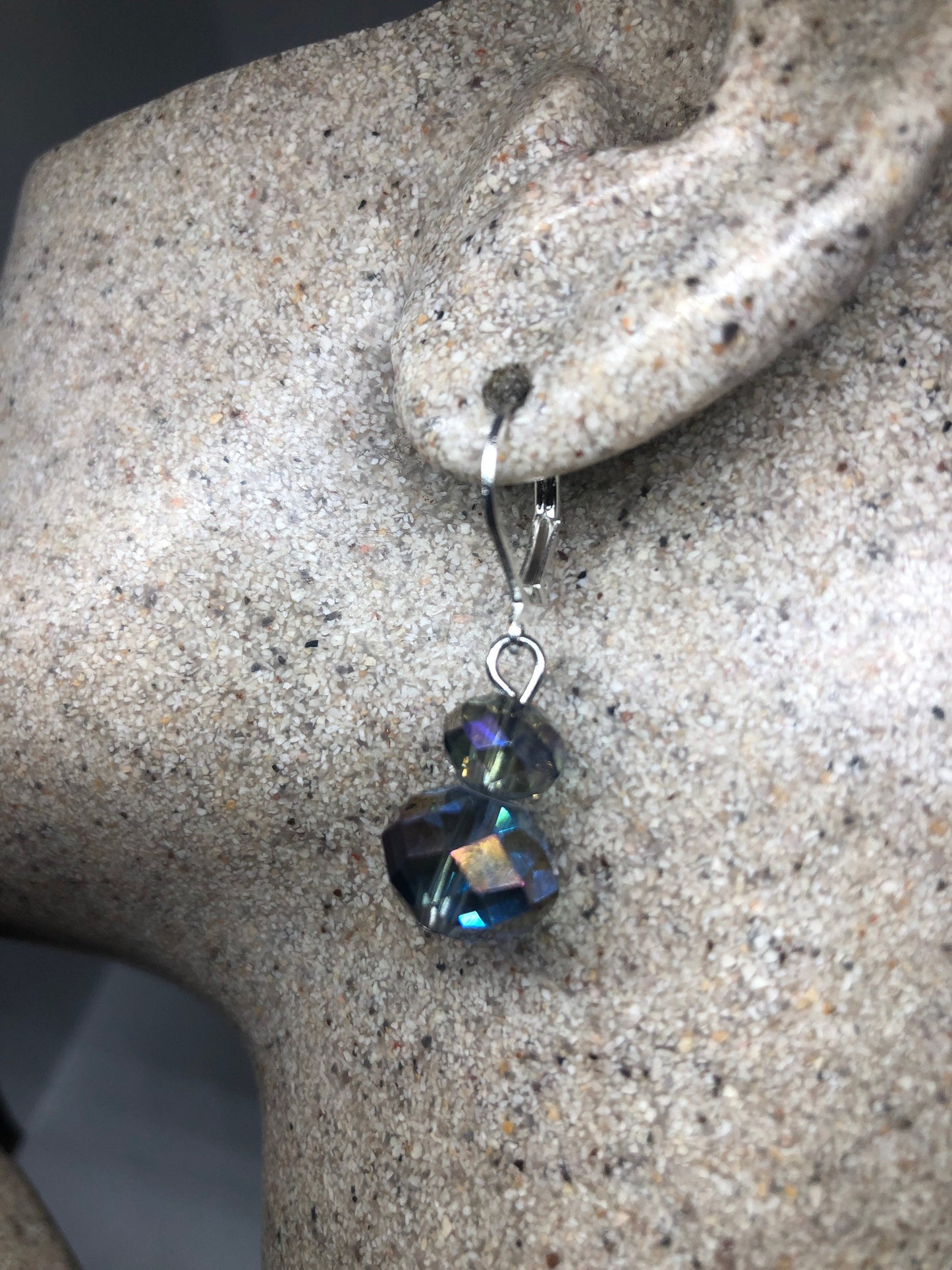 Antique Crystal Sterling Silver Lever Back Dangle Earrings