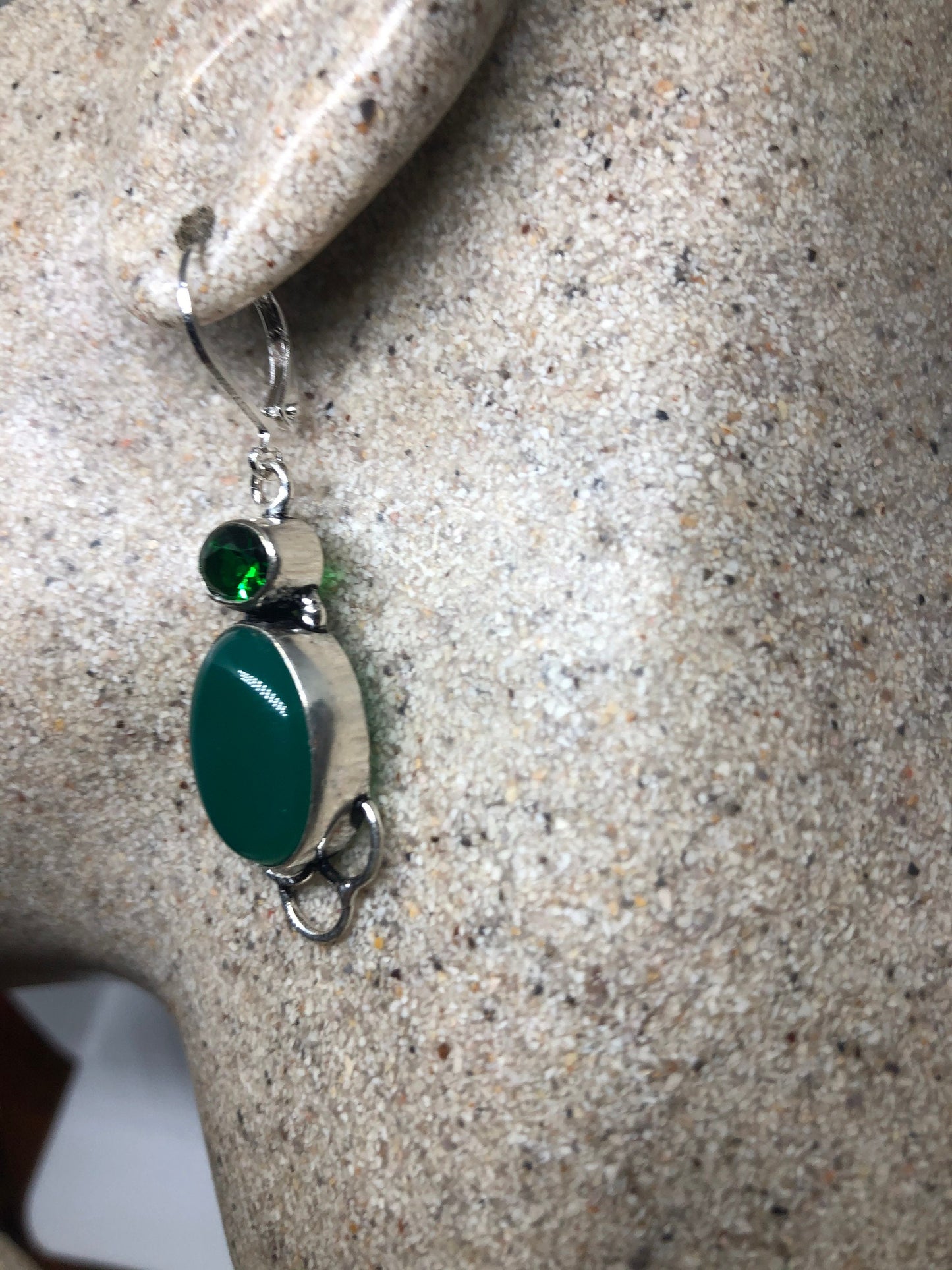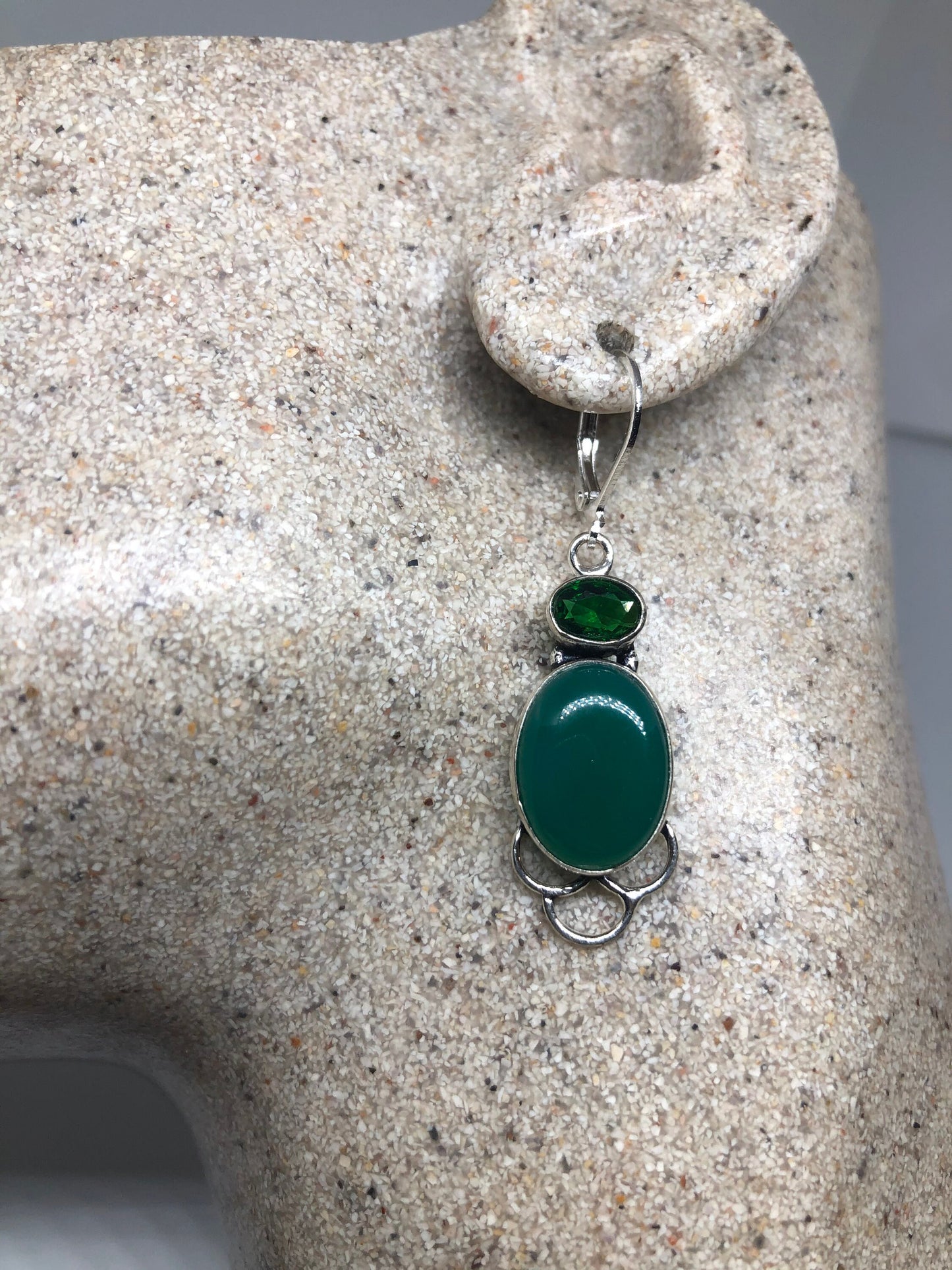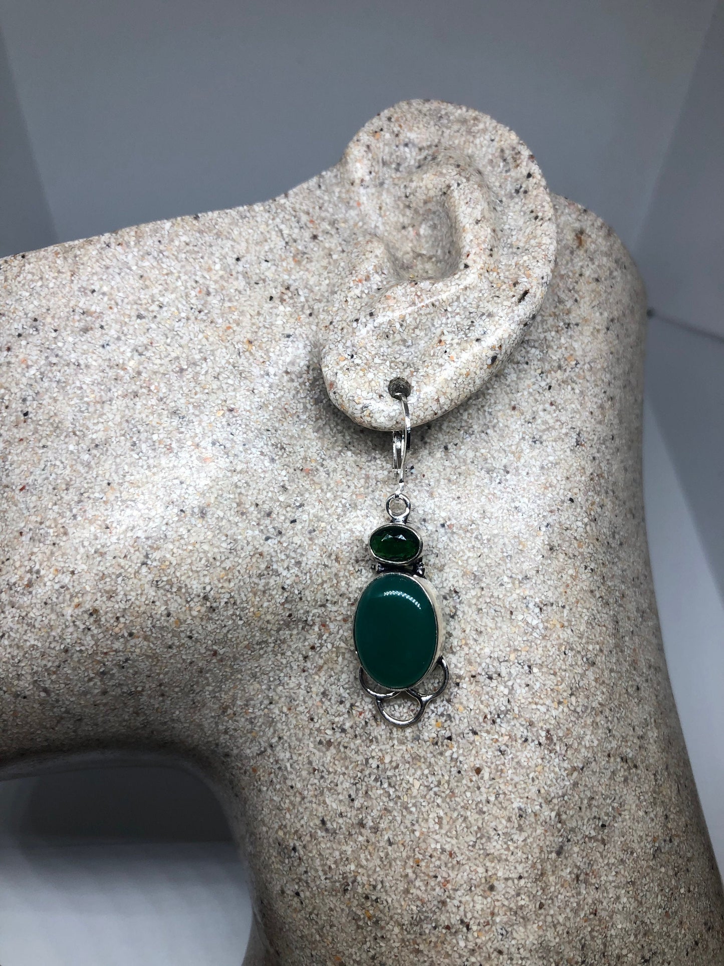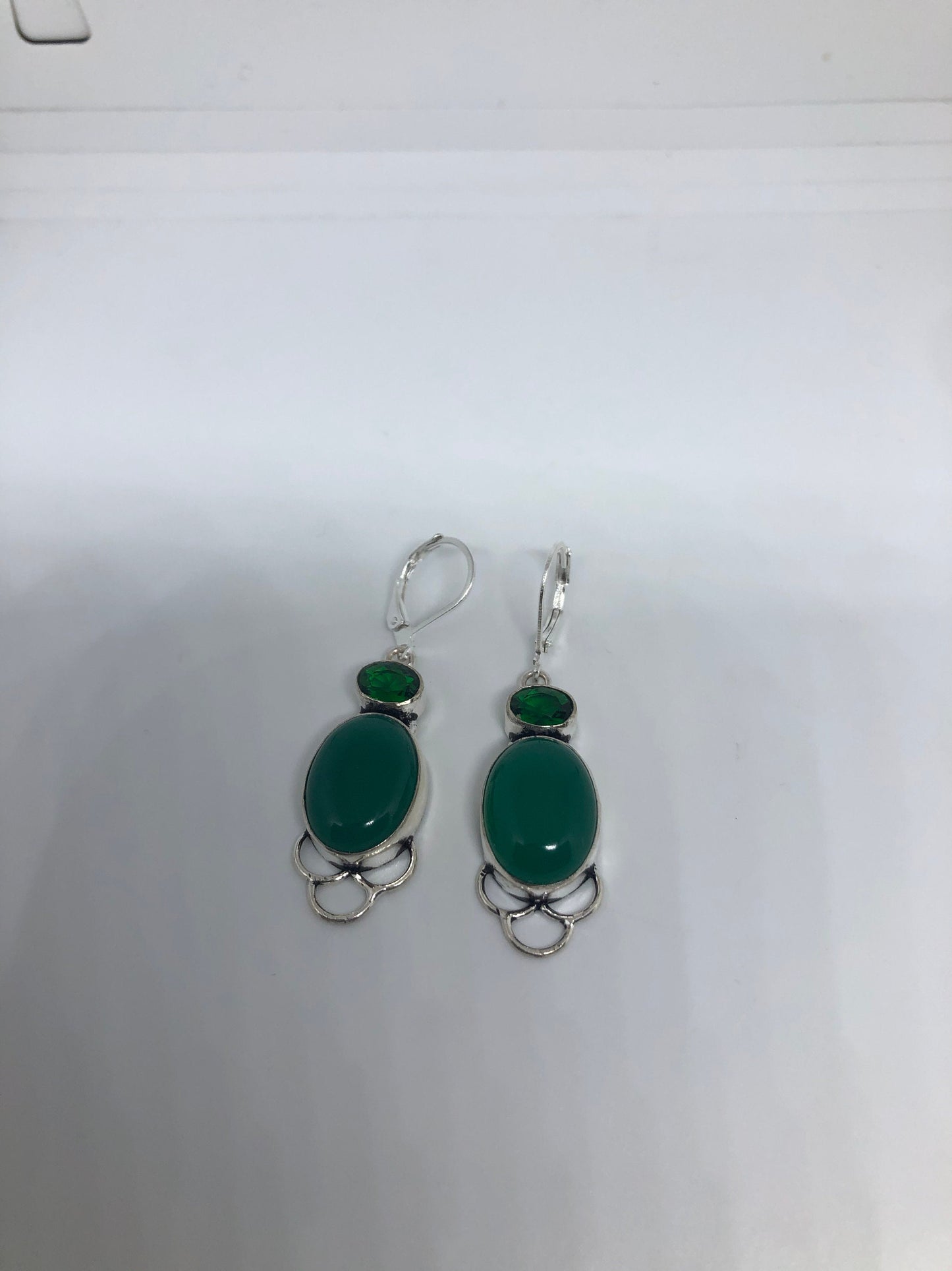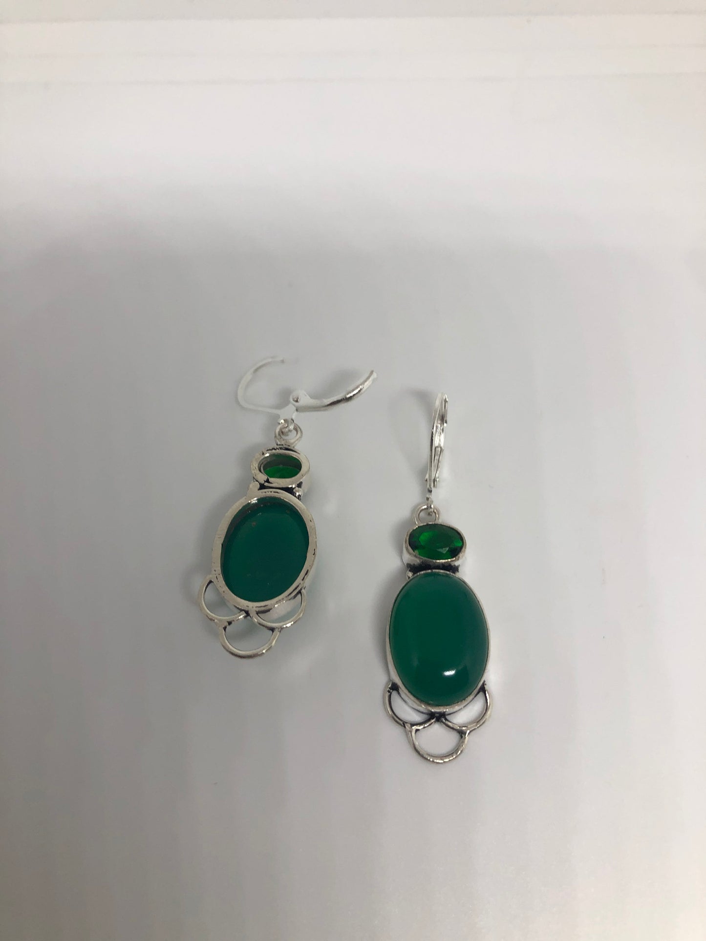 Antique vintage Green Chrysoprase Silver dangle earrings