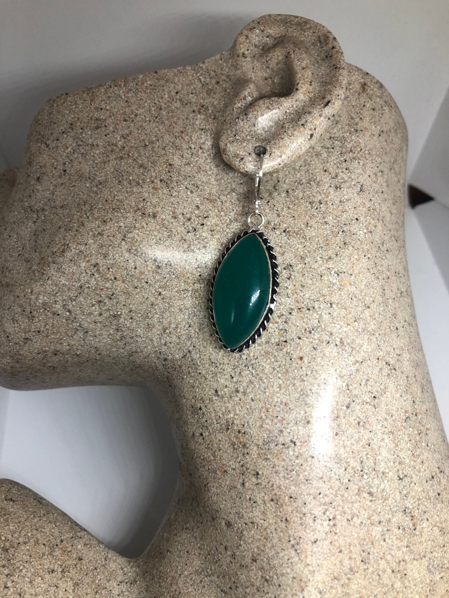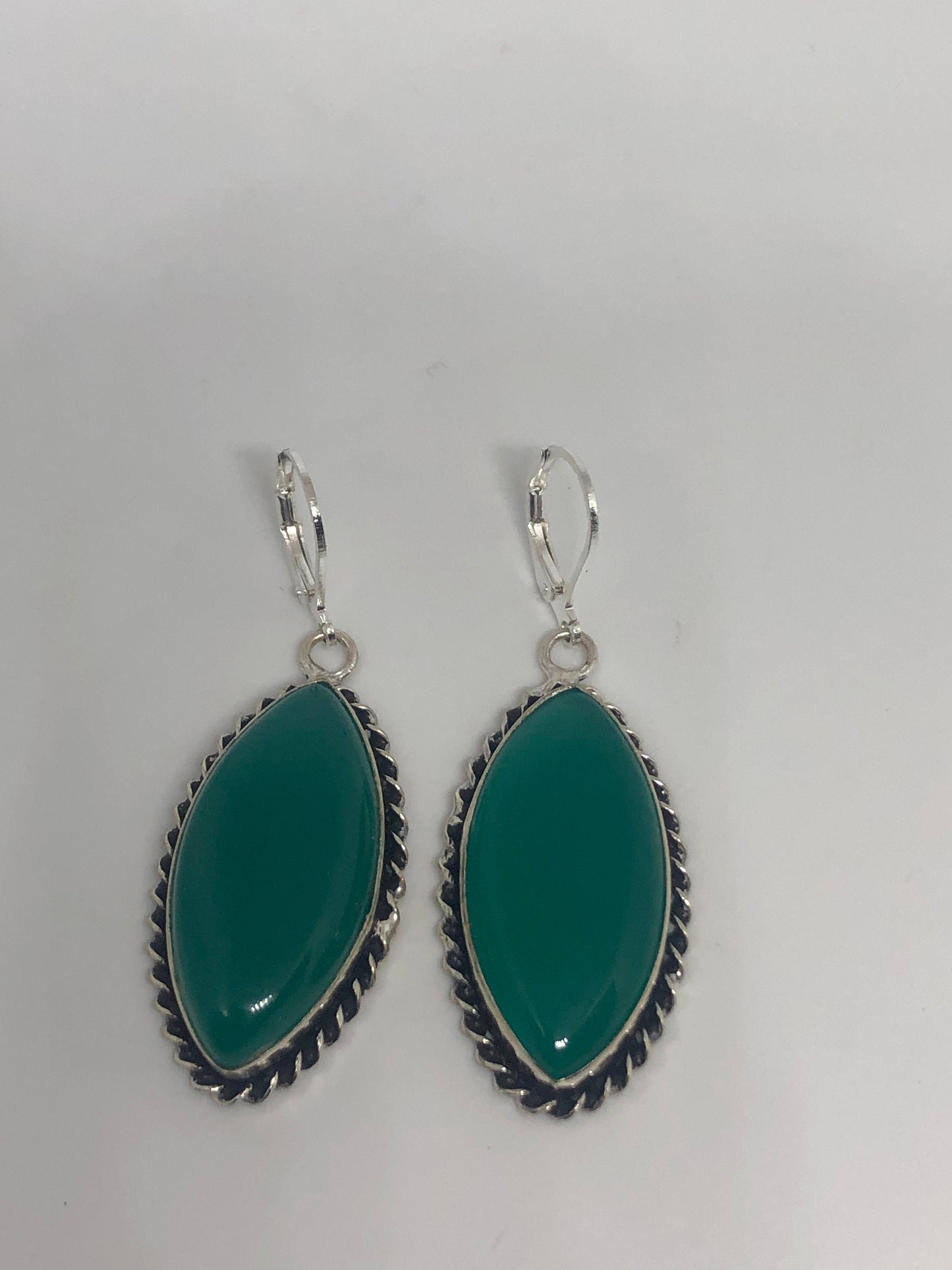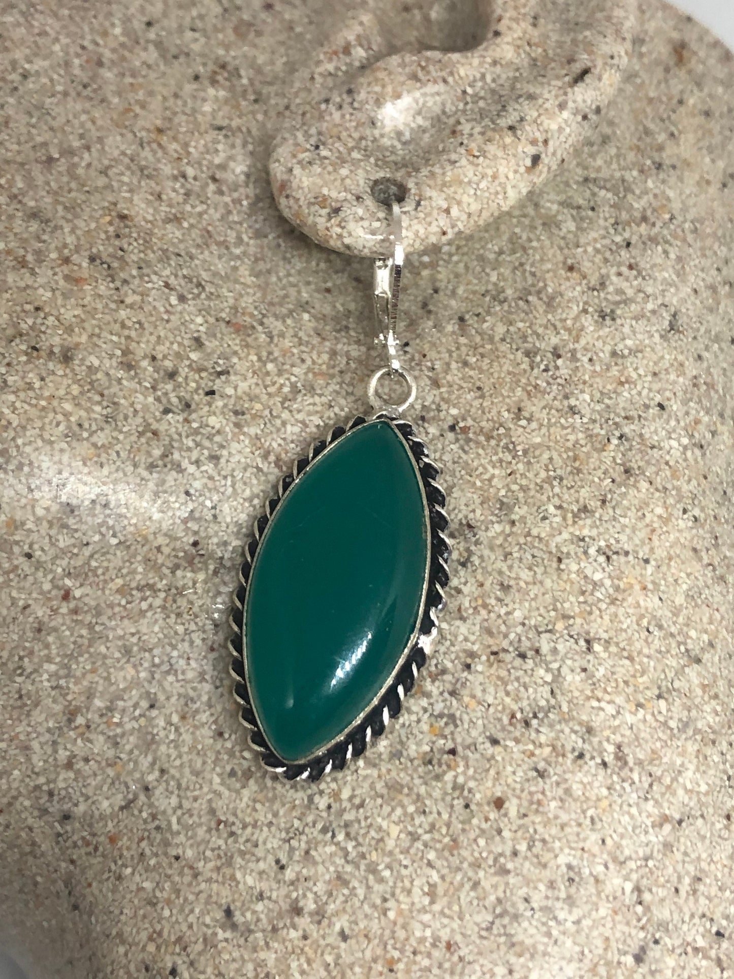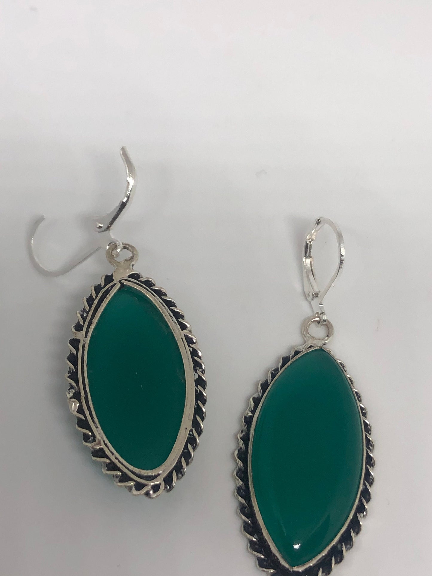 Antique vintage Green Chrysoprase Silver dangle earrings