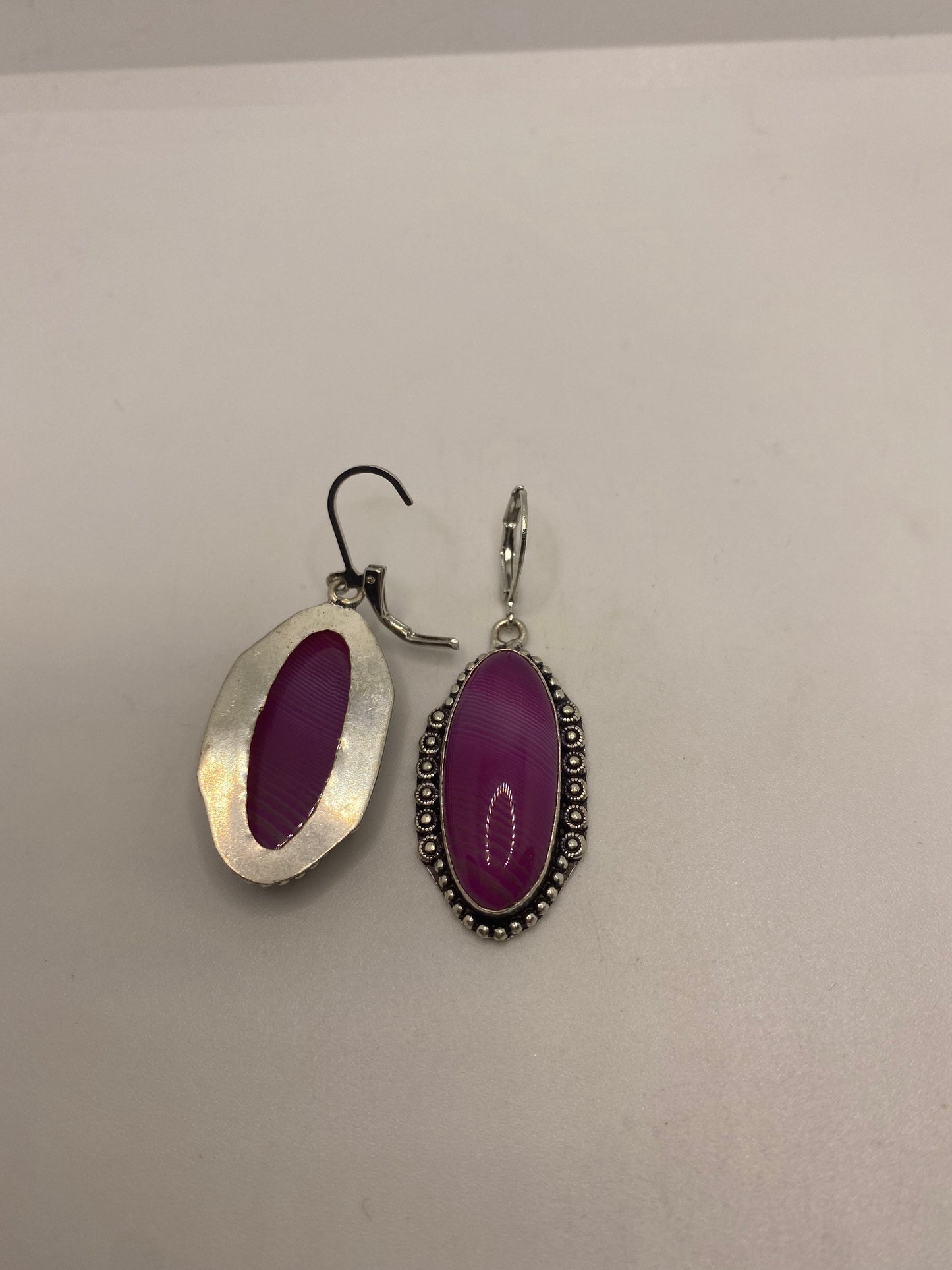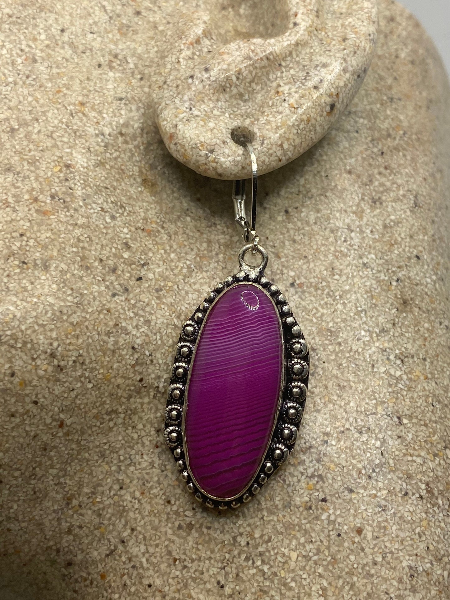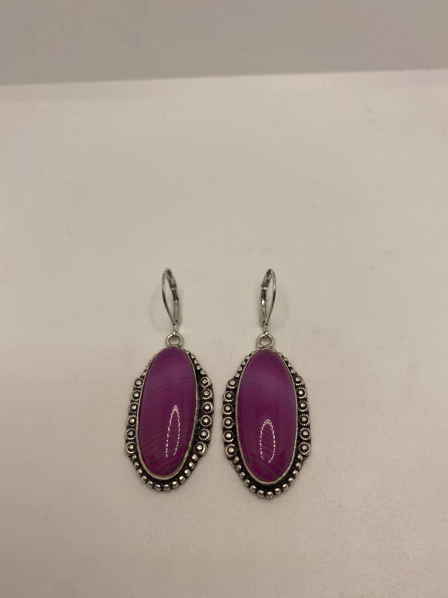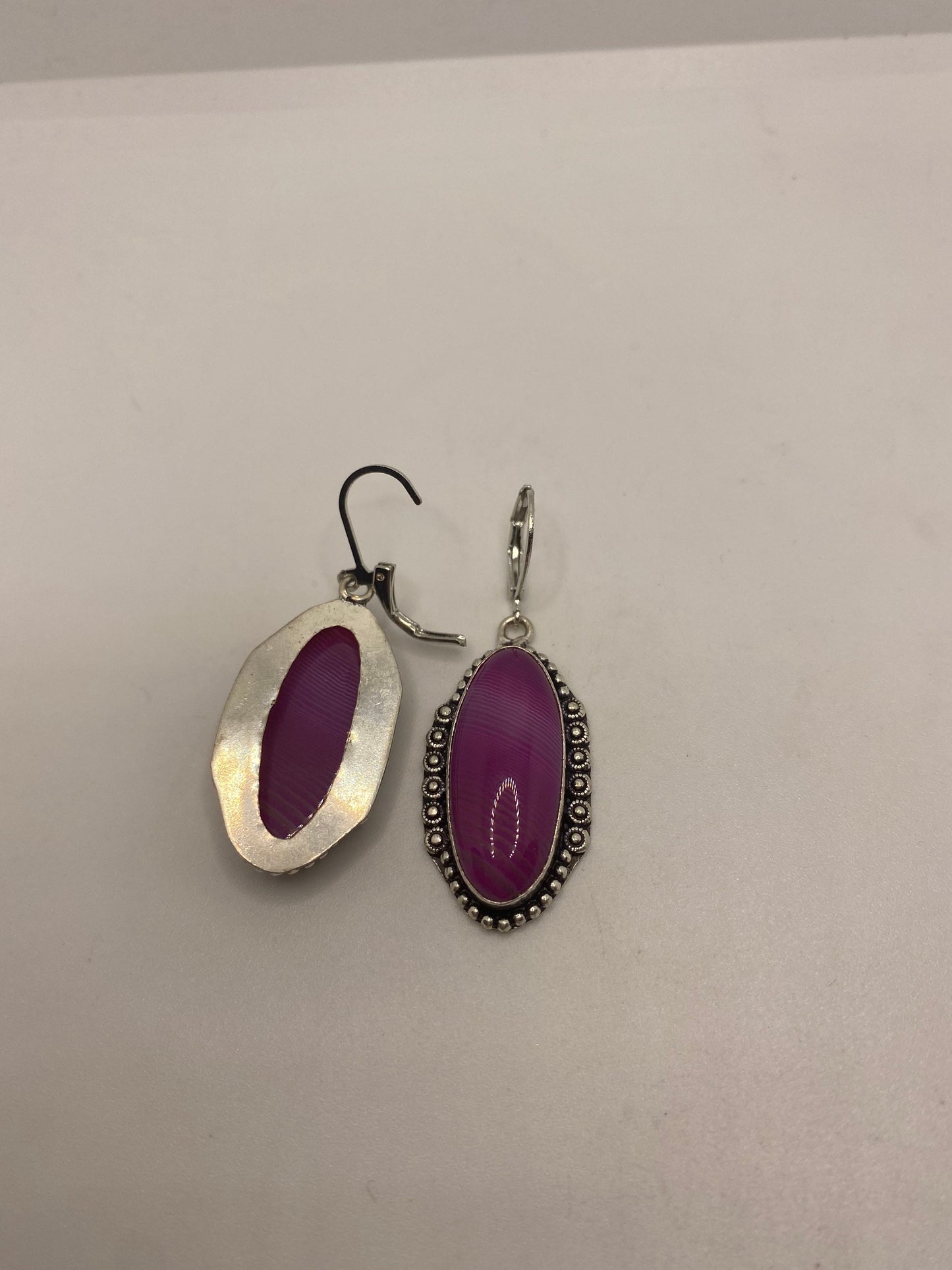 Antique Vintage Purple Banded agate Silver Dangle Earrings