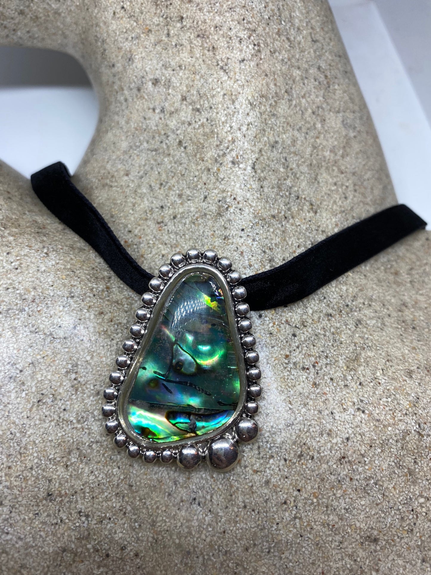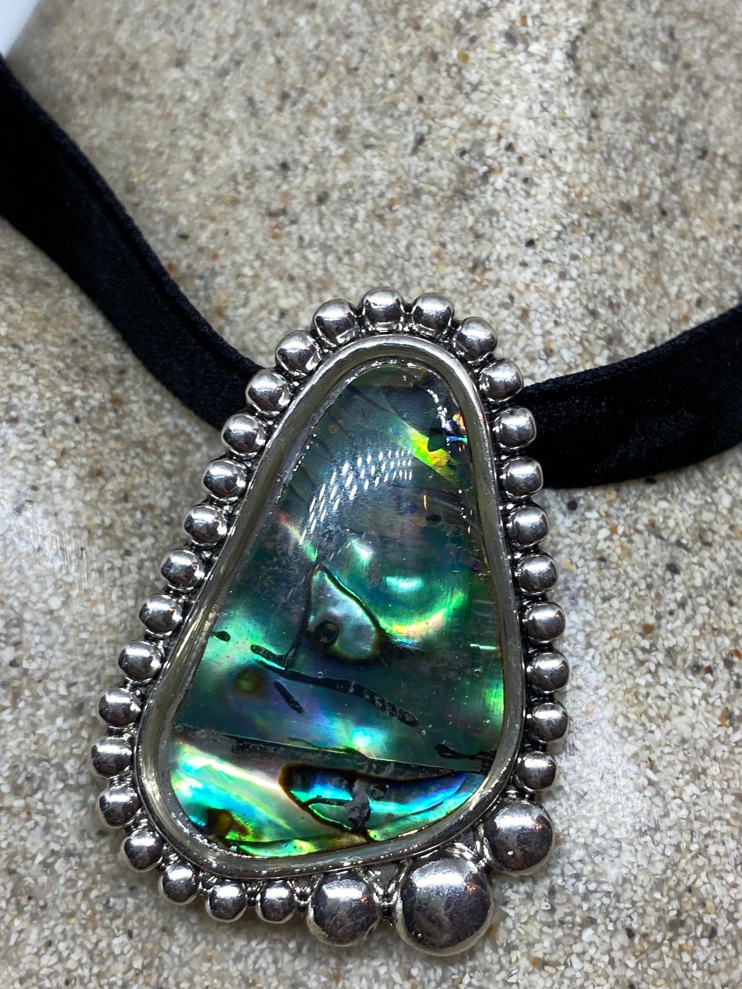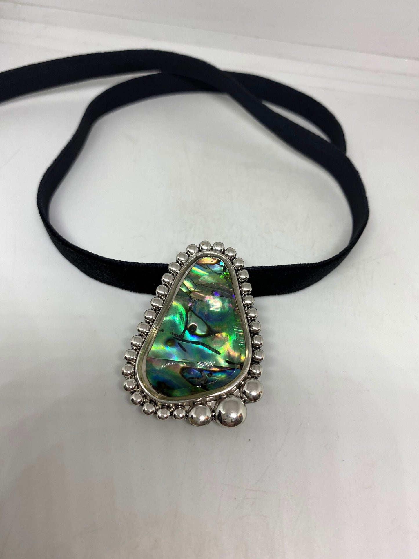 Blue Handmade Gothic Styled Silver Finished Genuine Abalone Butterfly Choker Necklace