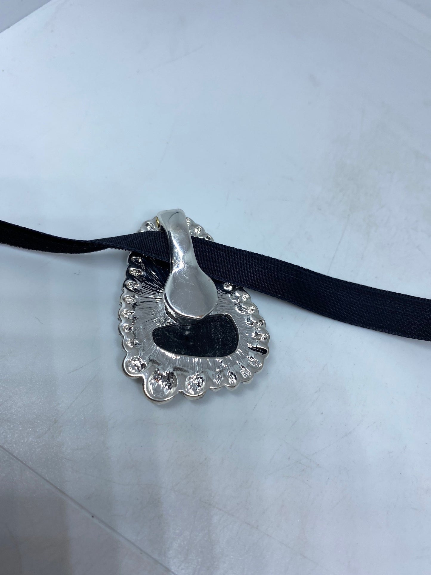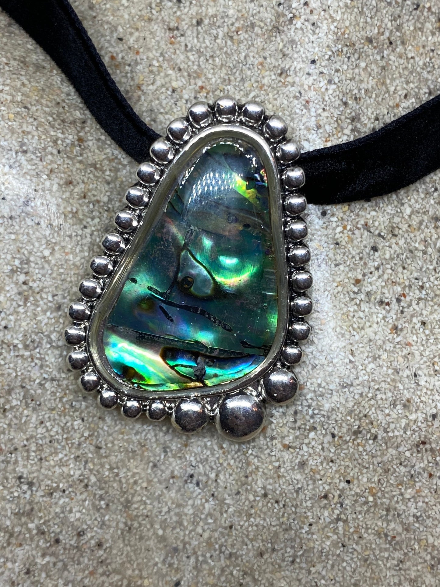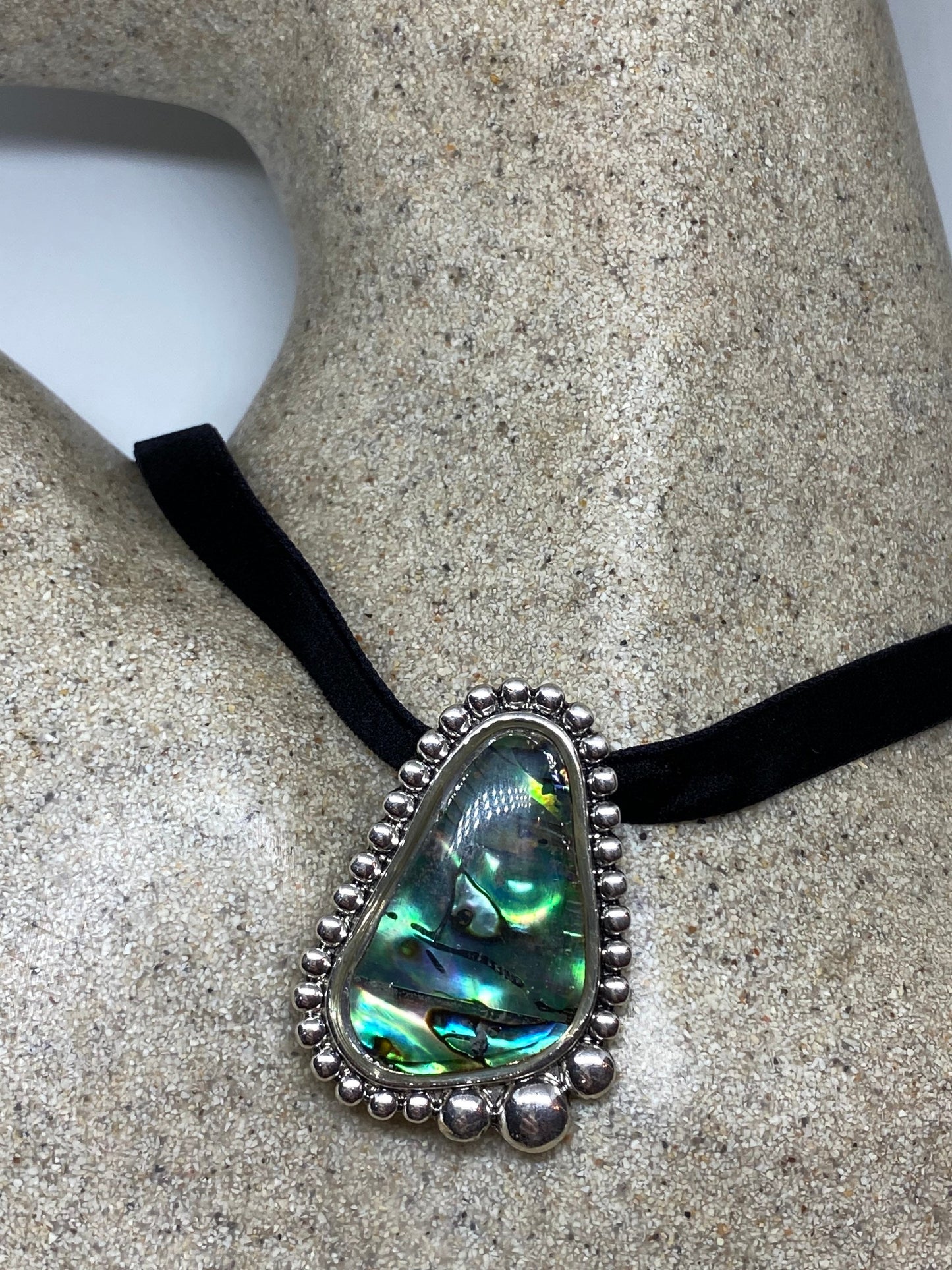 Blue Handmade Gothic Styled Silver Finished Genuine Abalone Butterfly Choker Necklace