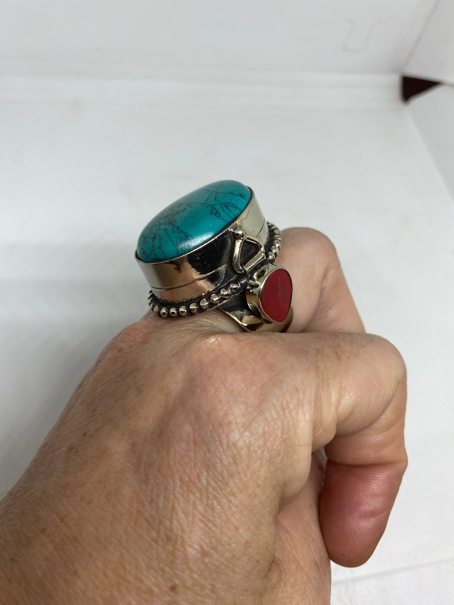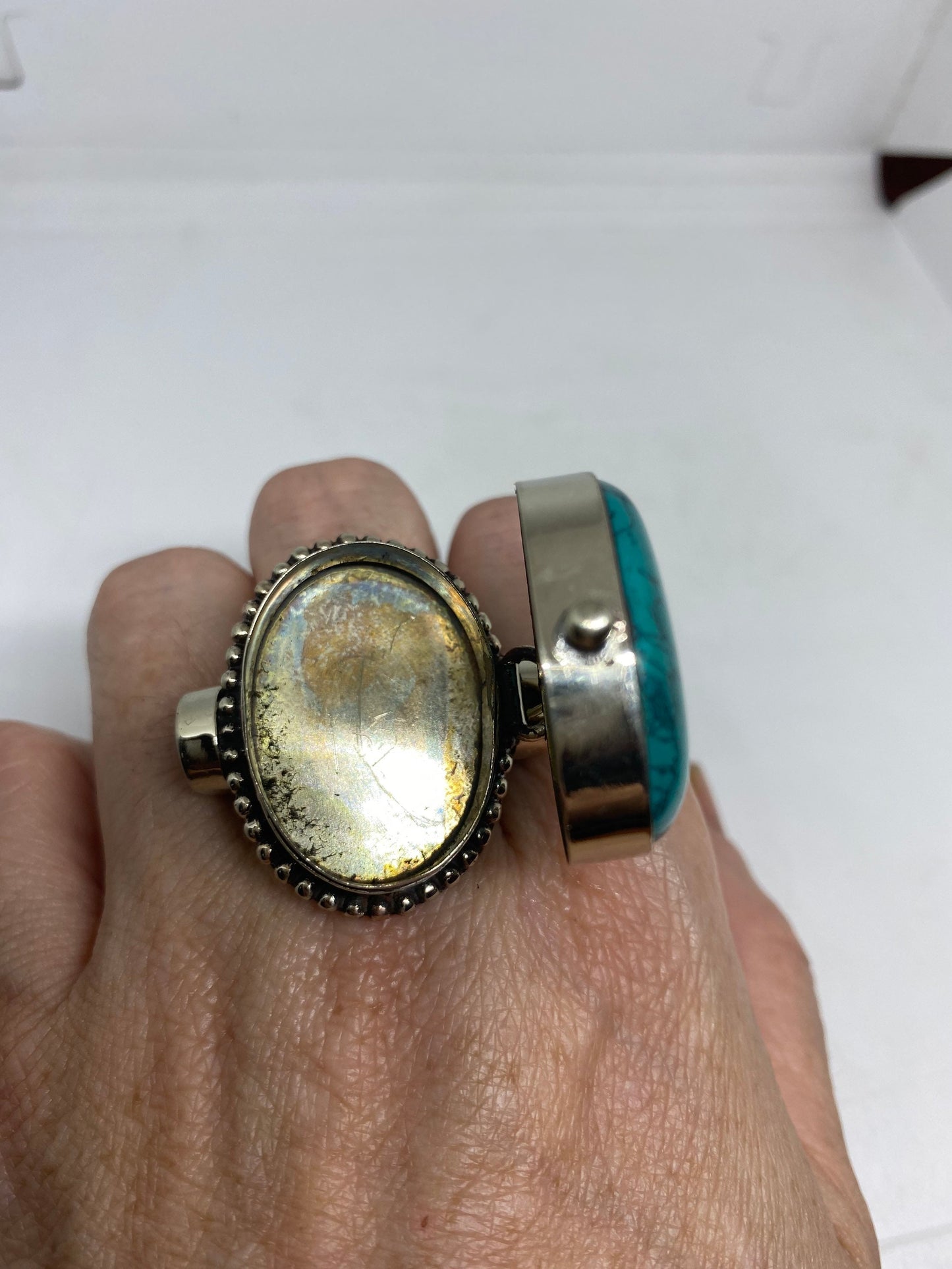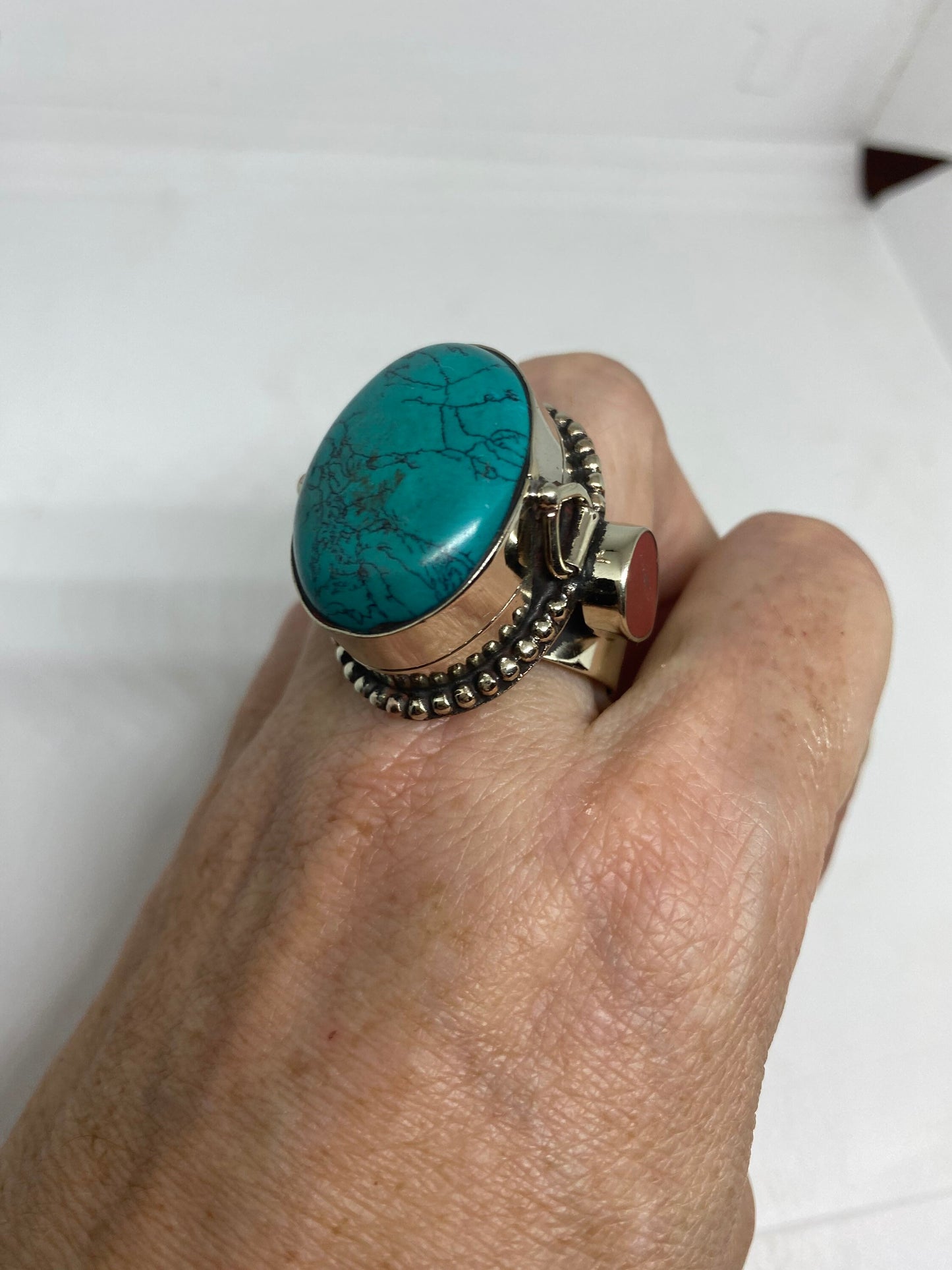 Large Stone Brass Knuckle poison pillbox Adjustable Ring