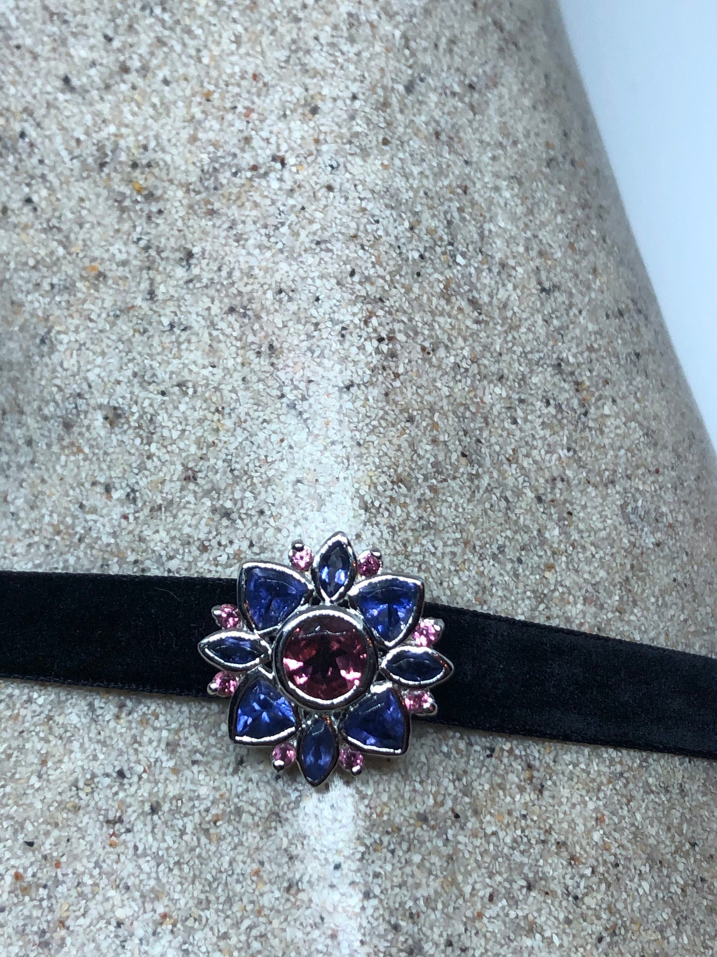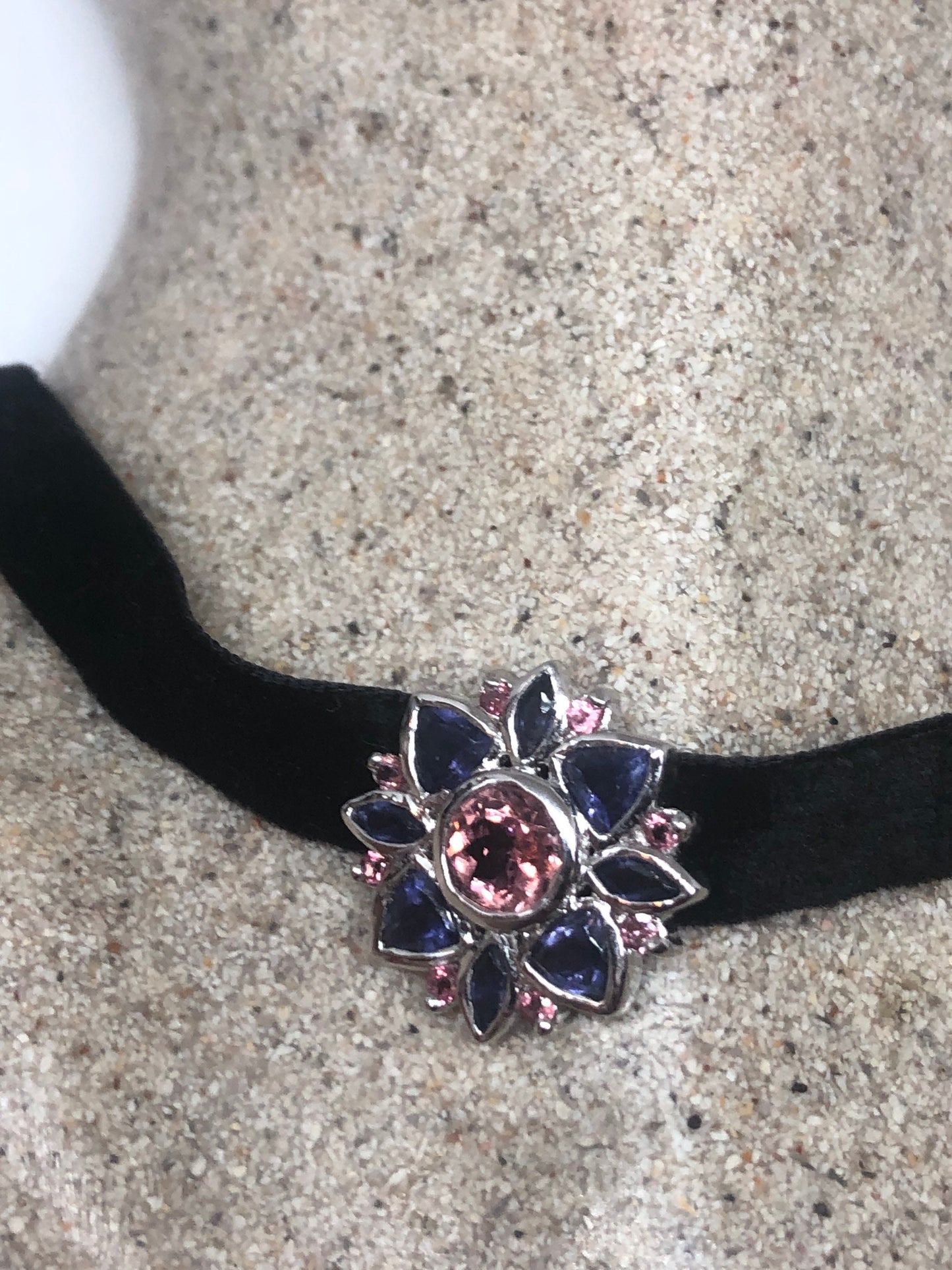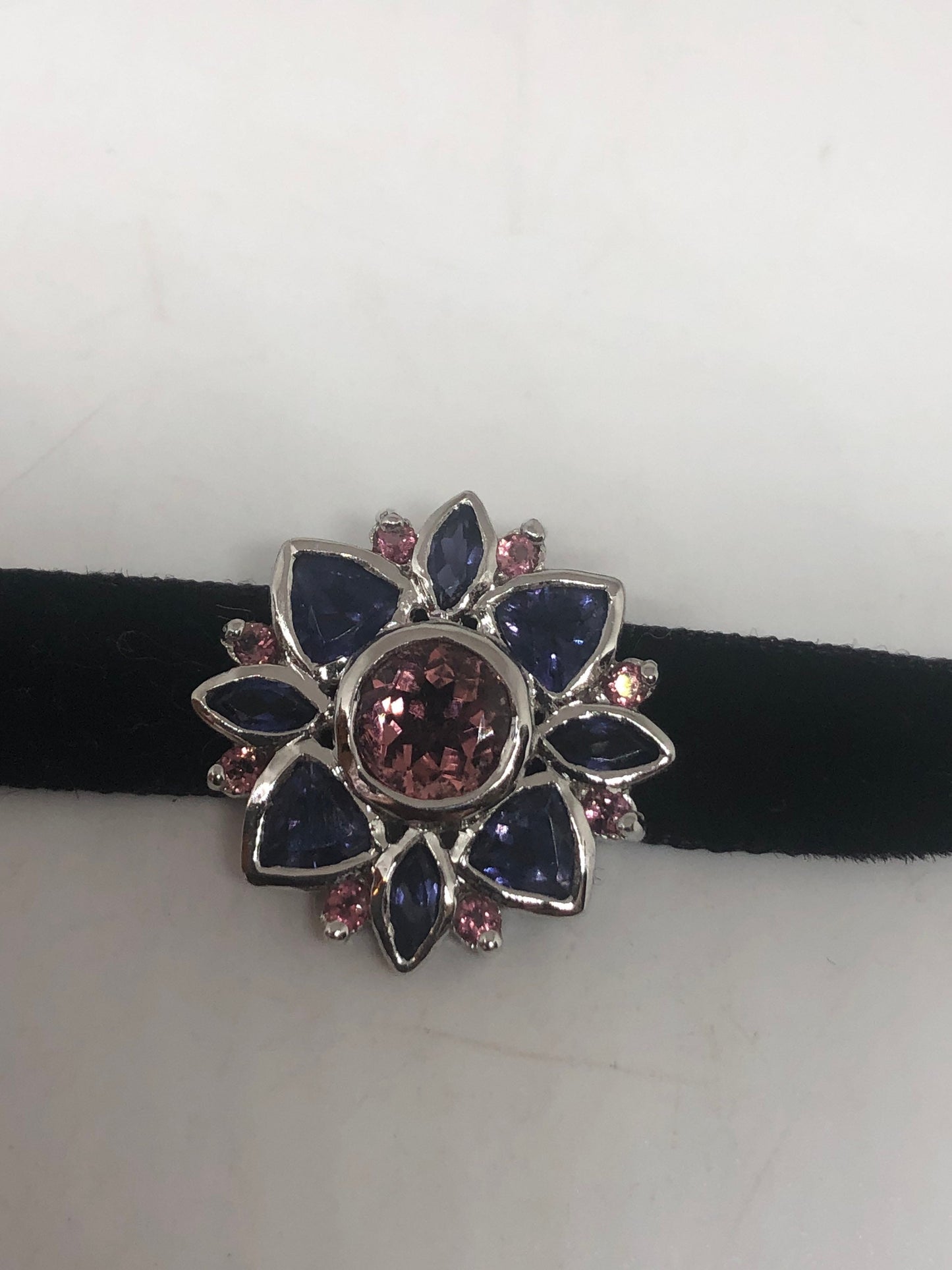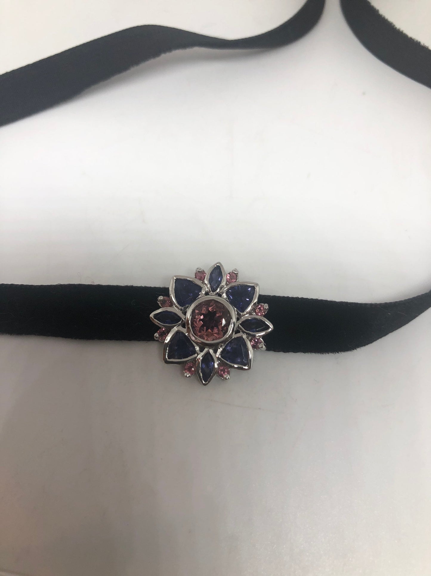 Vintage 925 Sterling Silver Genuine Red Tourmaline Iolite Antique Choker Pendant Necklace