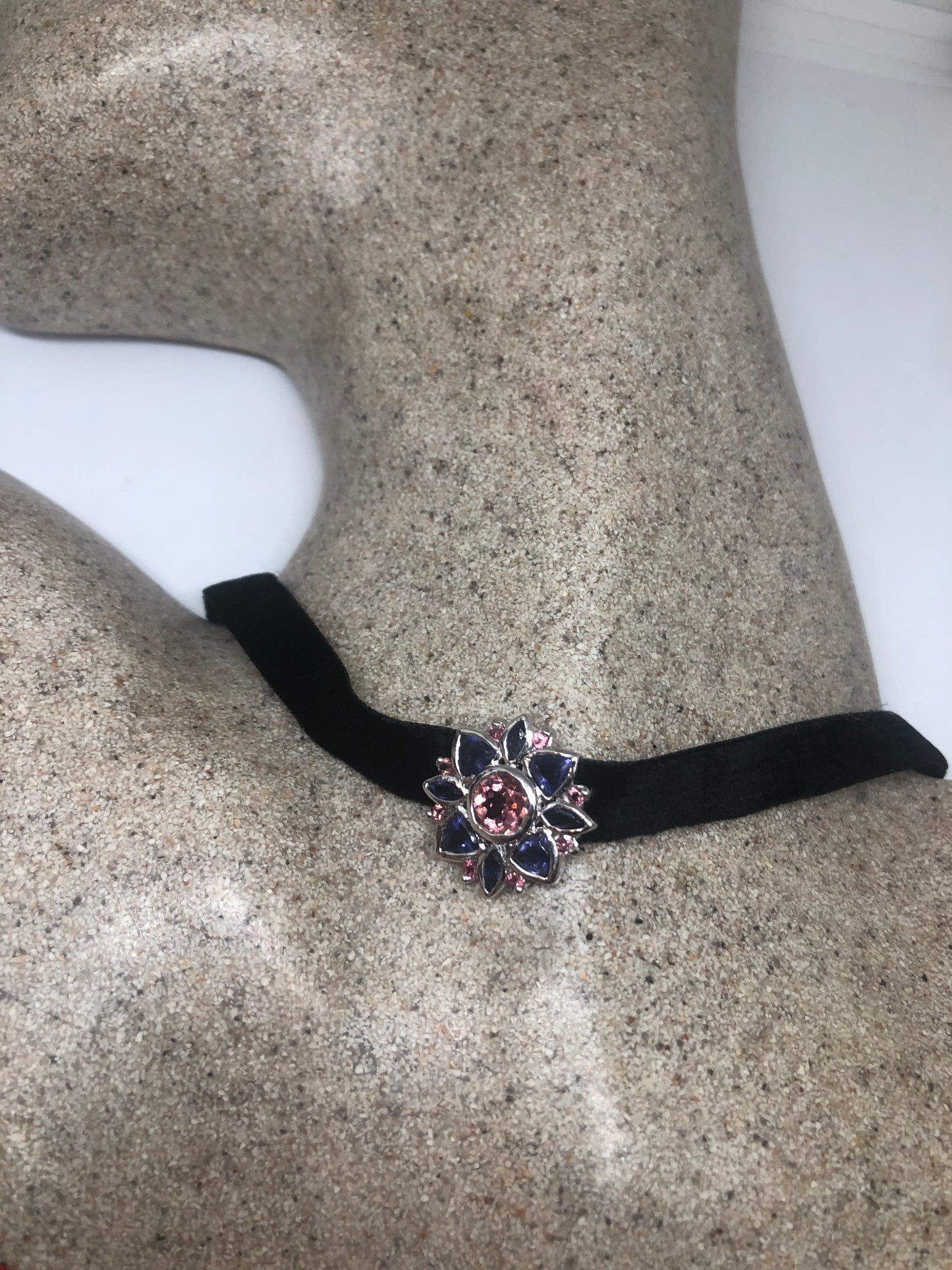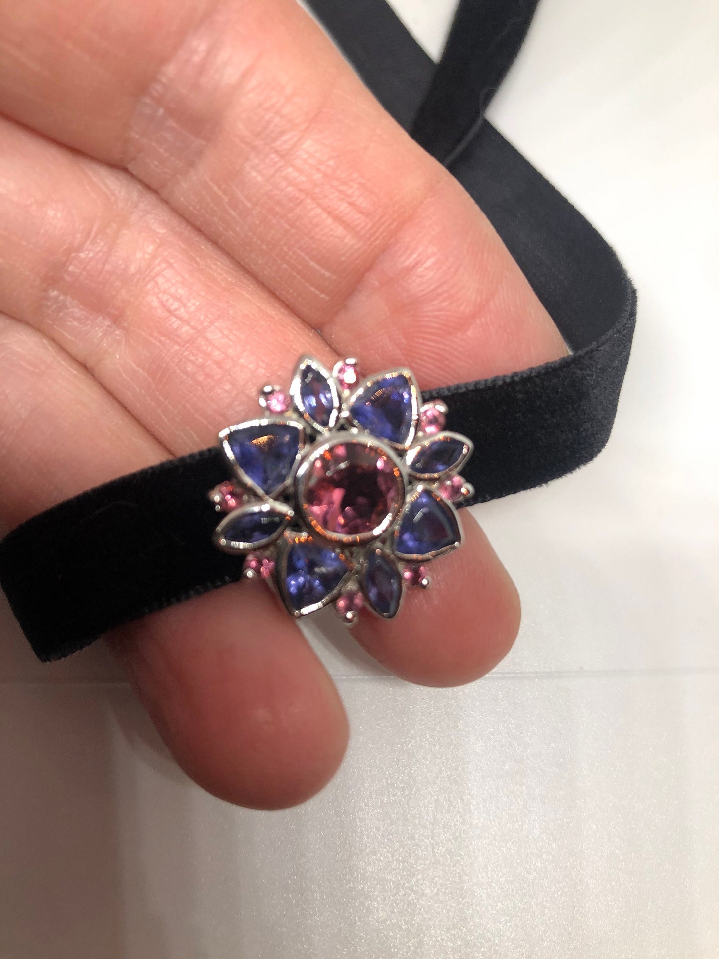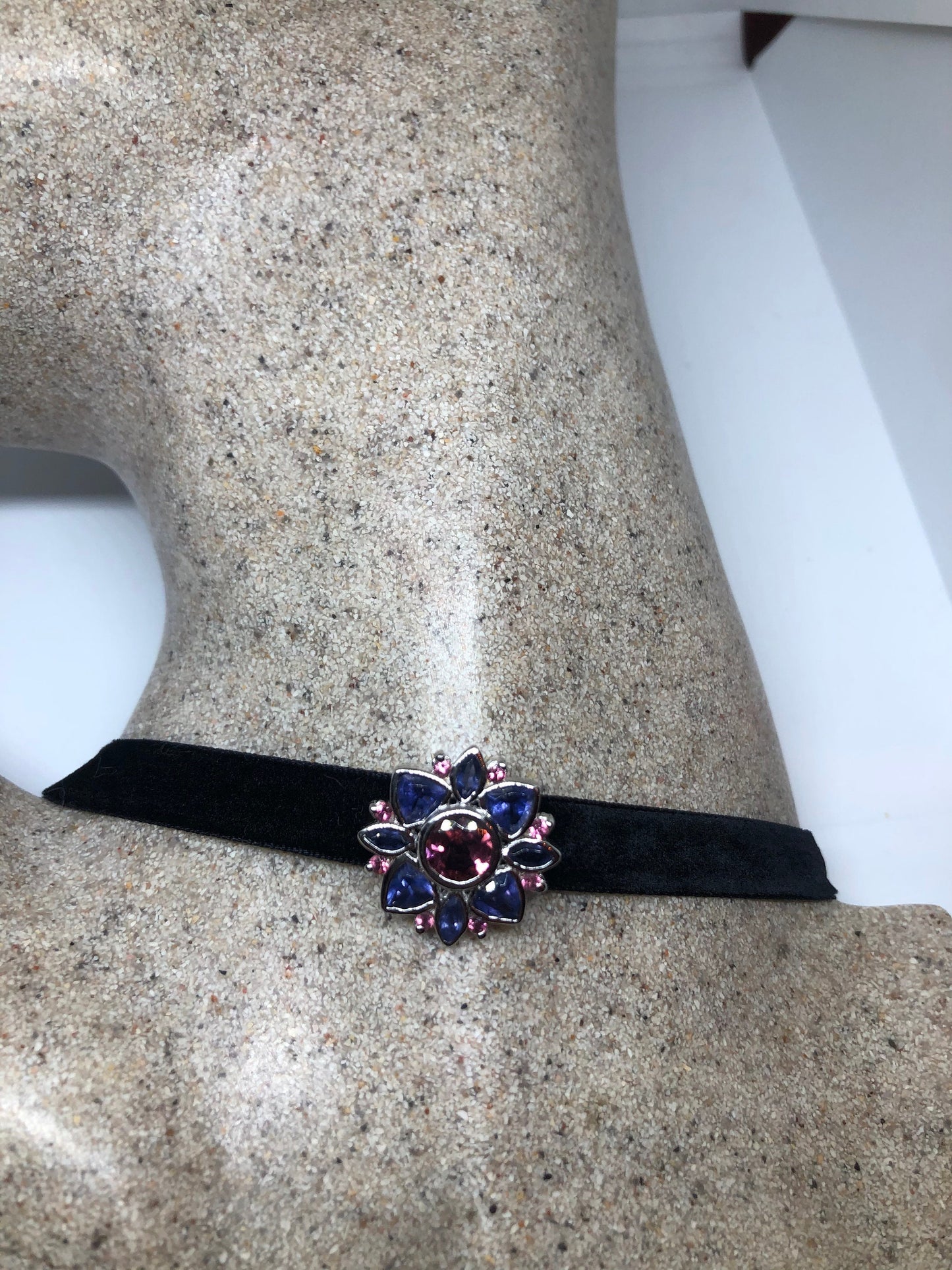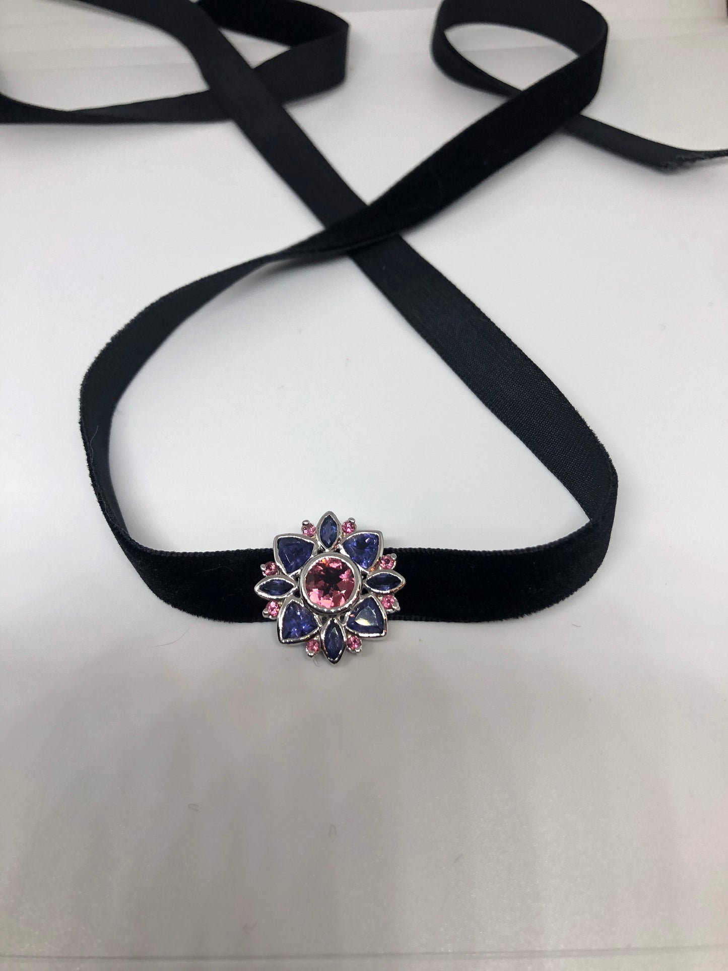 Vintage 925 Sterling Silver Genuine Red Tourmaline Iolite Antique Choker Pendant Necklace