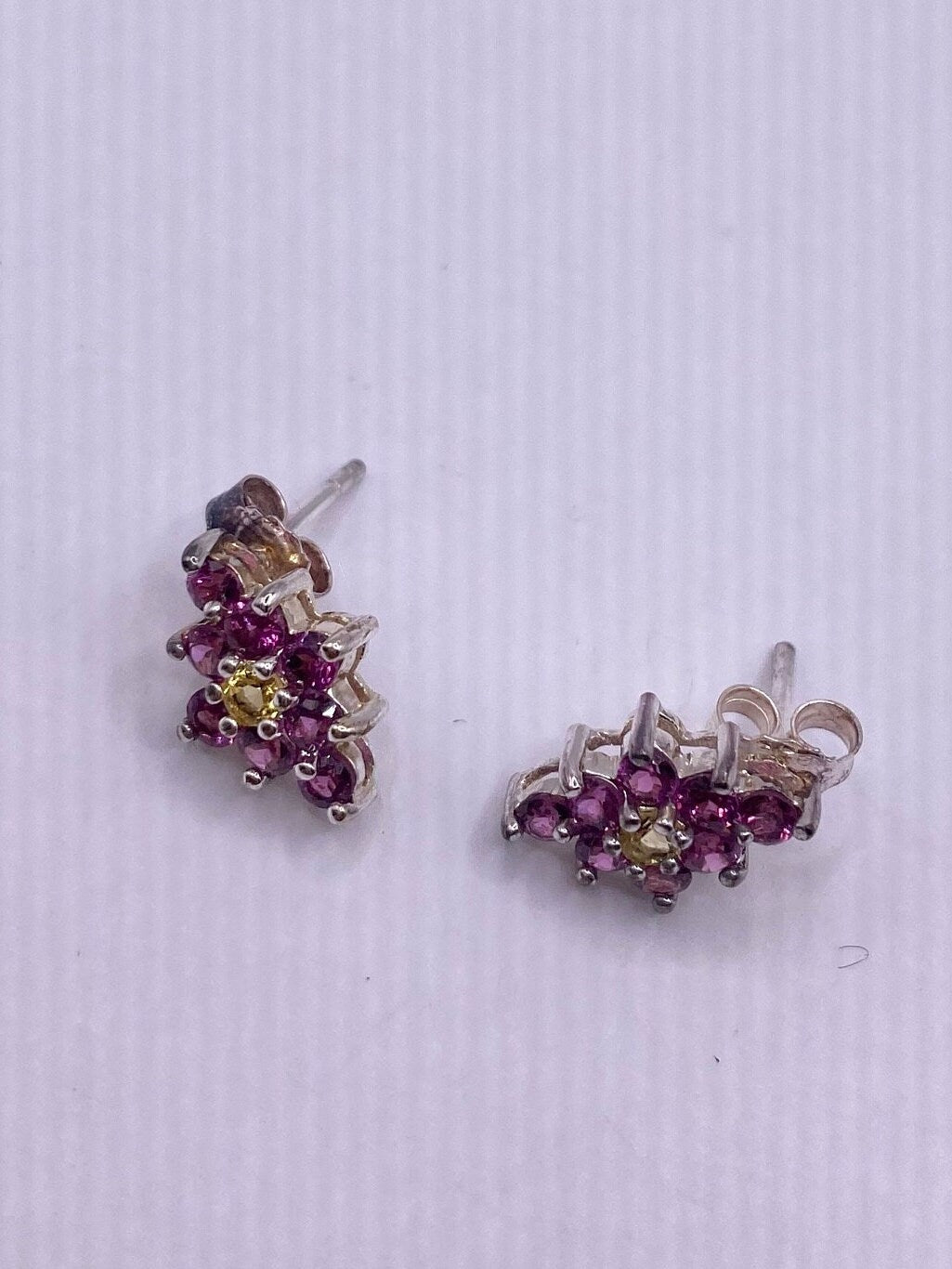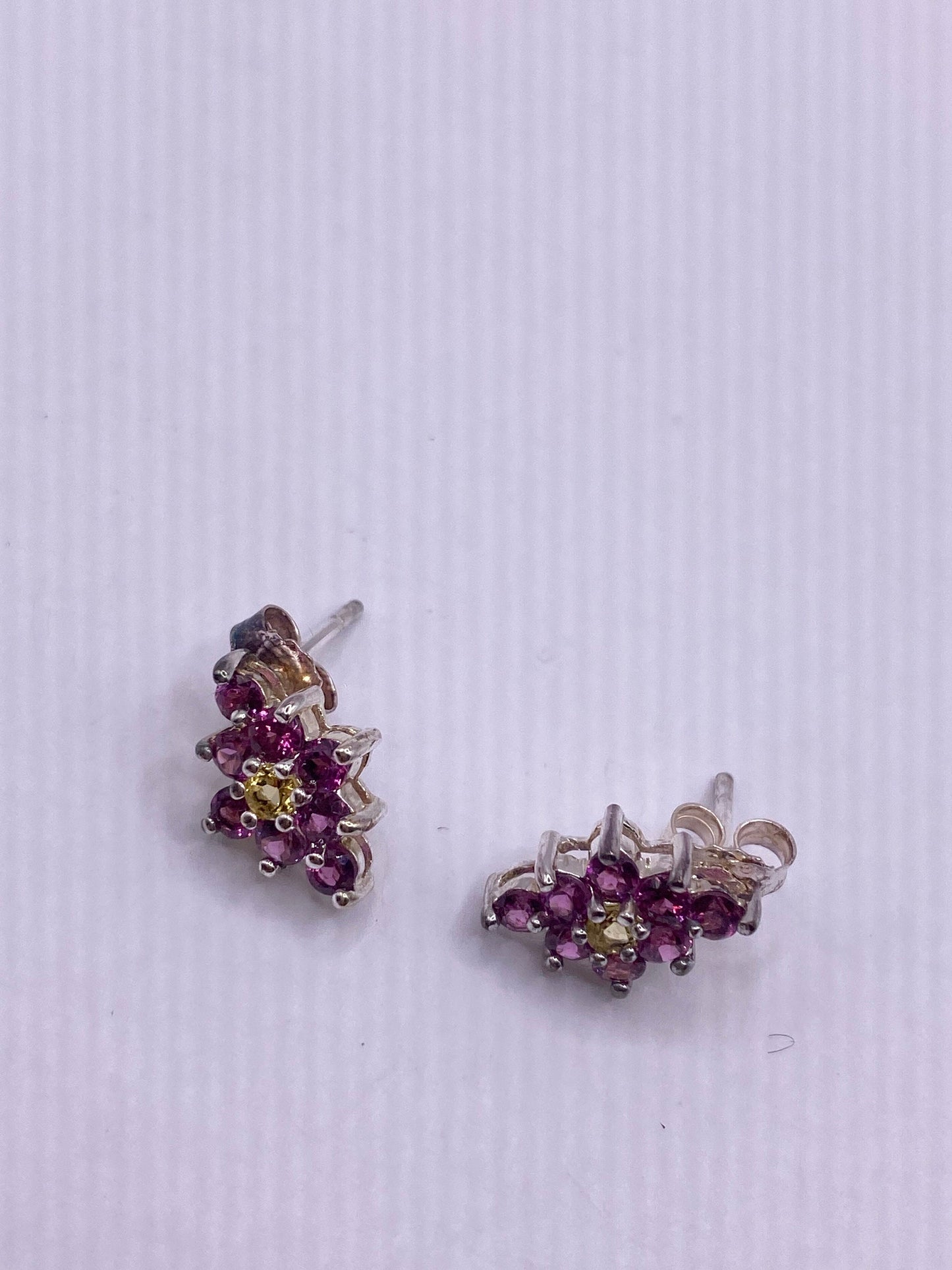 Vintage 925 Sterling Silver Red Tourmaline Earrings