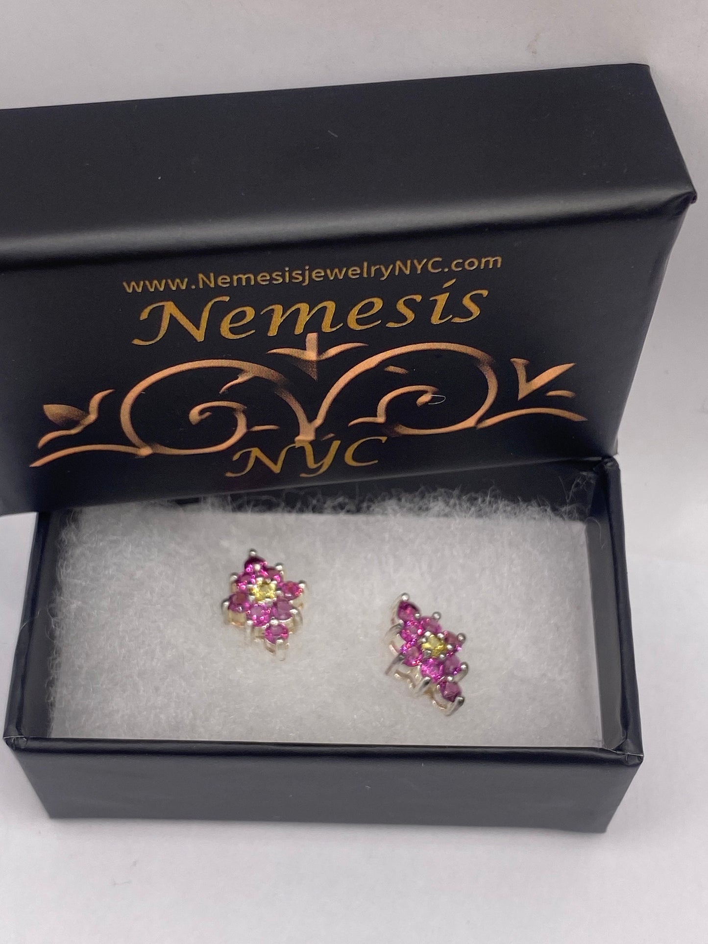 vintage 925 sterling silver earrings set with pink Tourmaline