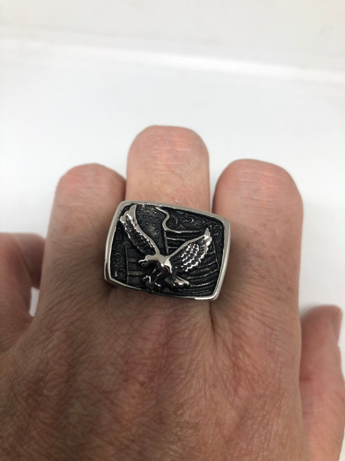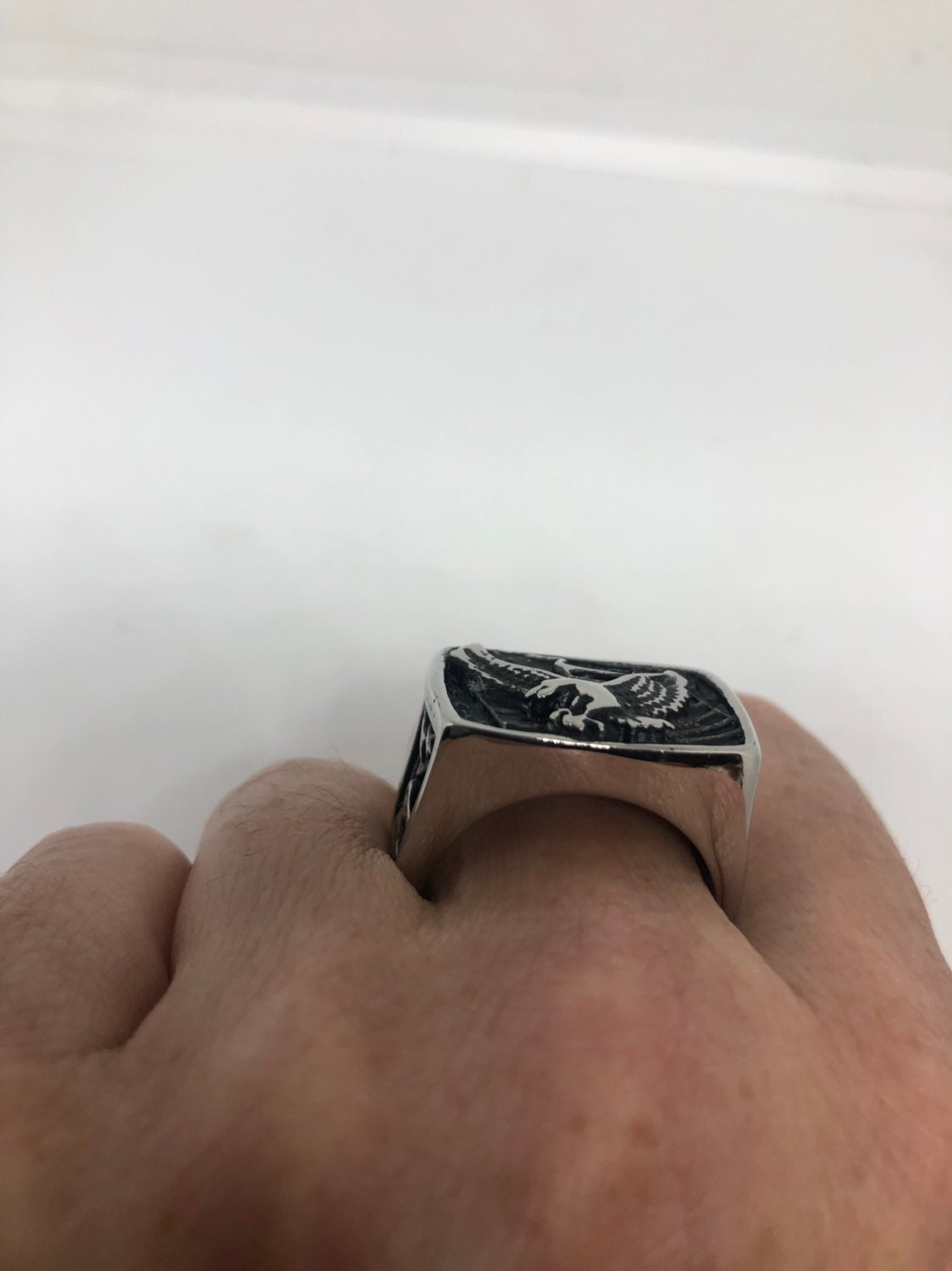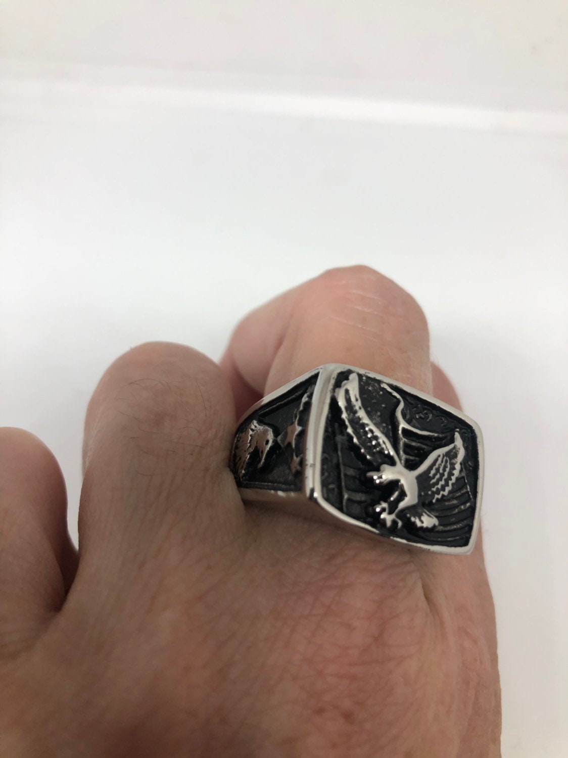 Vintage American Eagle Silver Stainless Steel Mens Ring