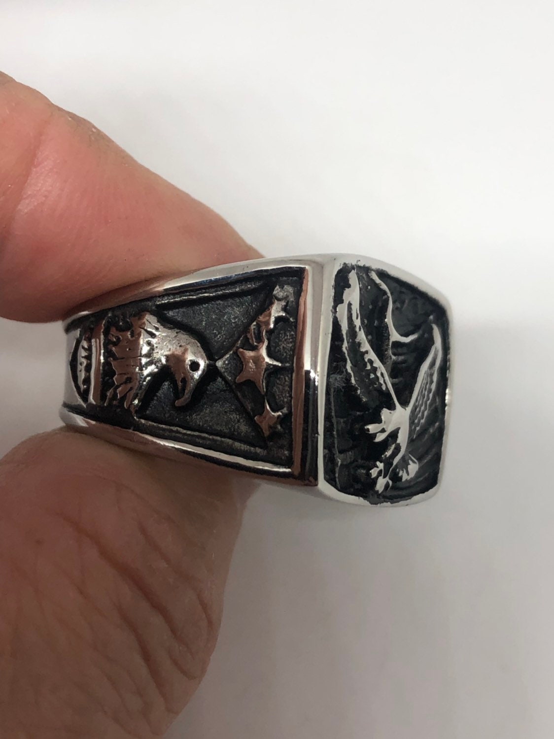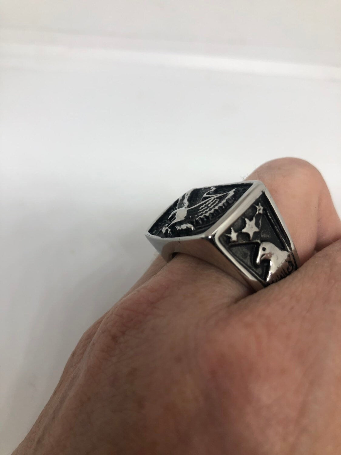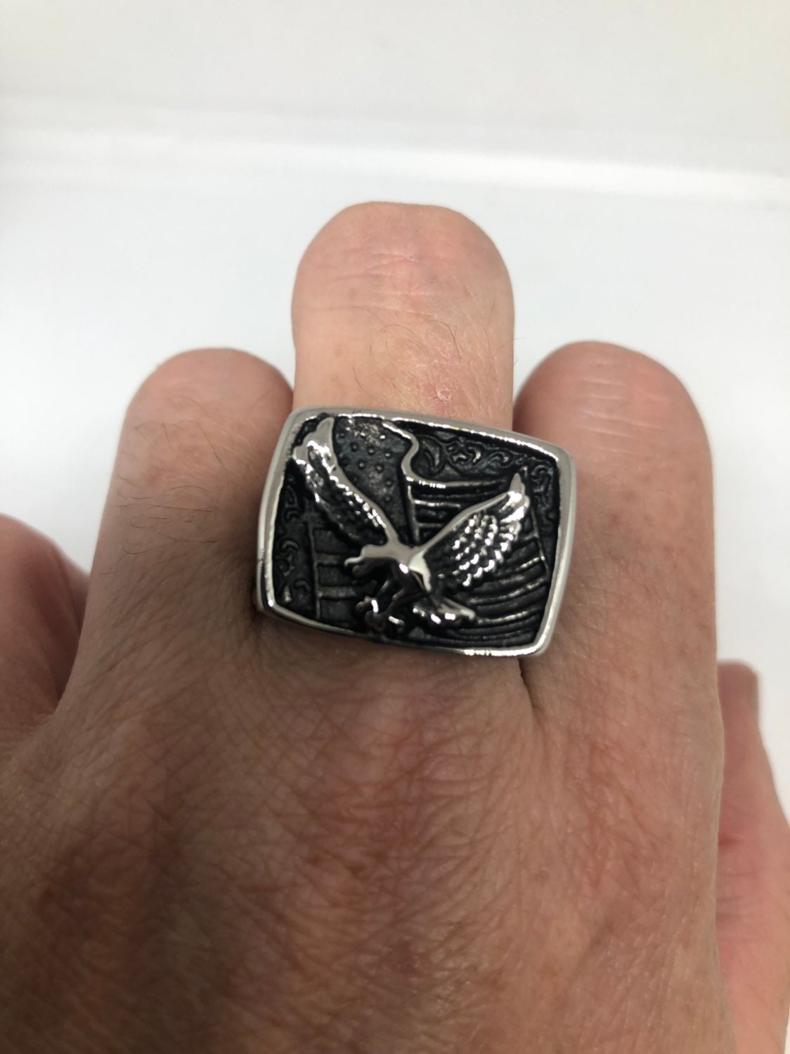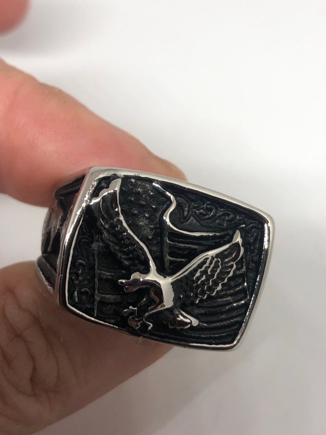 Vintage American Eagle Silver Stainless Steel Mens Ring