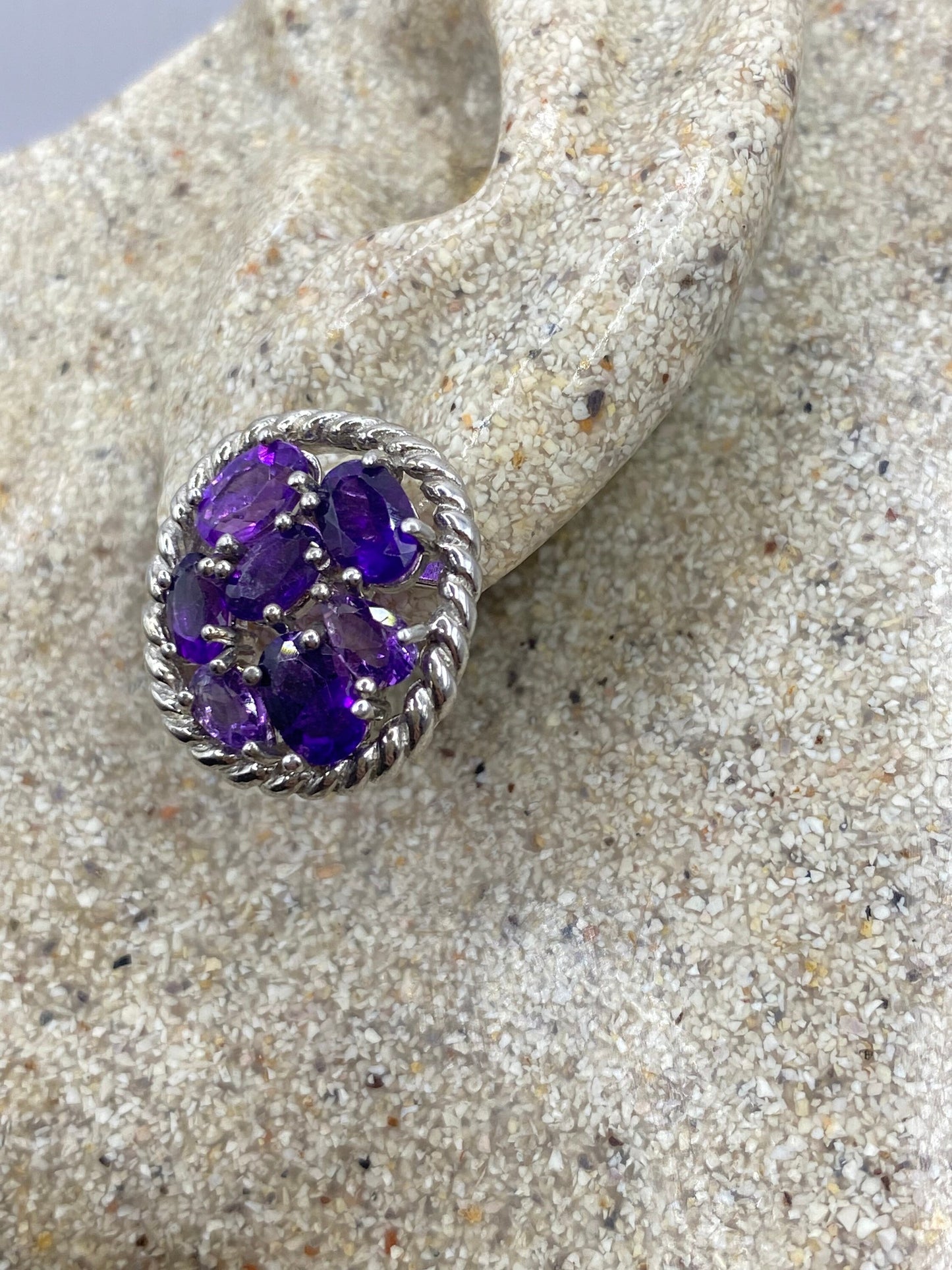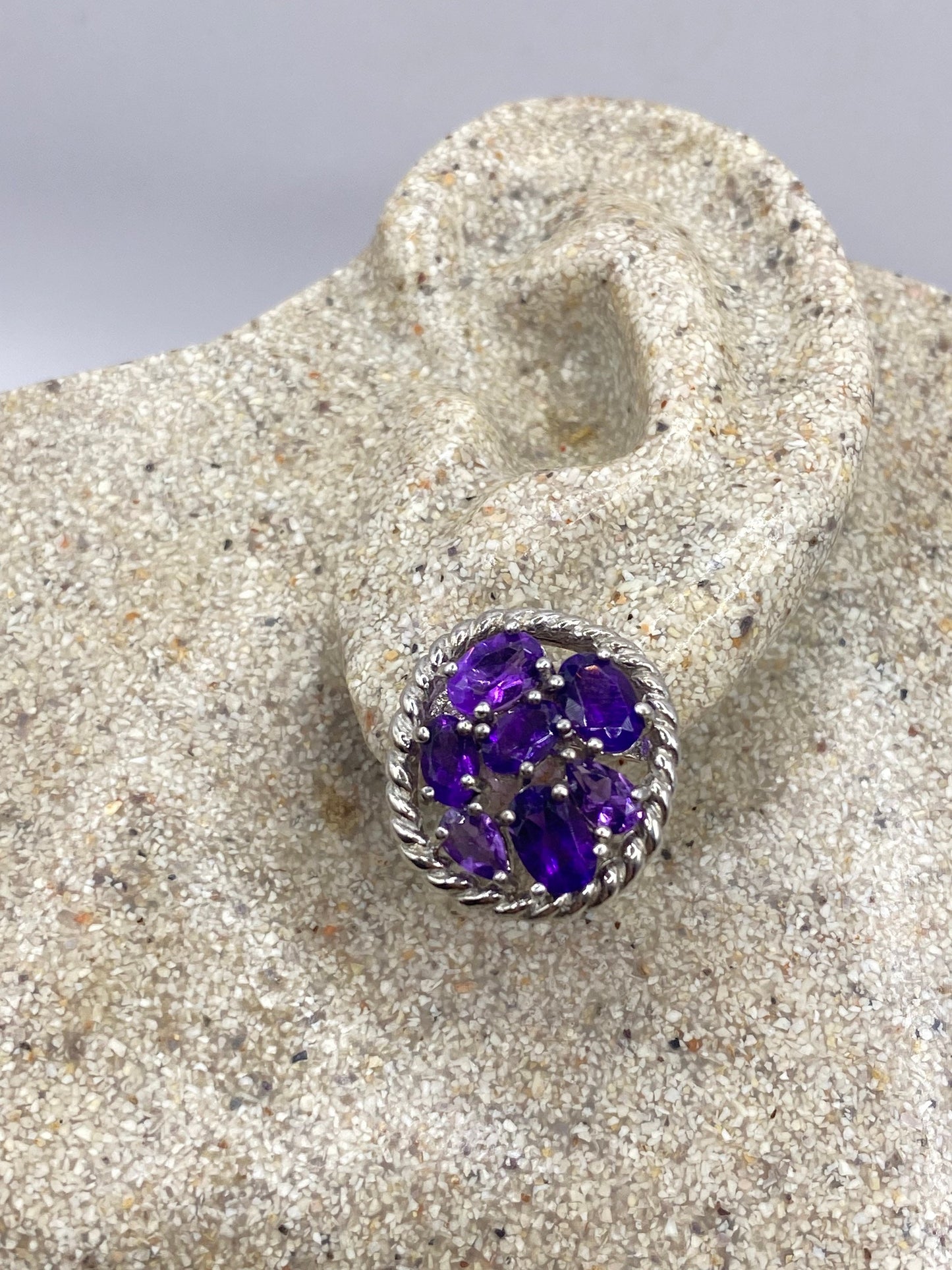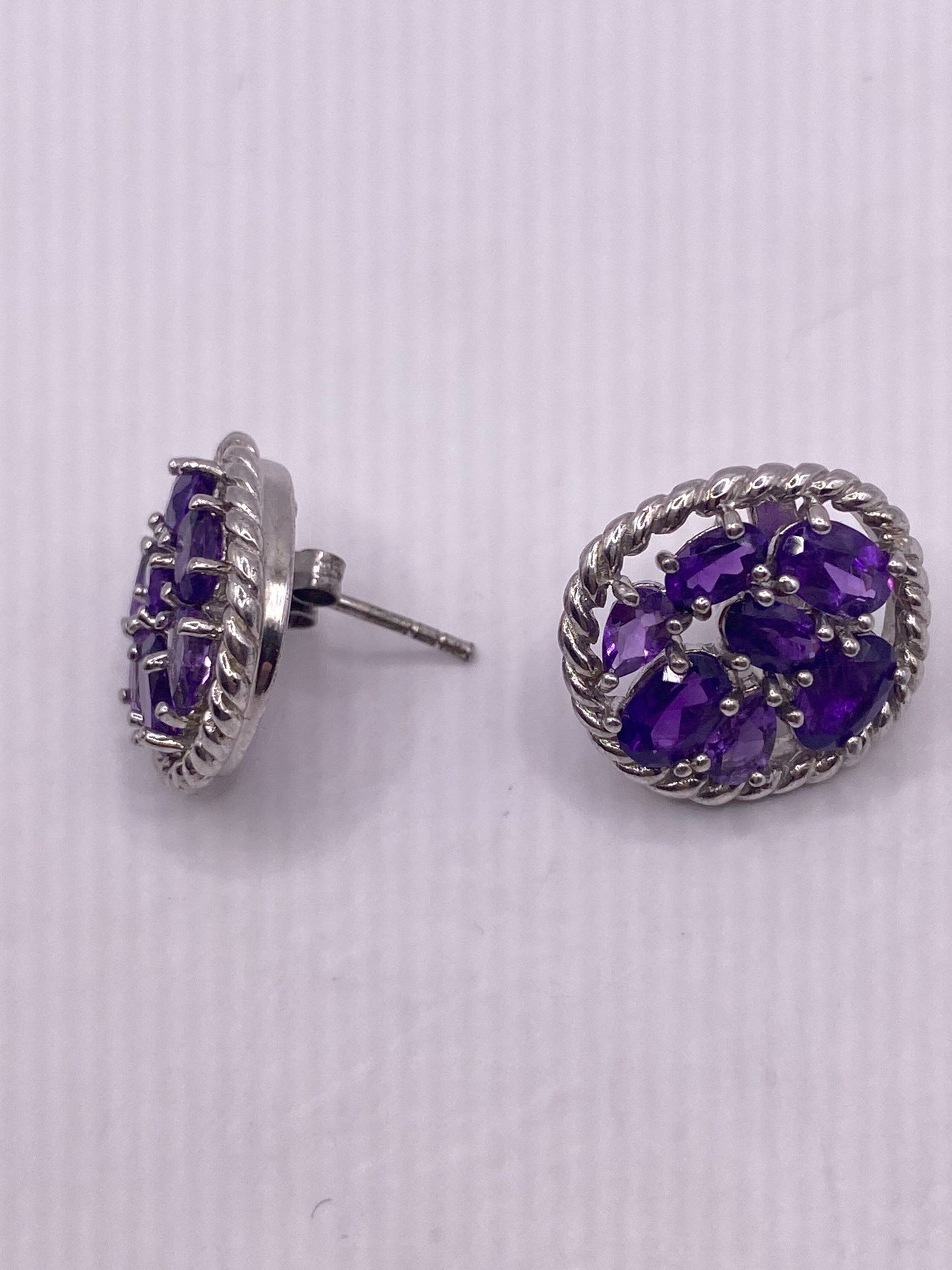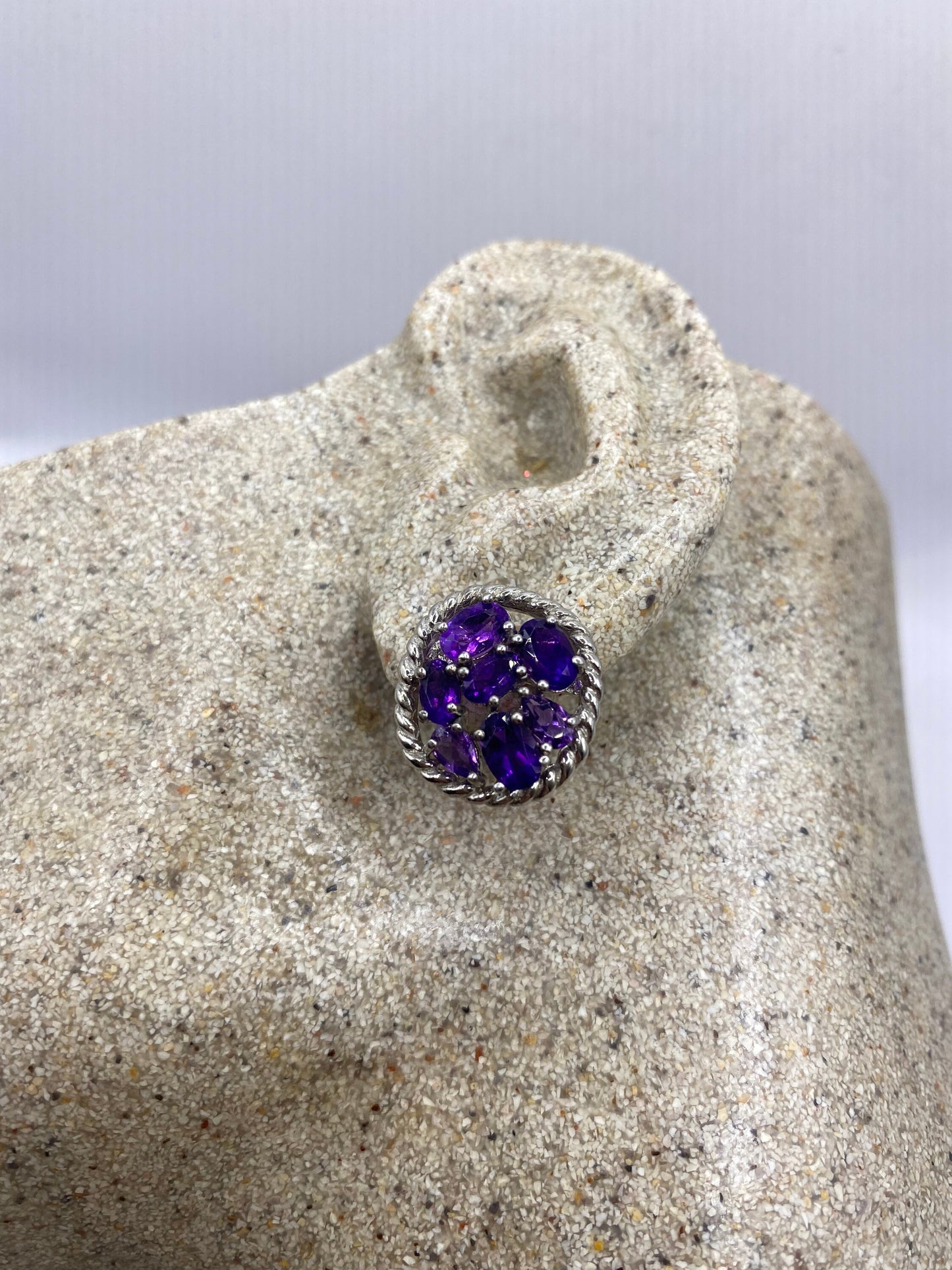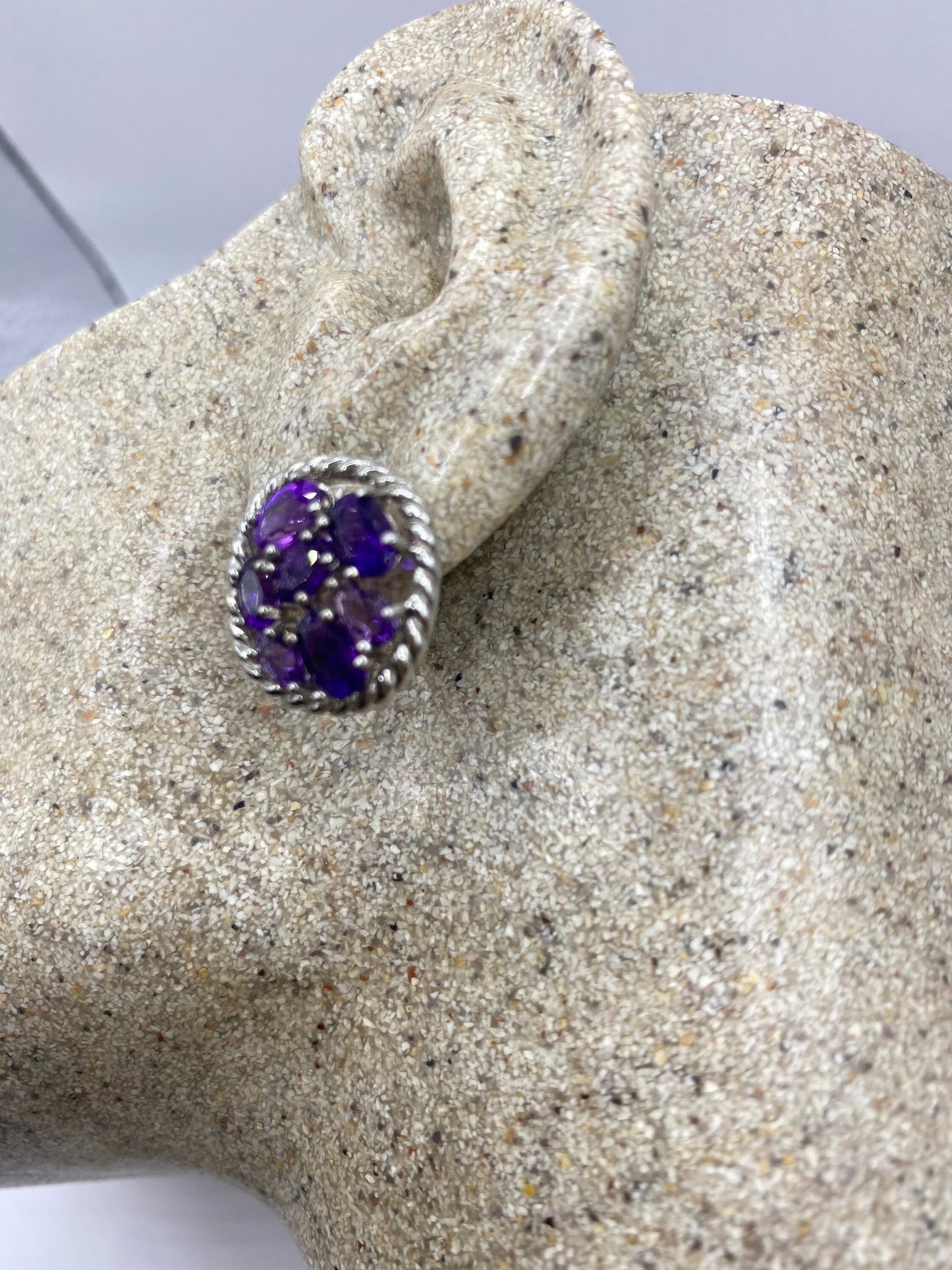 Vintage Amethyst Earrings 925 Sterling Silver Purple Stud Dangle