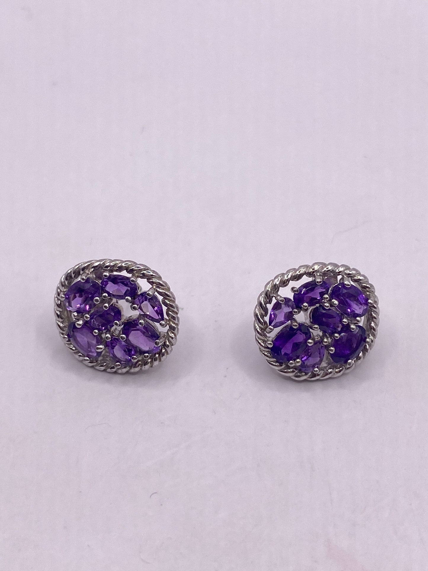 Vintage Amethyst Earrings 925 Sterling Silver Purple Stud Button