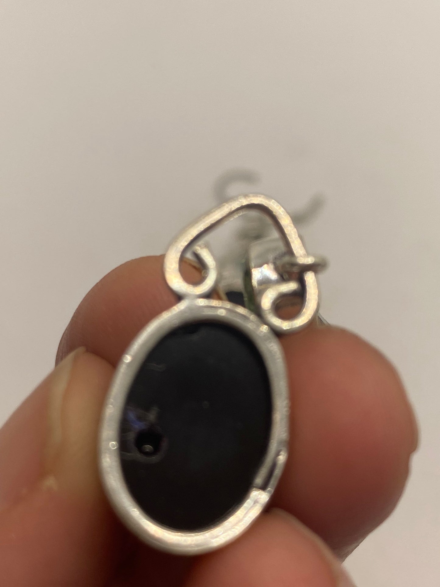 Delicate and detailed vintage Sterling Silver Black onyx earrings