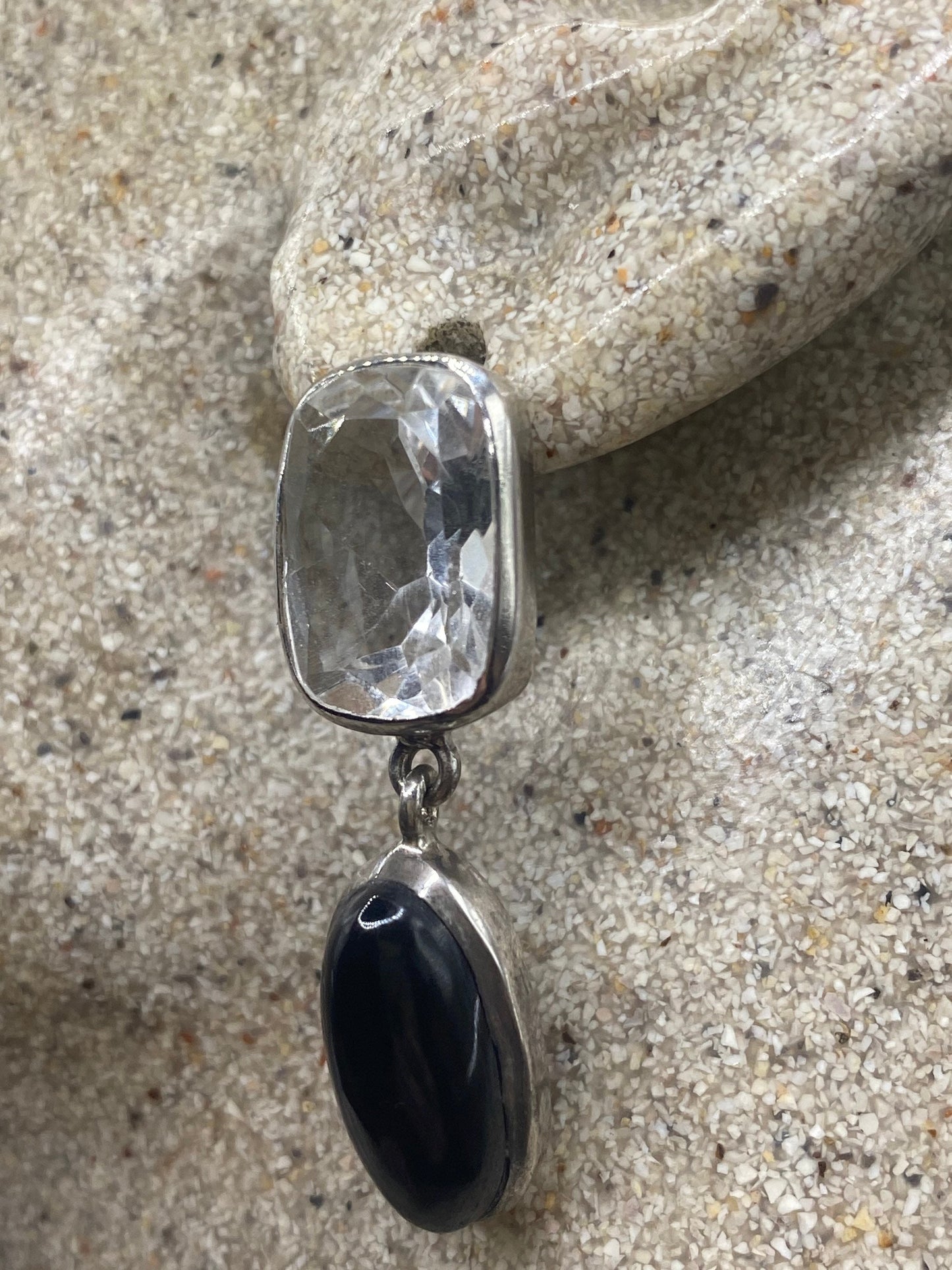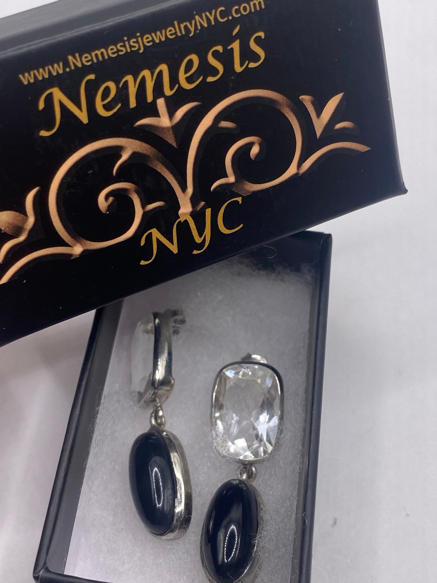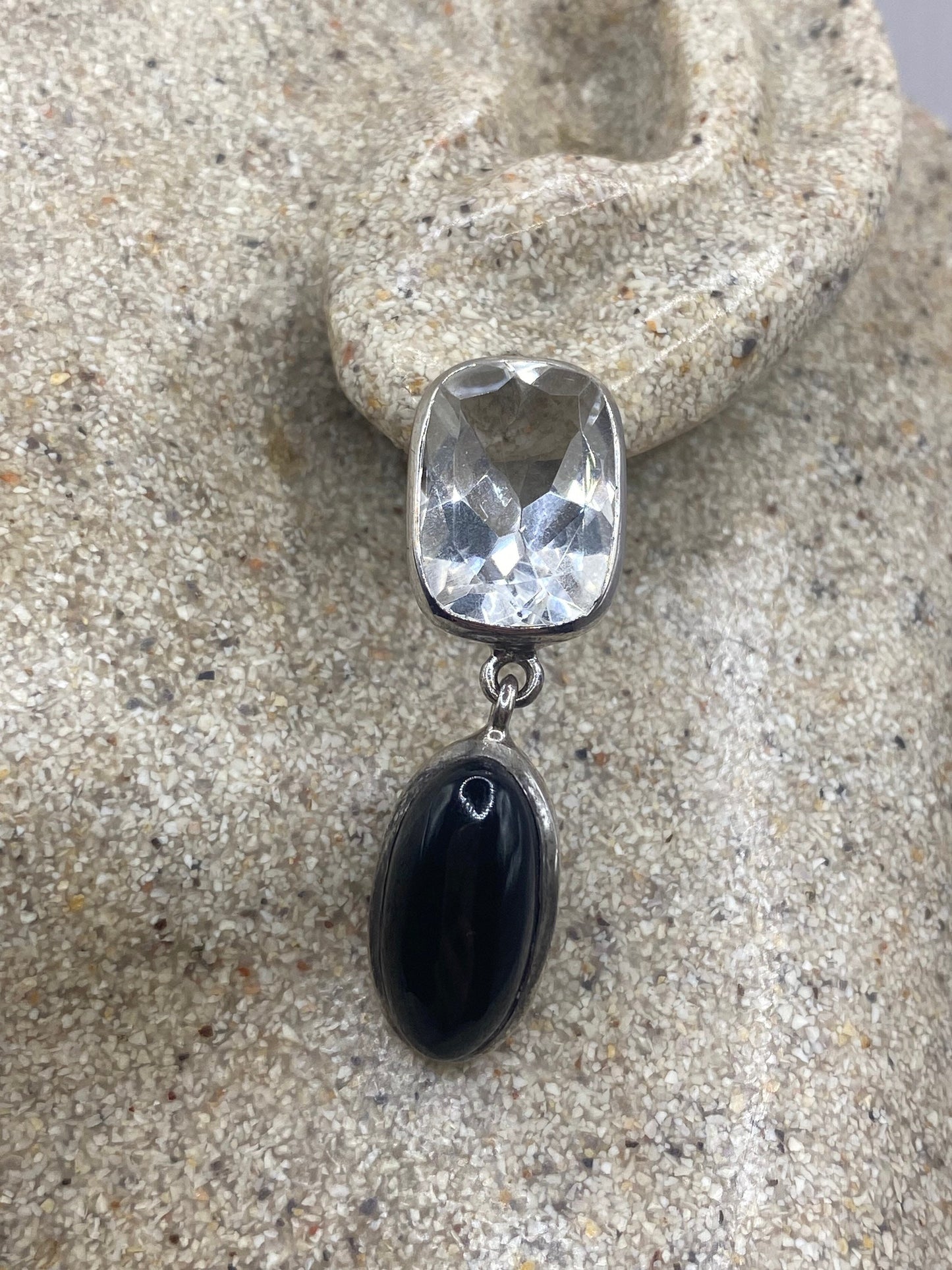 Vintage Black onyx white sapphire earring 925 Sterling Silver Deco dangle chandelier