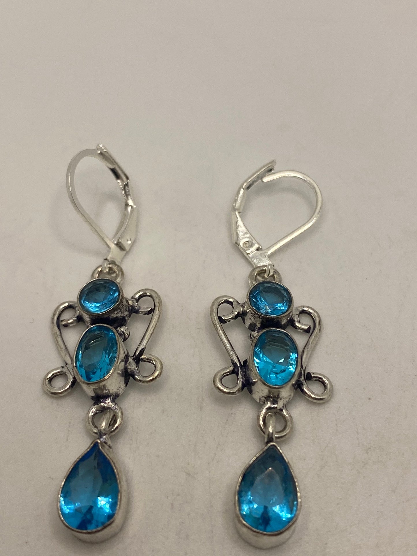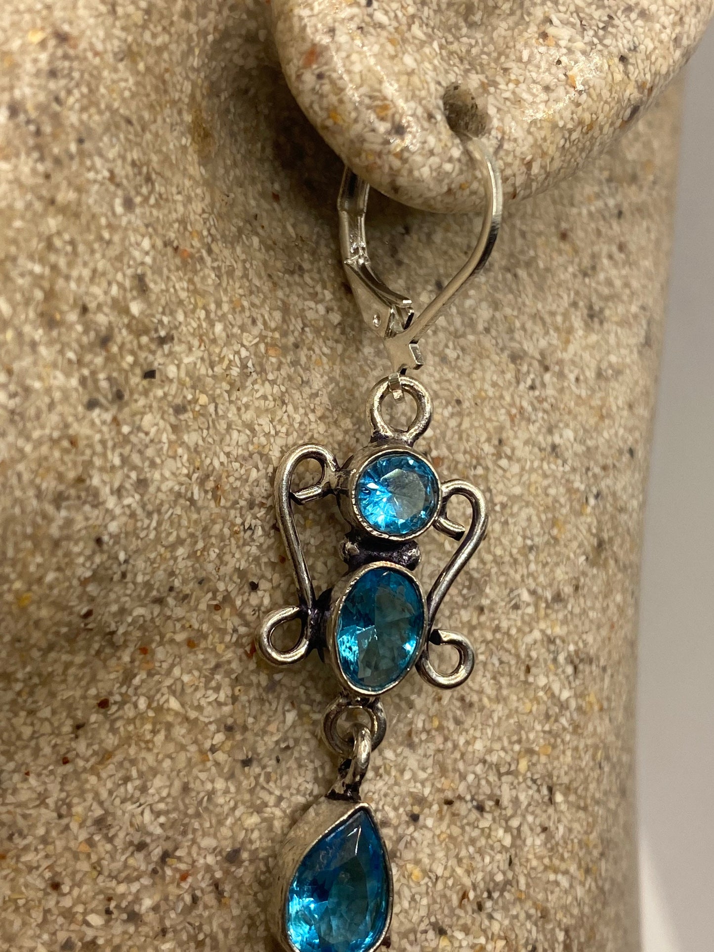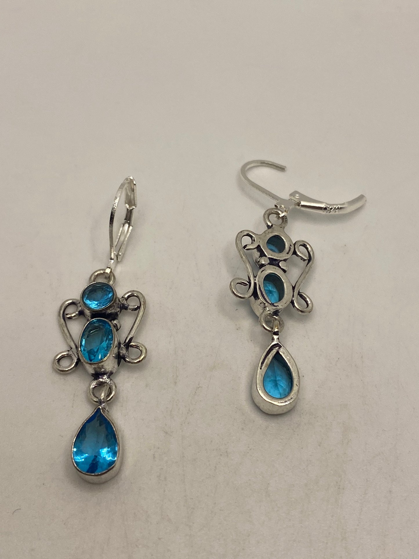 Vintage Blue Topaz leverback Earrings 925 Sterling Silver Dangle