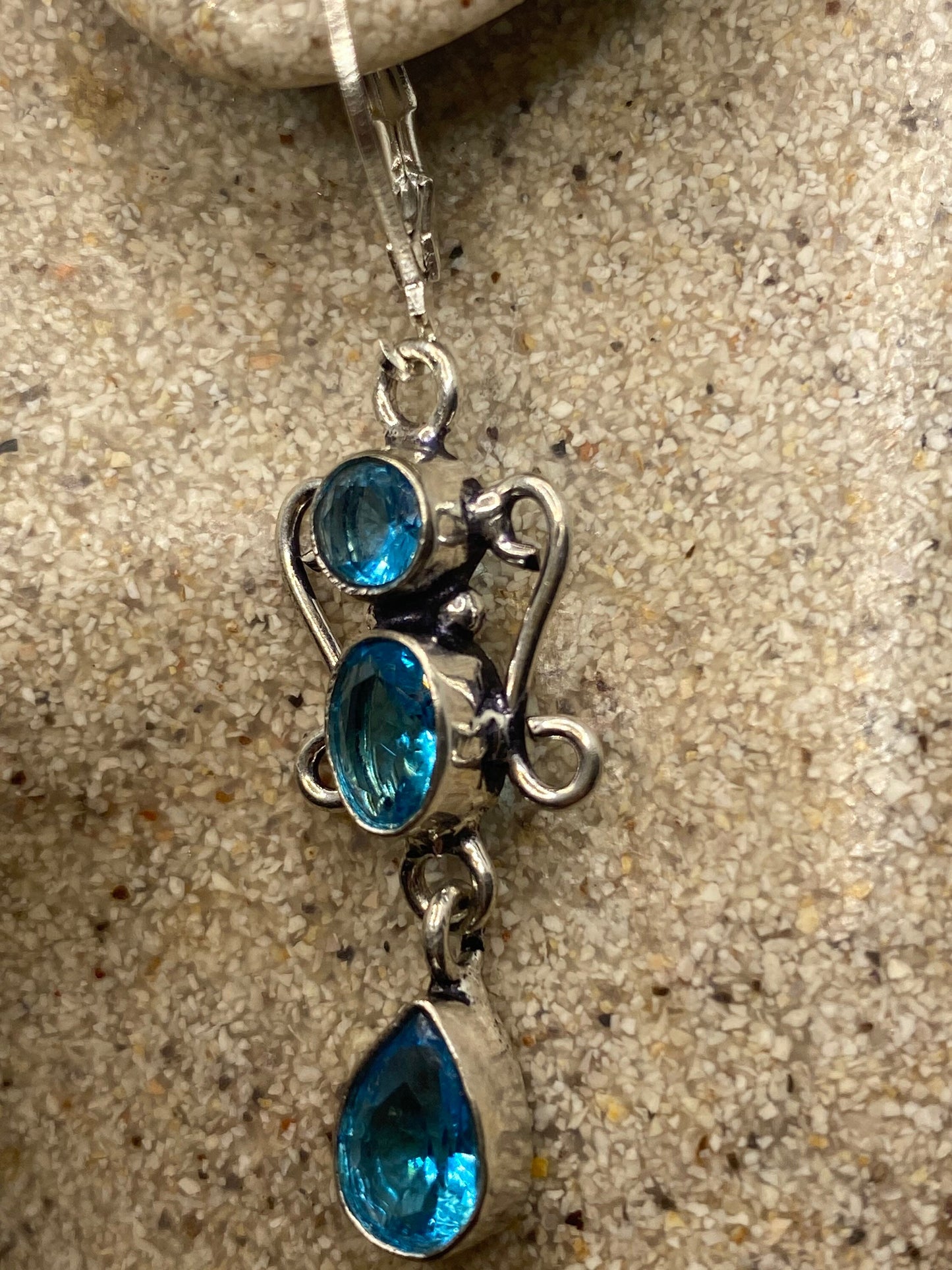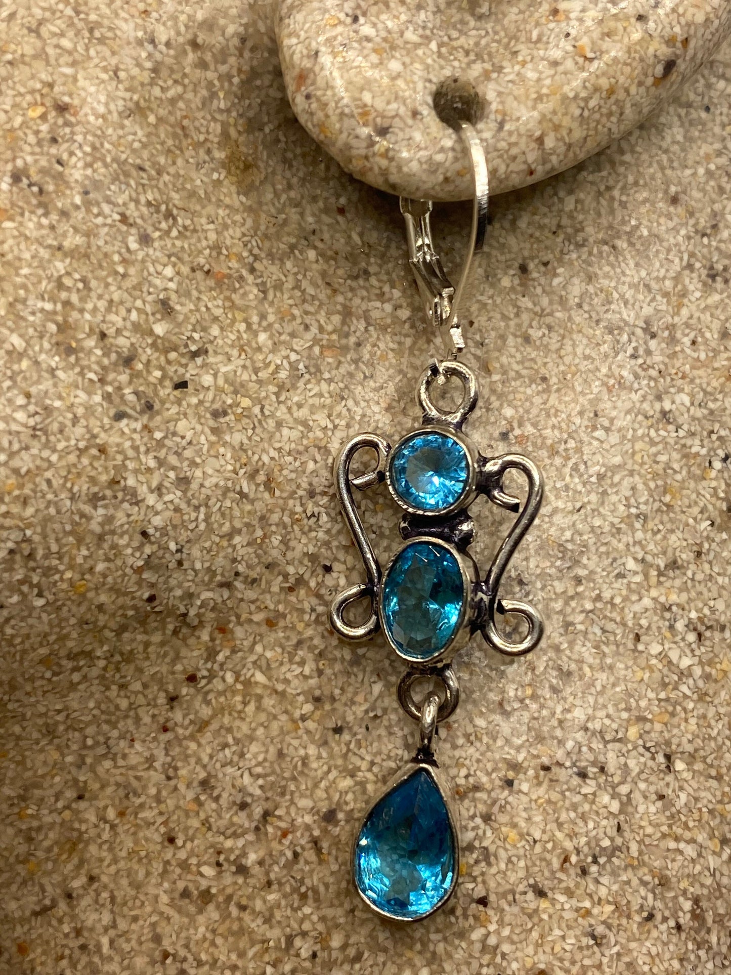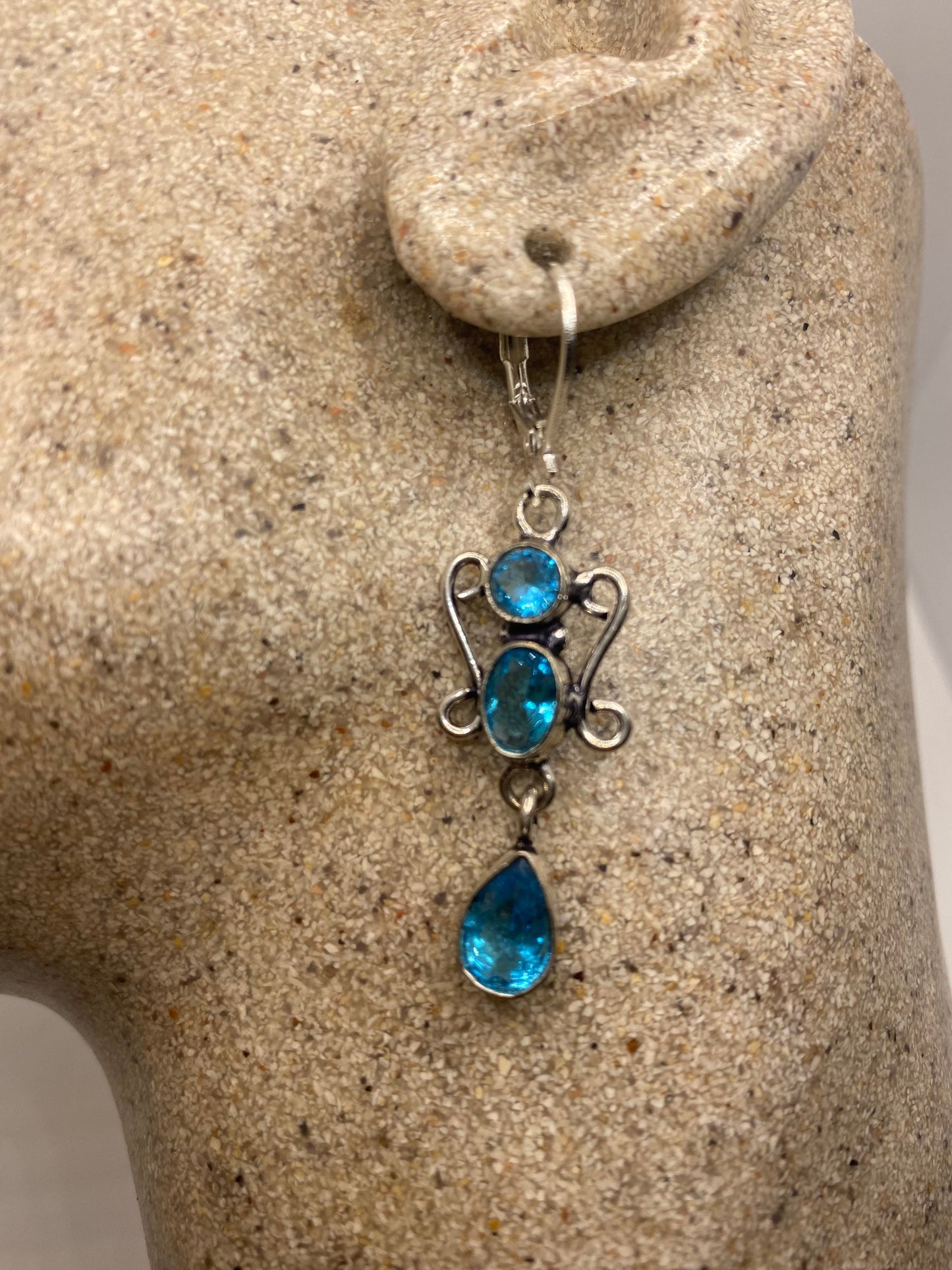 Vintage Blue Topaz leverback Earrings 925 Sterling Silver Dangle