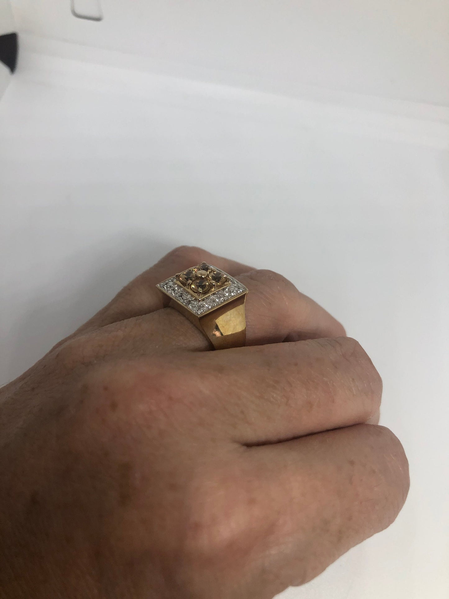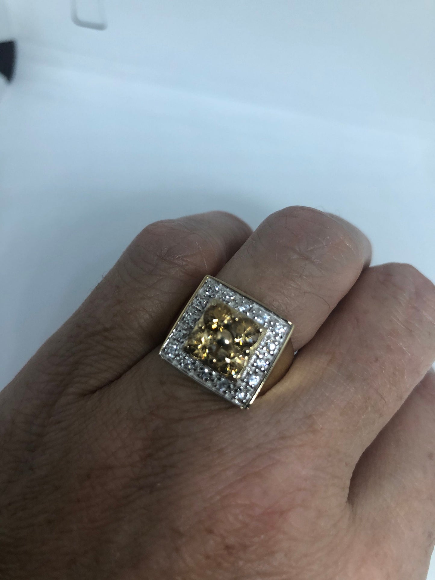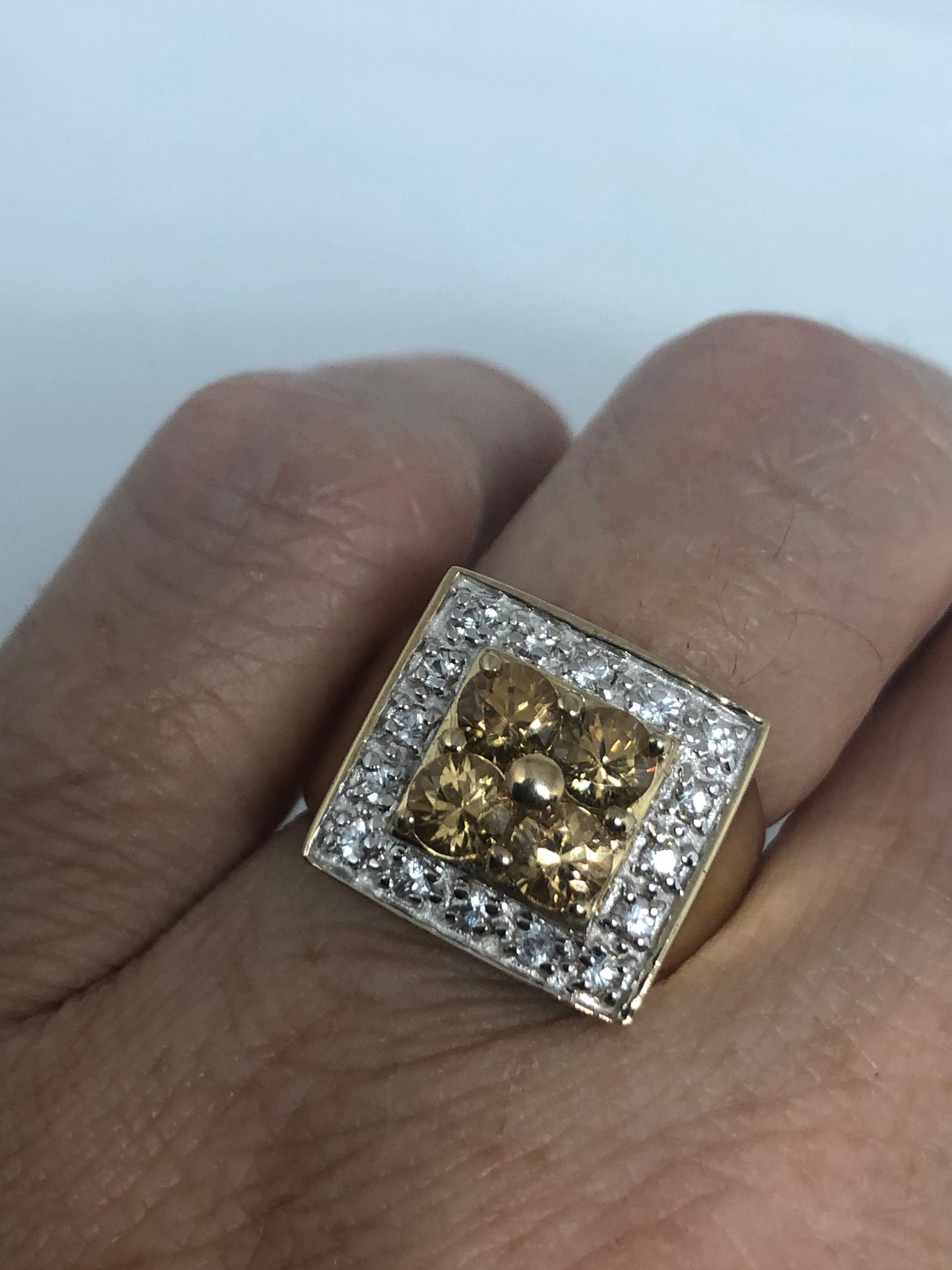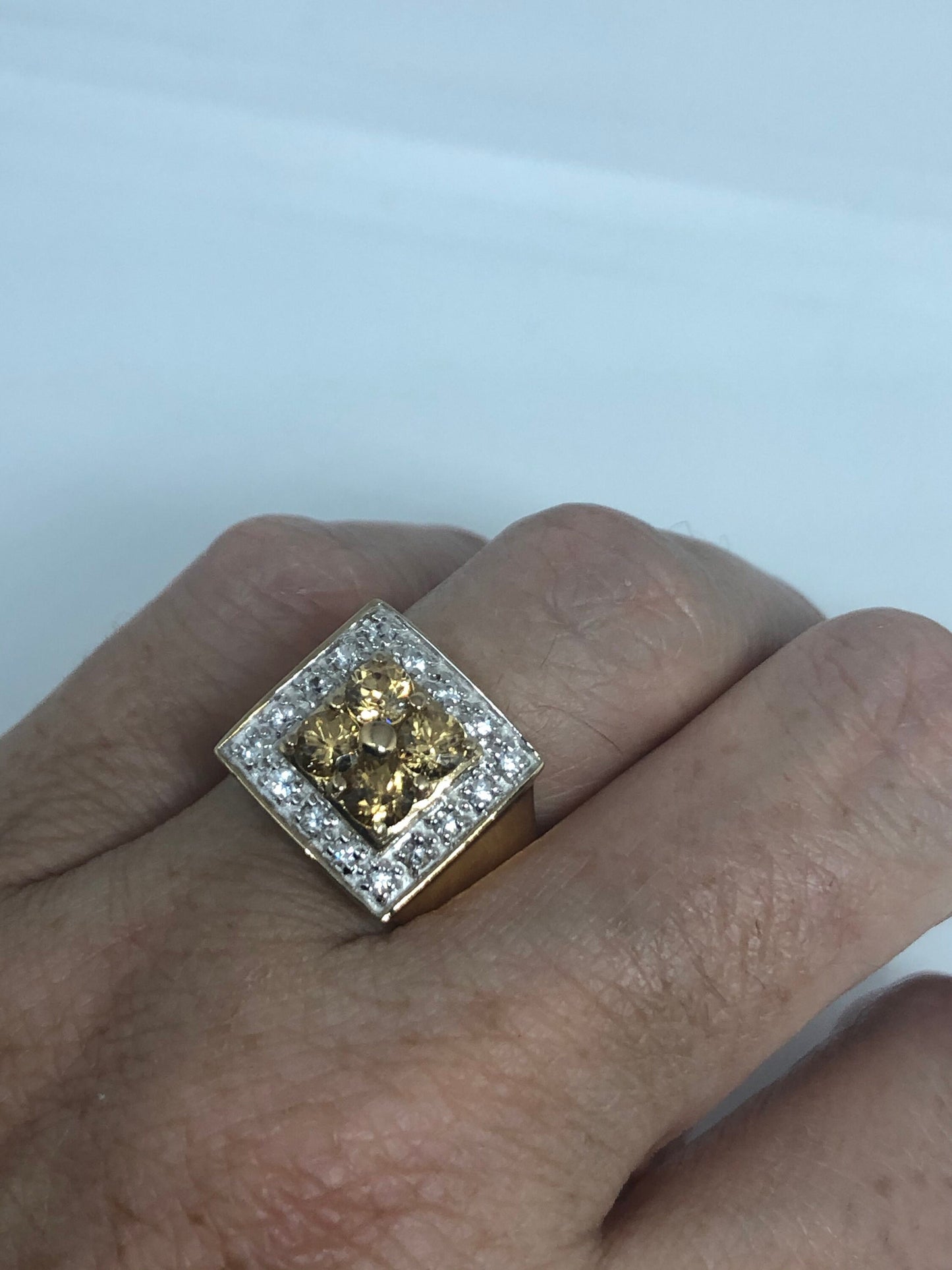 Vintage Citrine Golden 925 Sterling Silver Gothic Ring Size 6