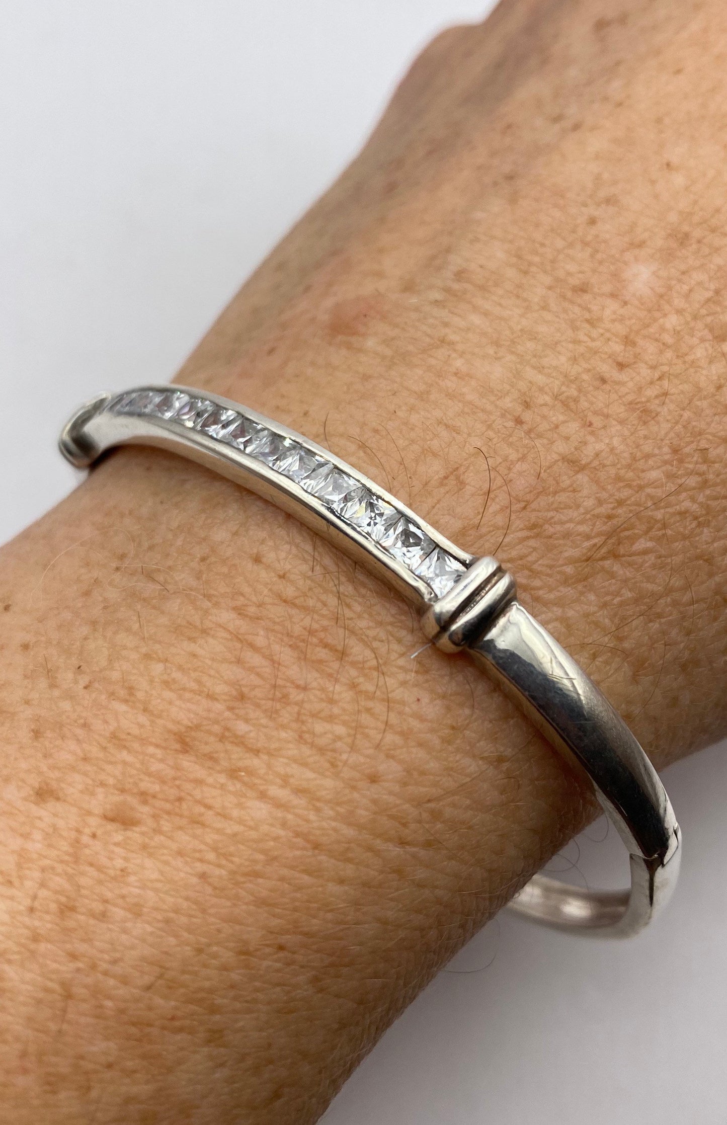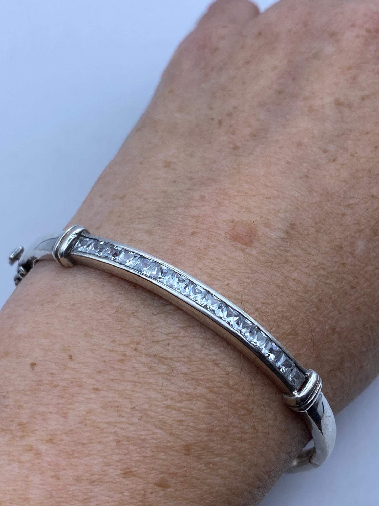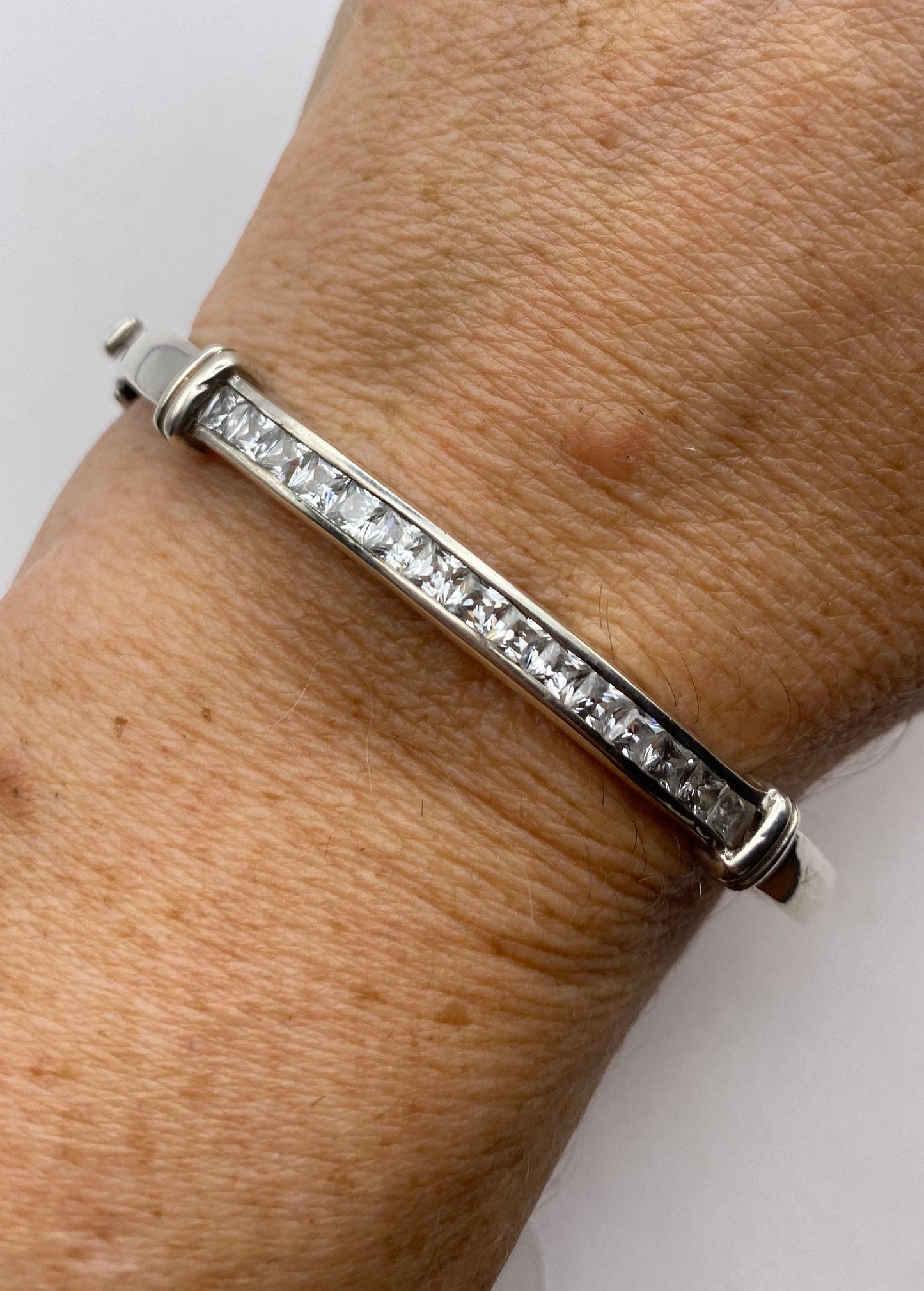 Vintage Clear CZ 925 Sterling Silver Bangle Bracelet