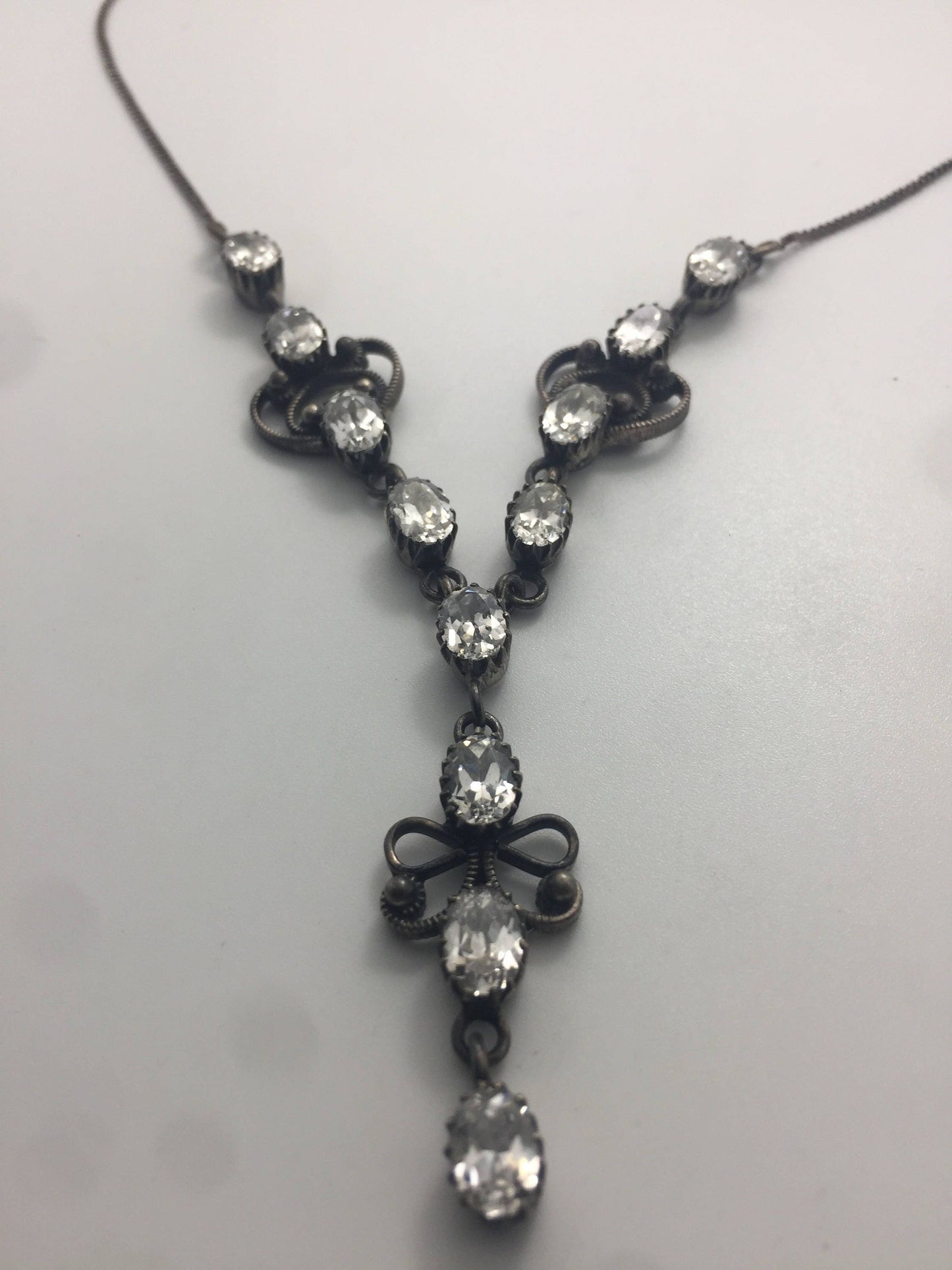 Vintage Crystal Cubic Zirconia Choker Necklace 925 Sterling Silver