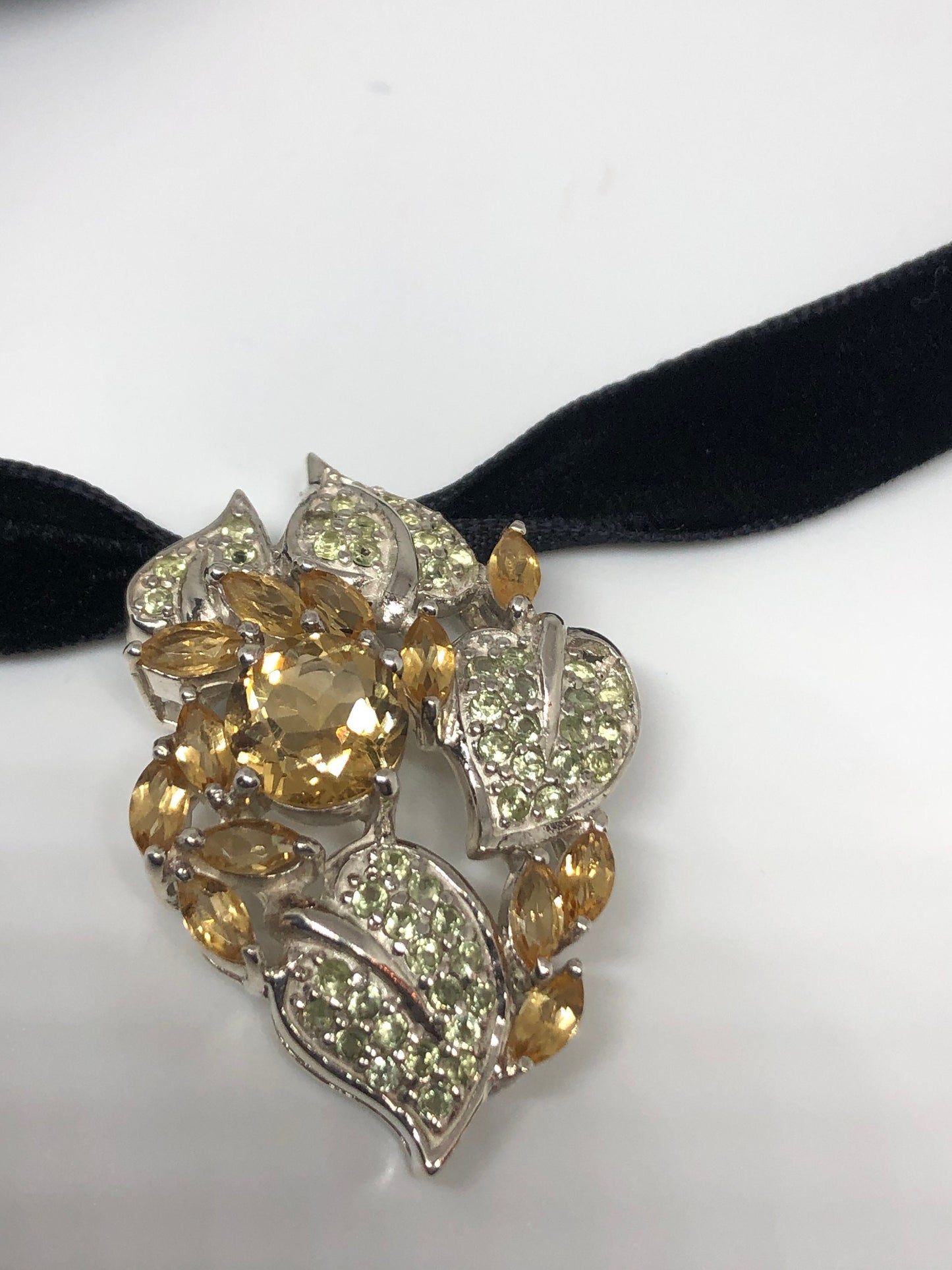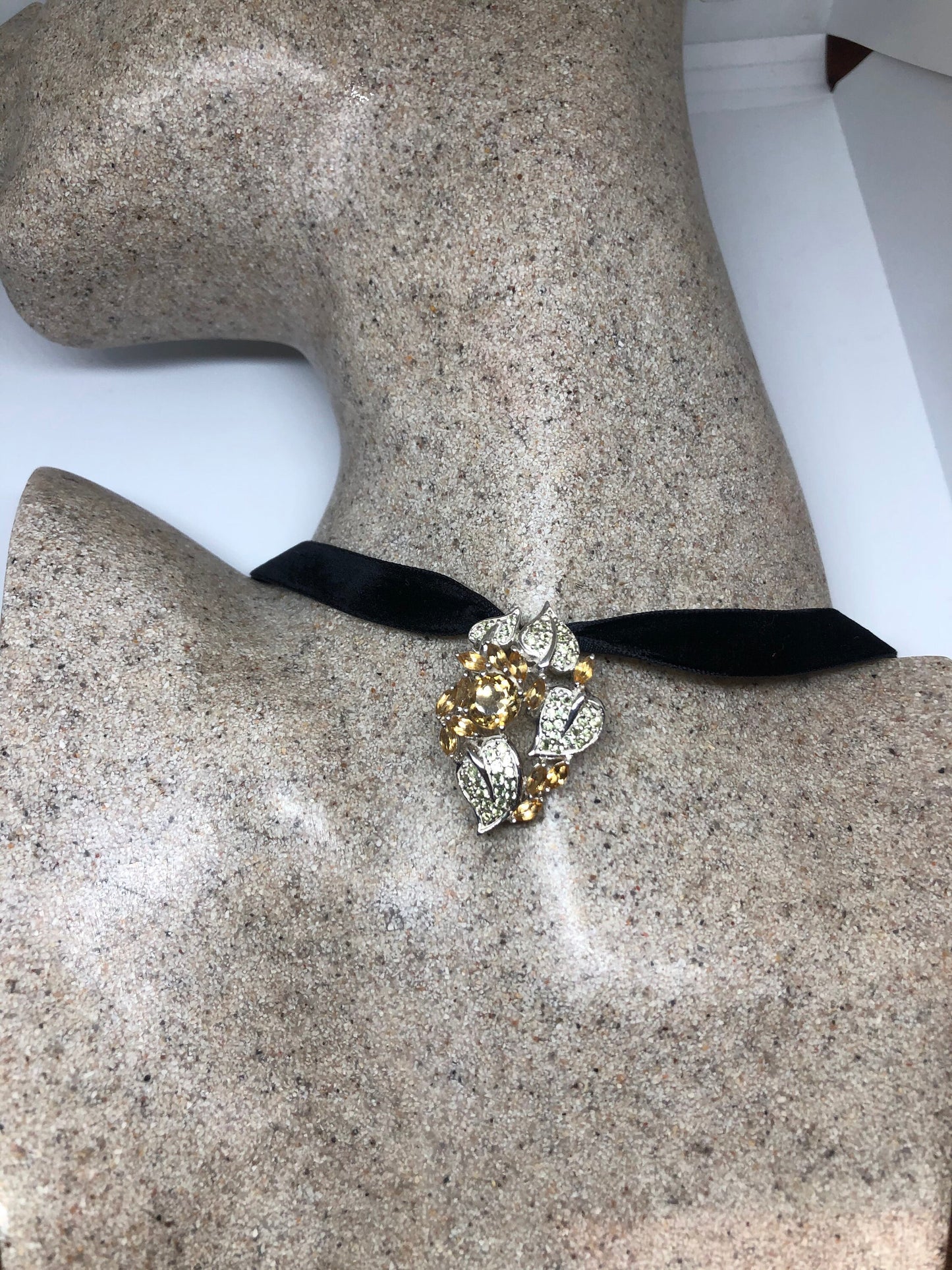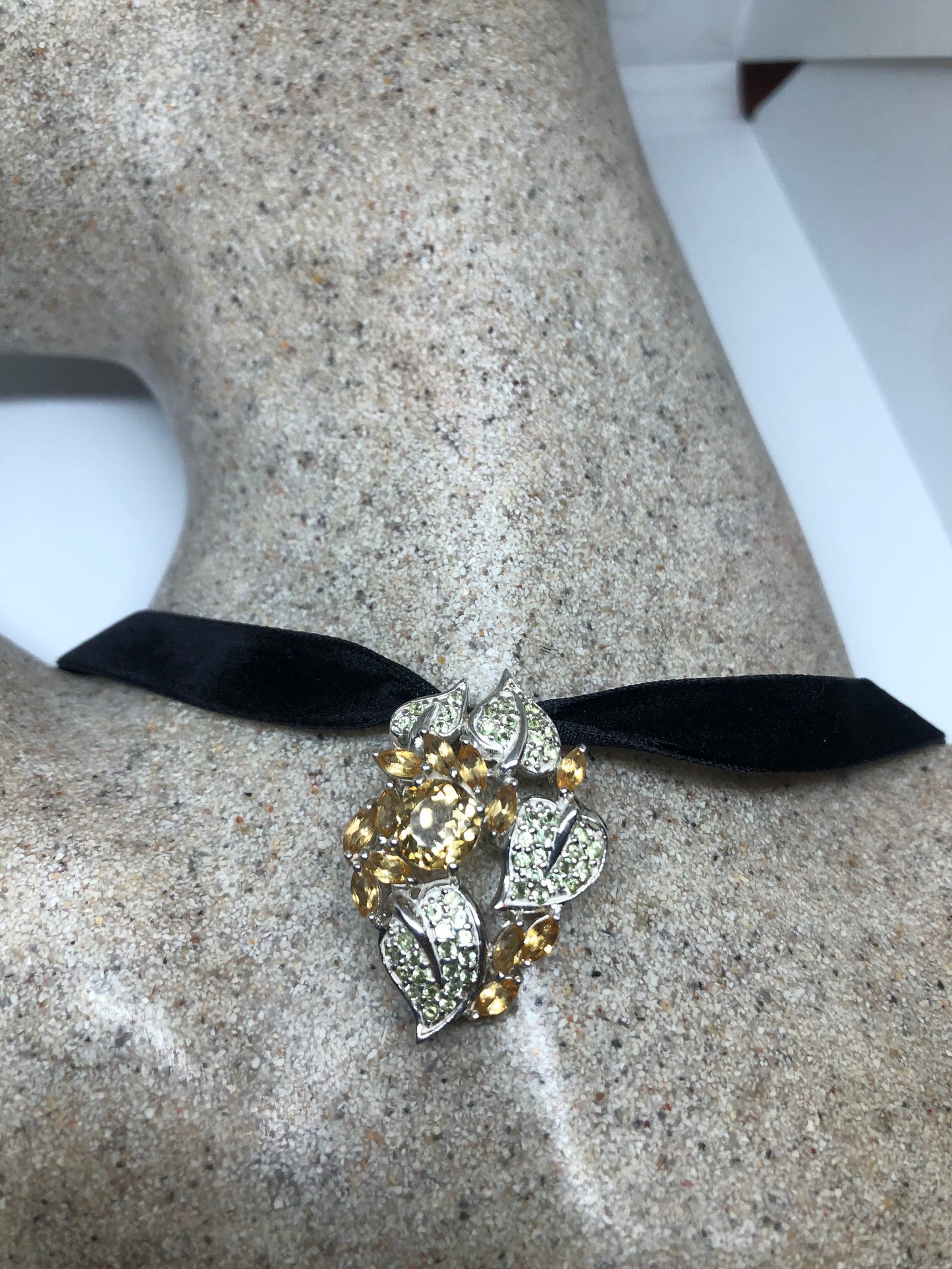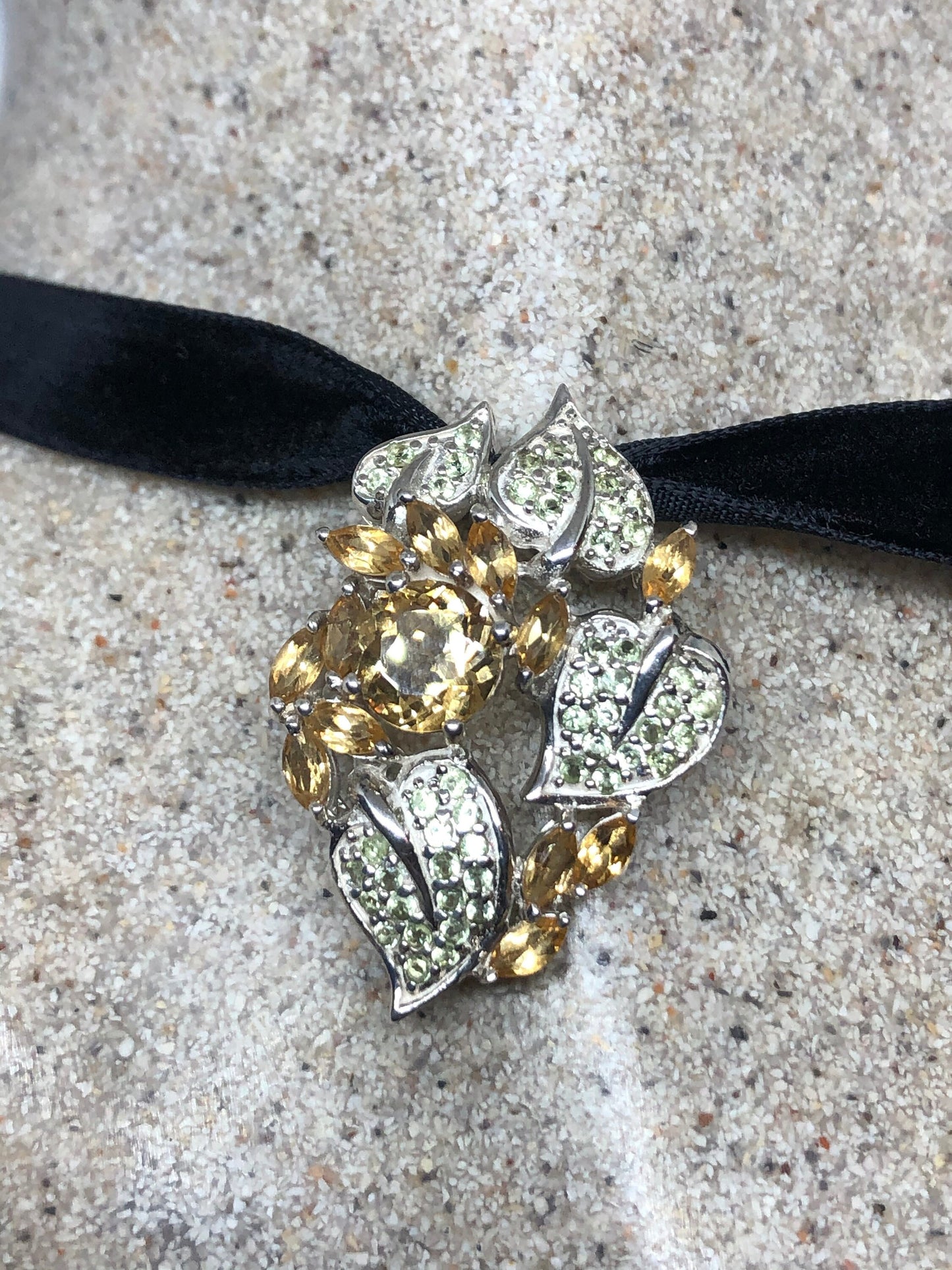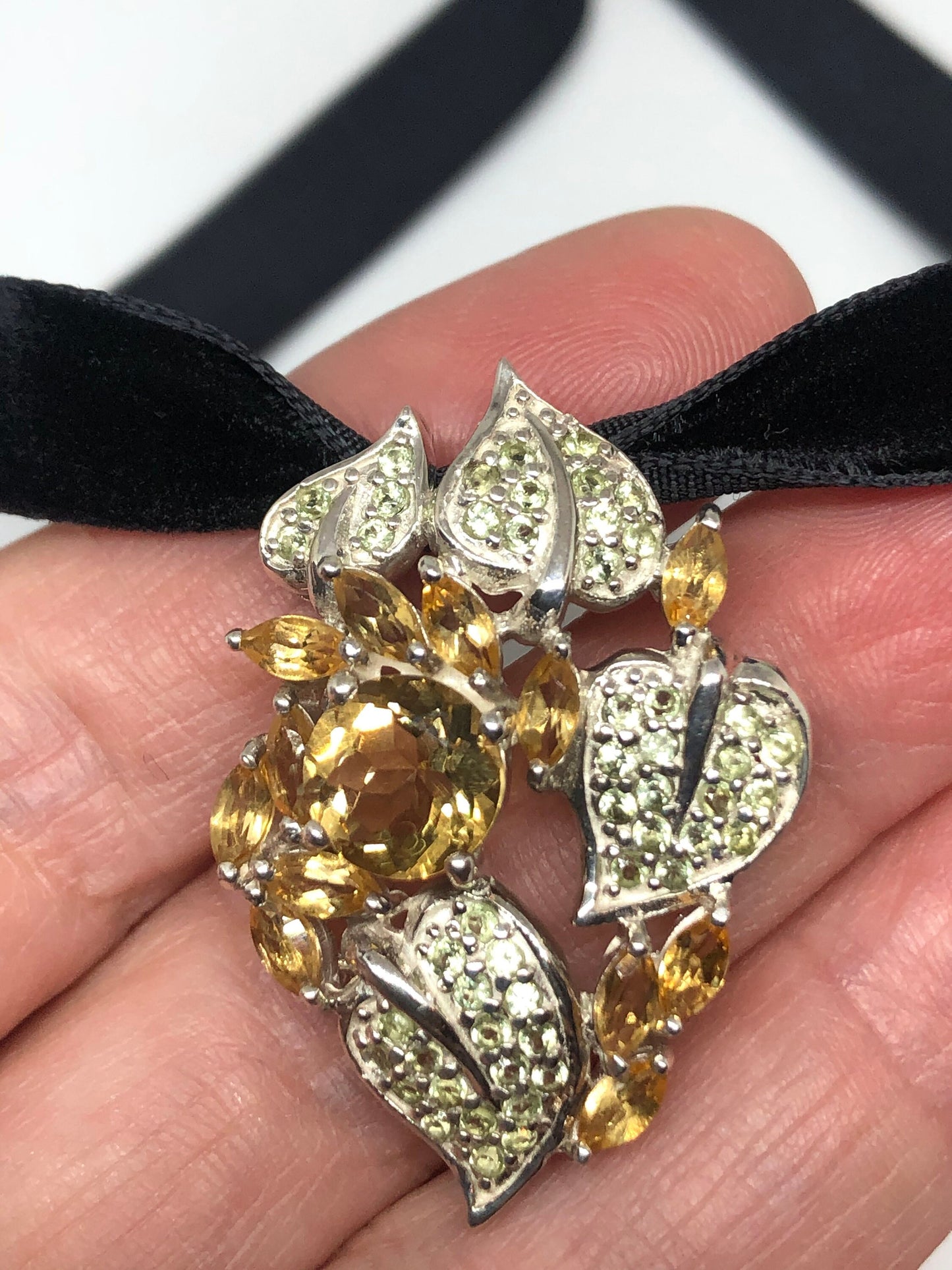 Vintage Deco Handmade 925 Sterling Silver Golden Lemon Citrine Vine Pendant