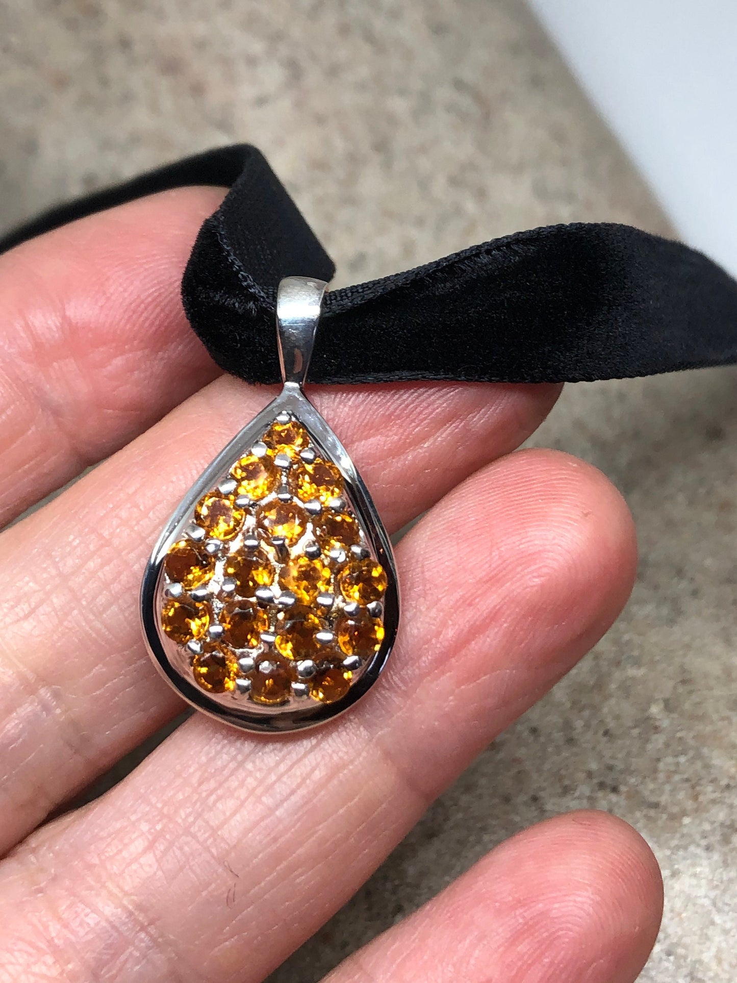 Vintage Deco Handmade 925 Sterling Silver Golden Lemon Citrine Pendant