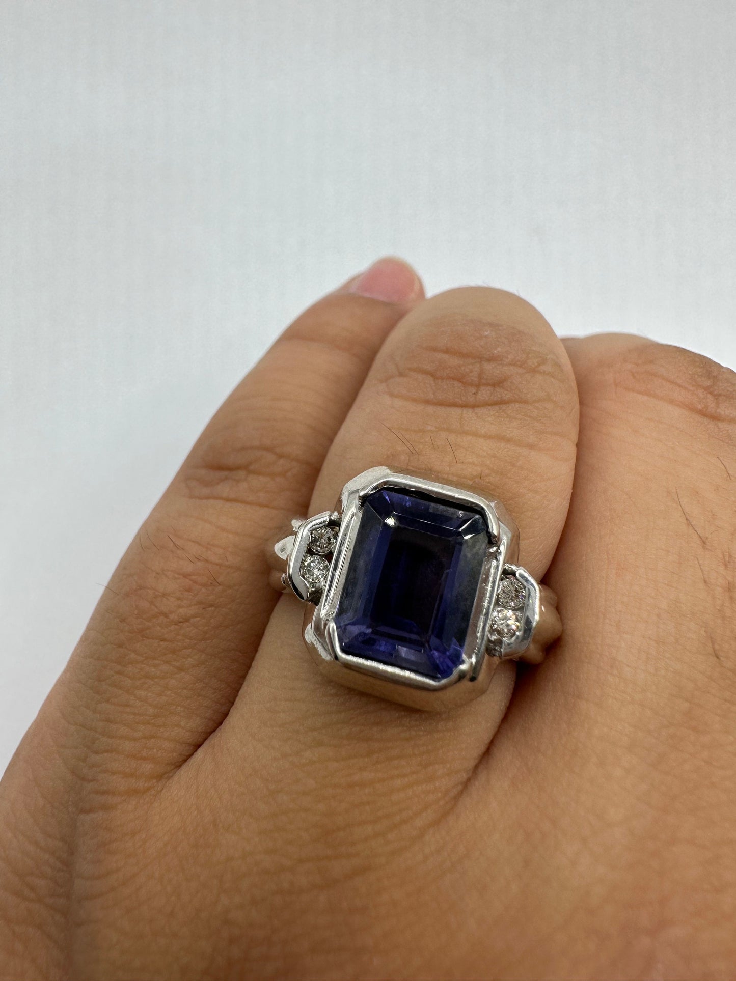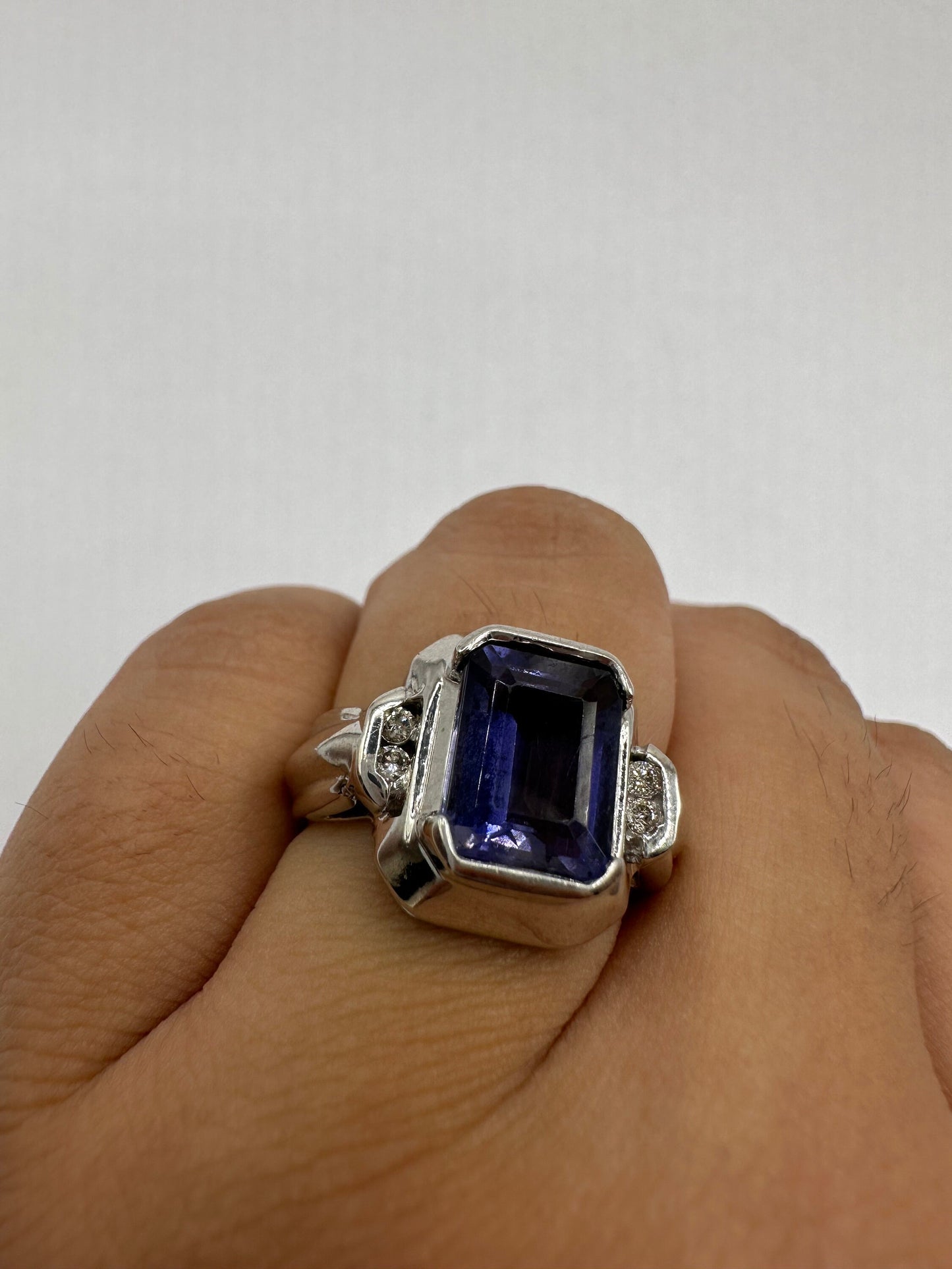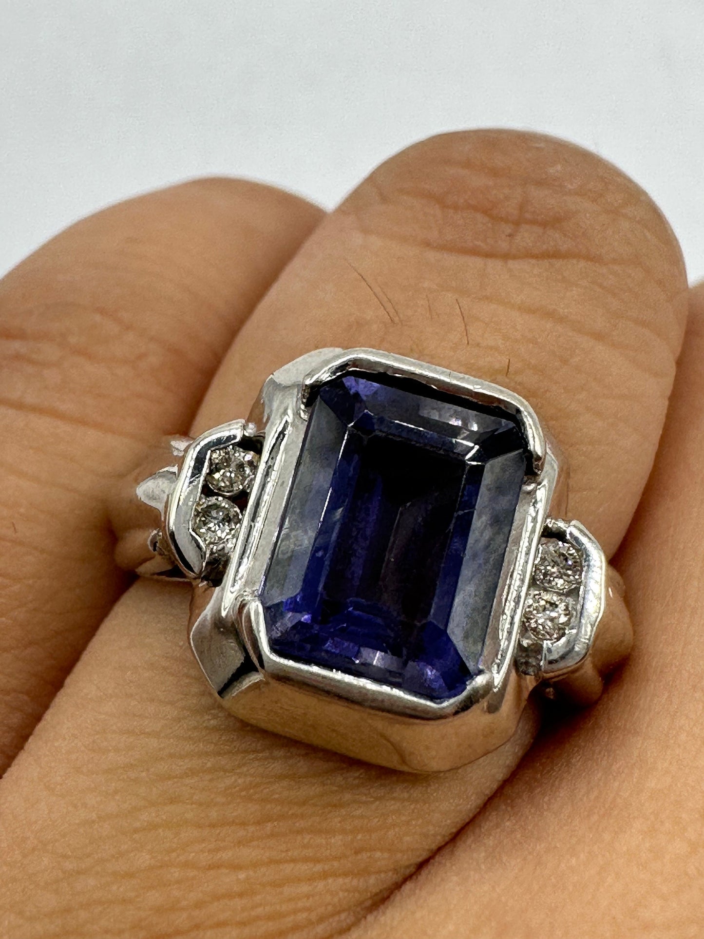 Vintage Deep Blue Iolite Diamond 14k White Gold Deco Ring Size 8