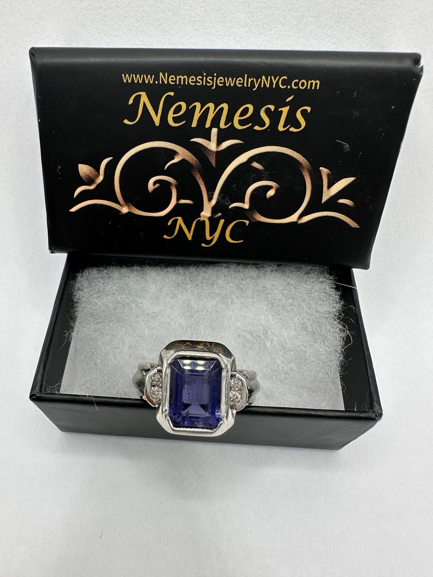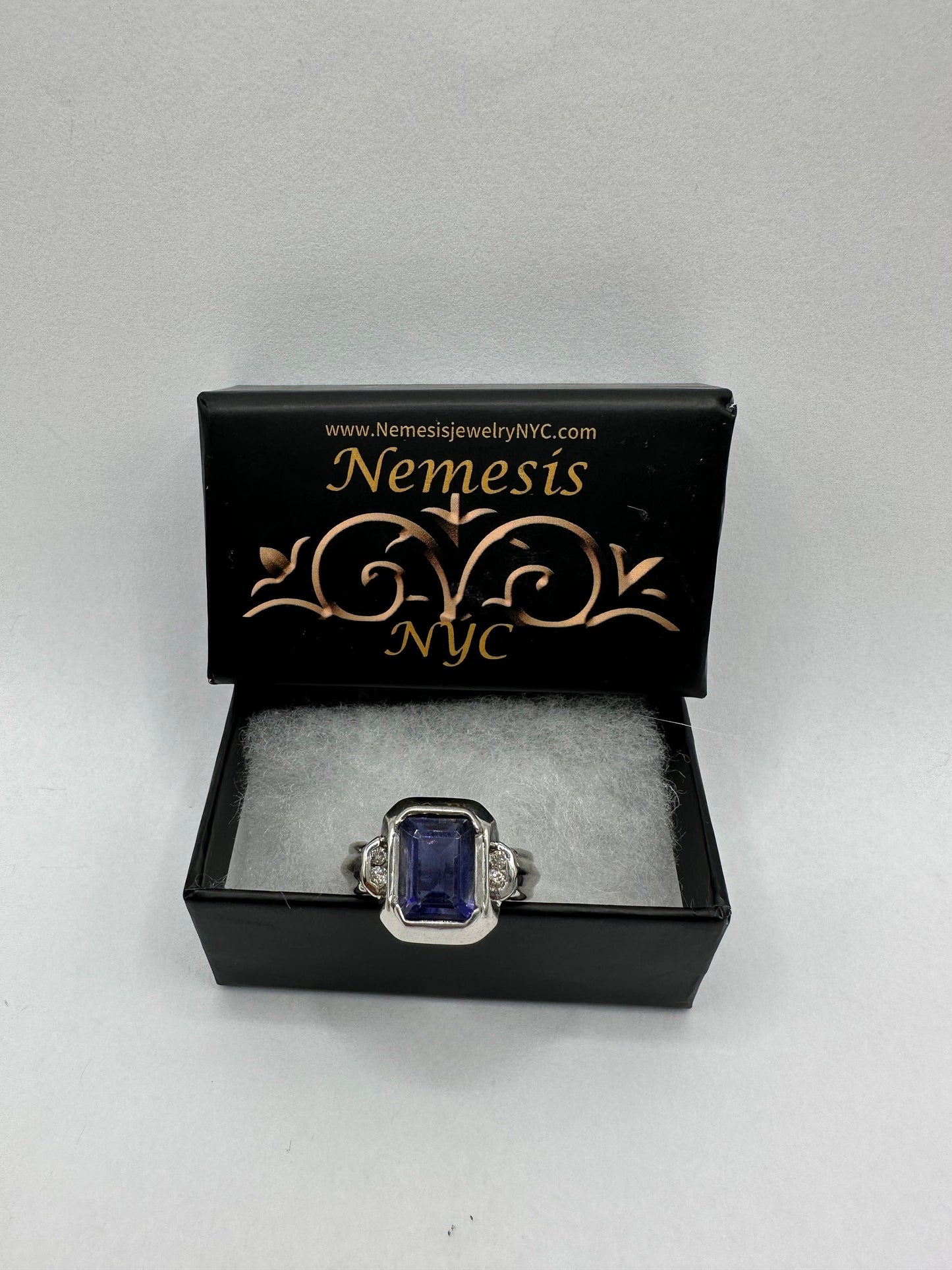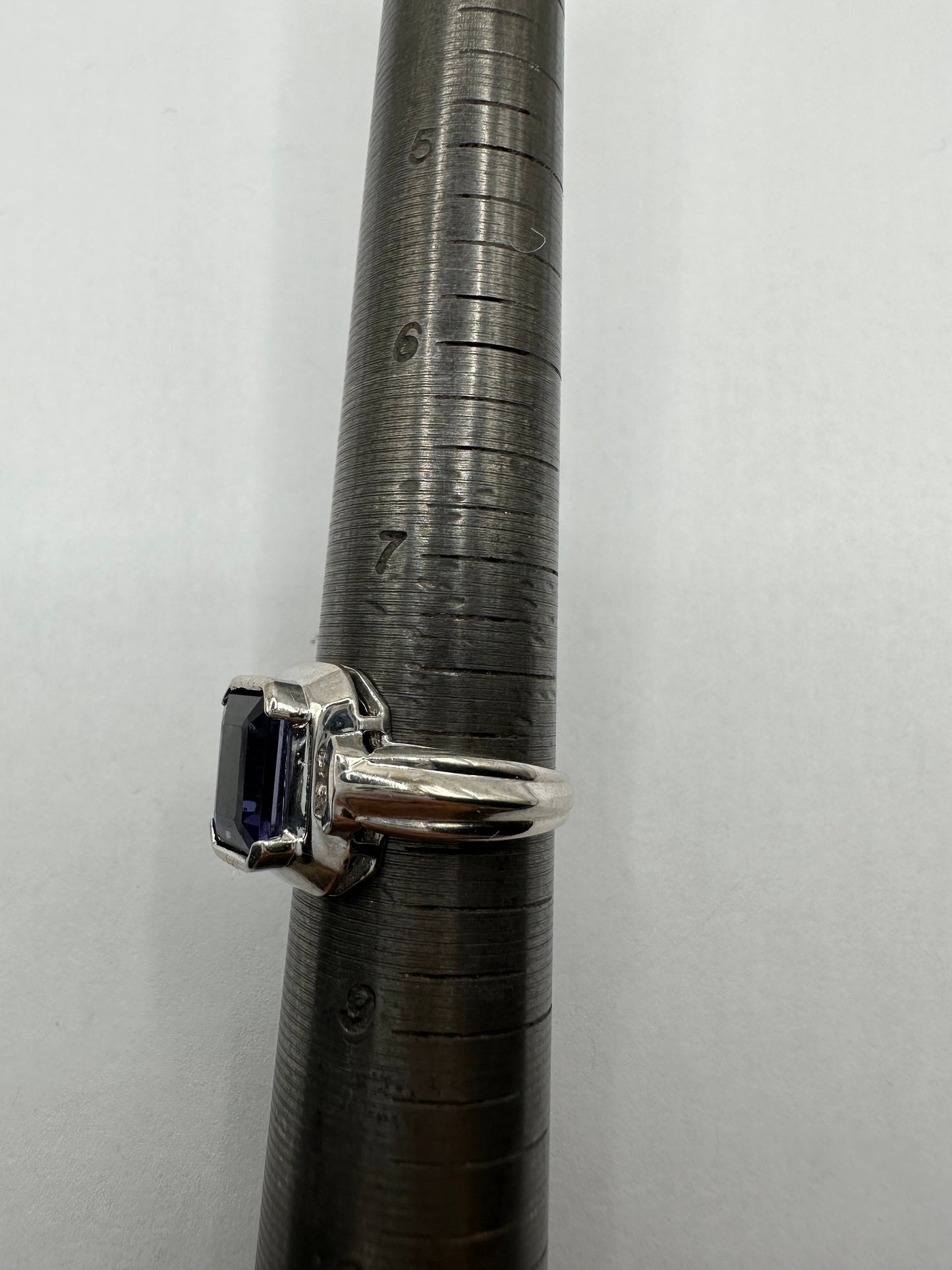 Vintage Deep Blue Iolite Diamond 14k White Gold Deco Ring Size 8