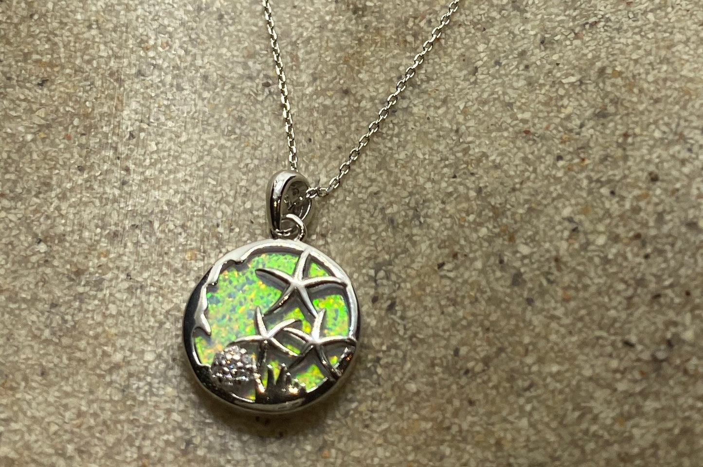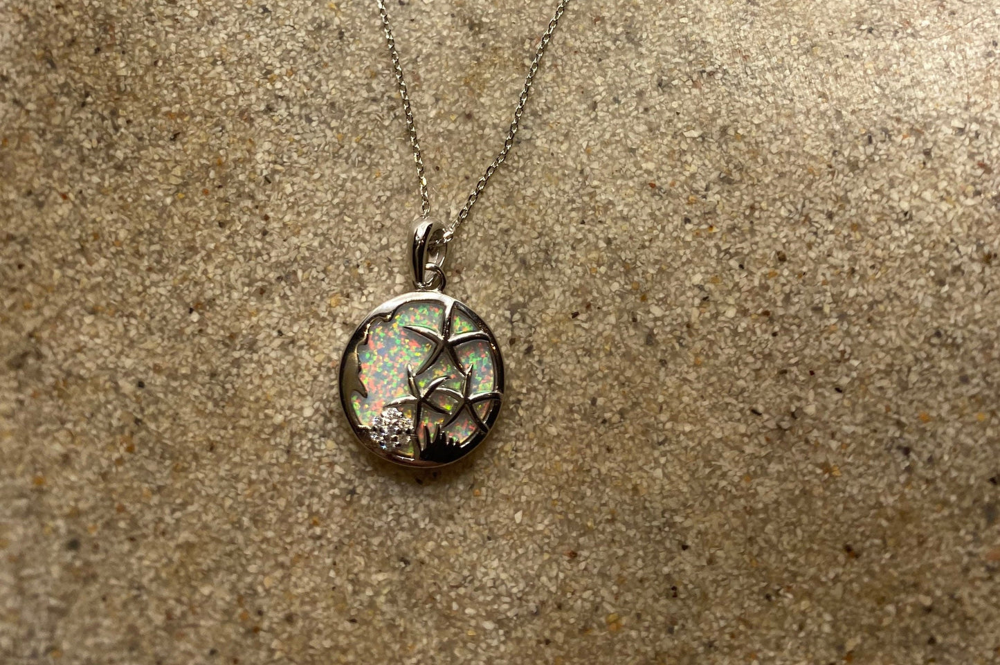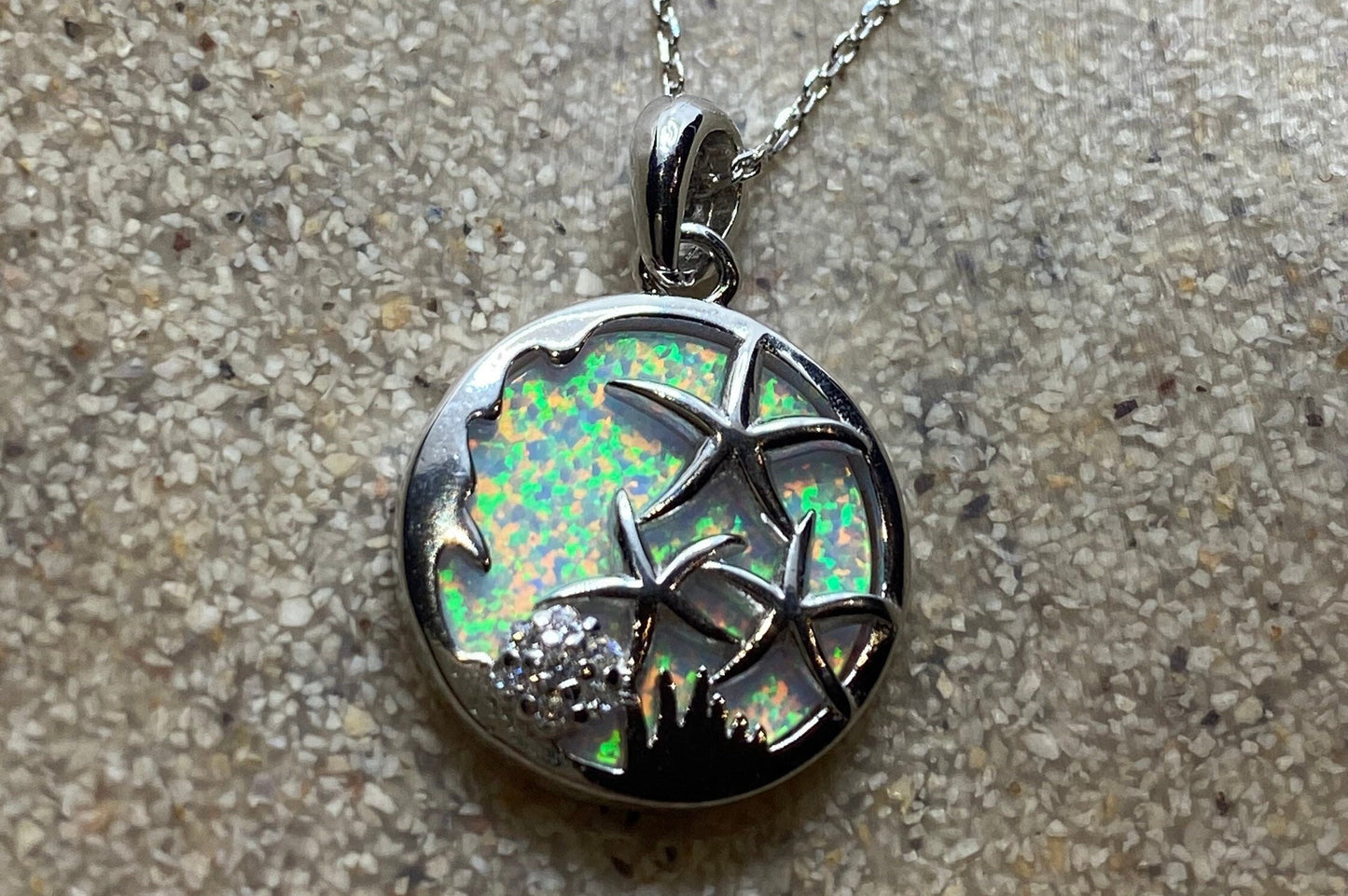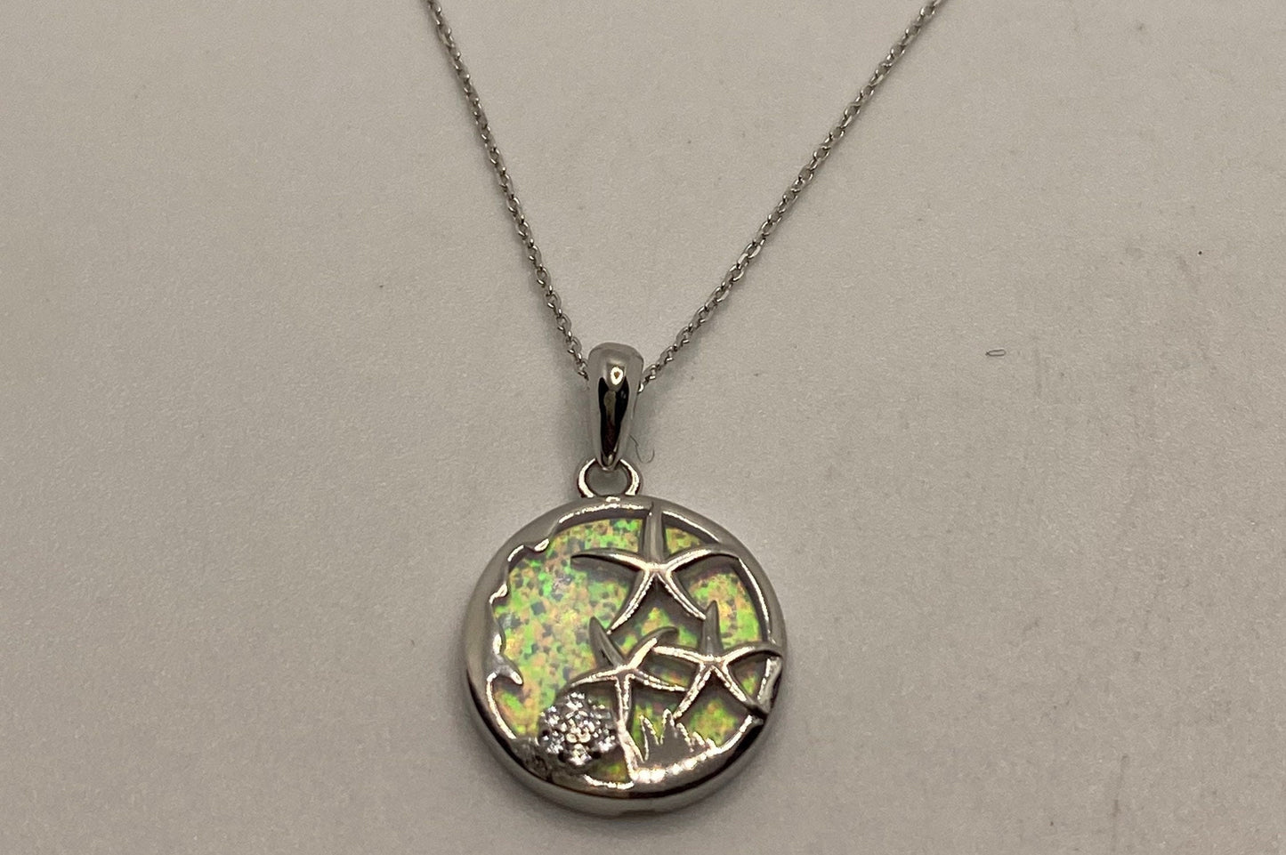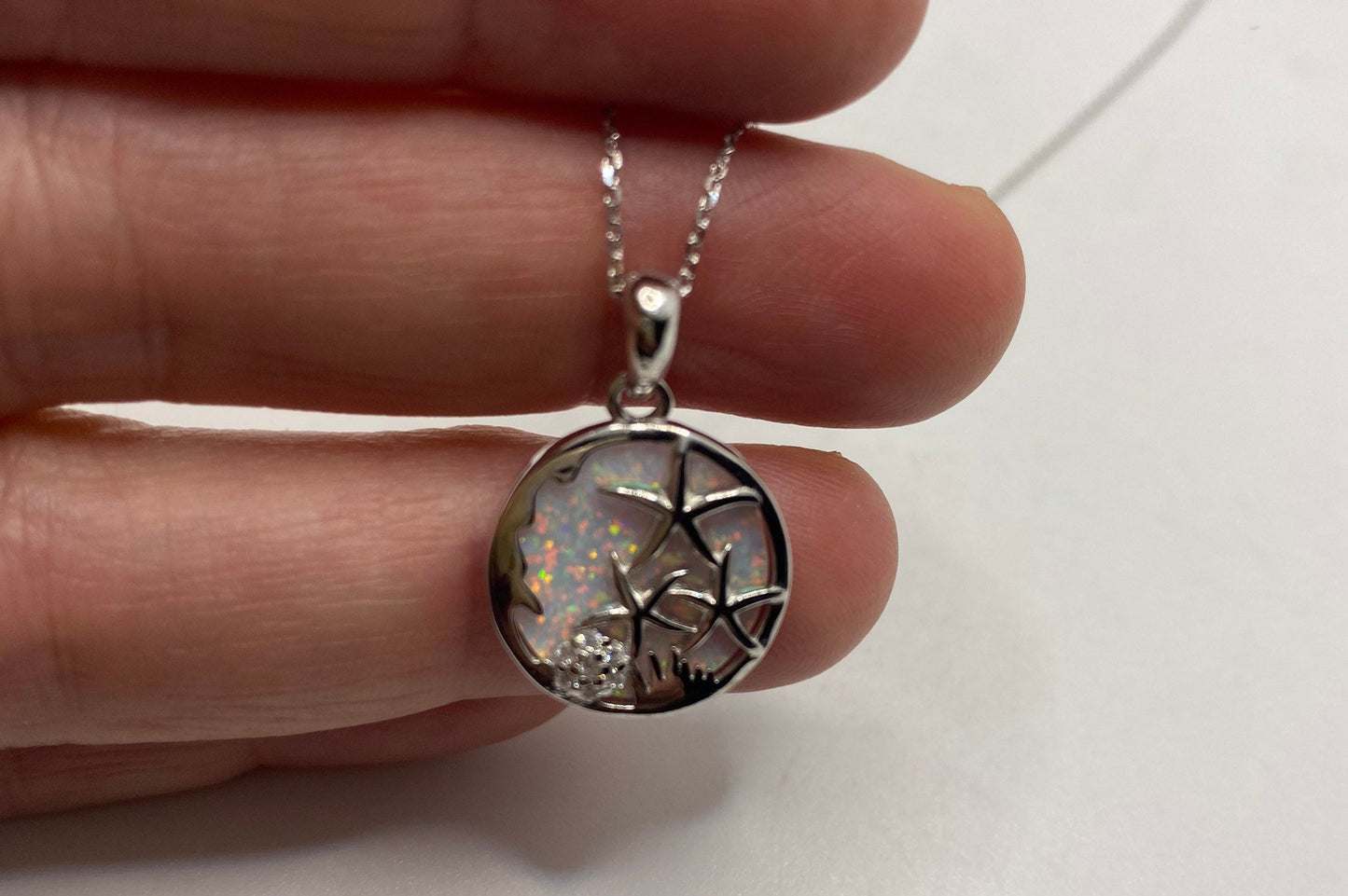 Vintage White Opal Starfish Choker in 925 Sterling Silver Pendant Necklace