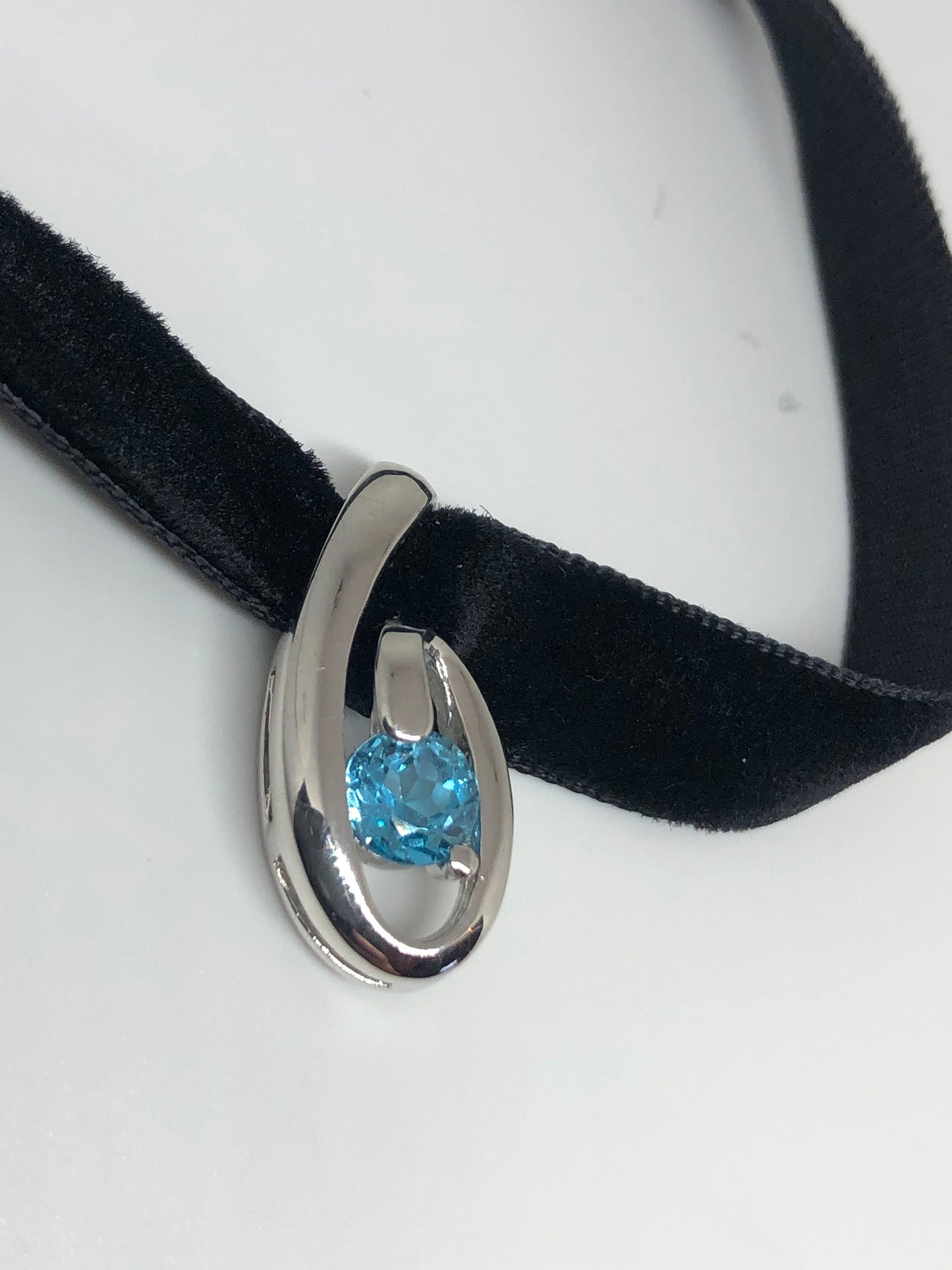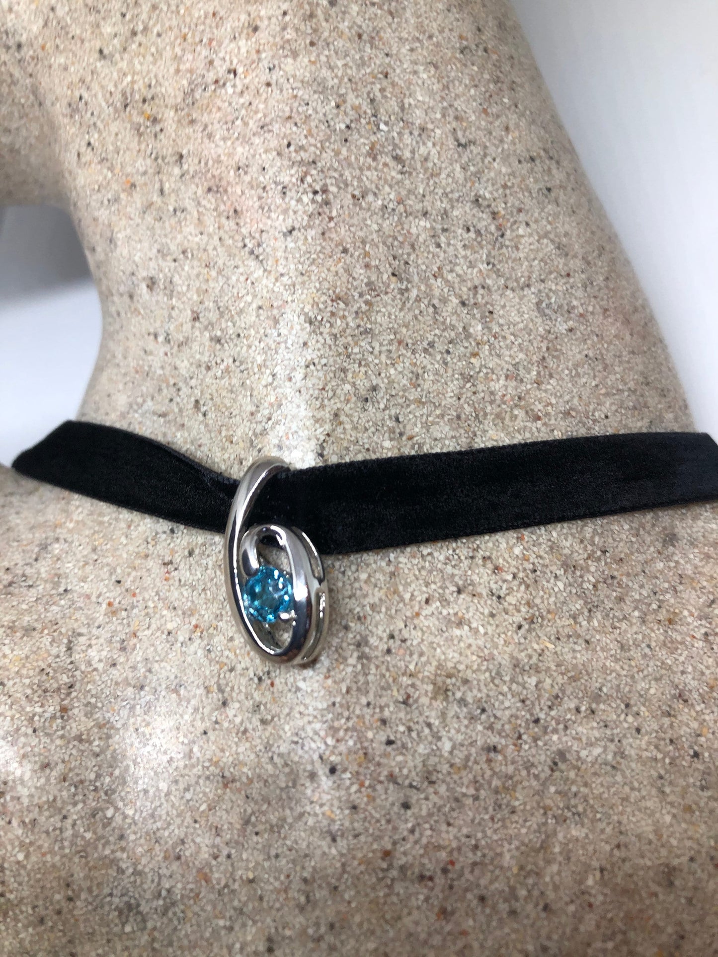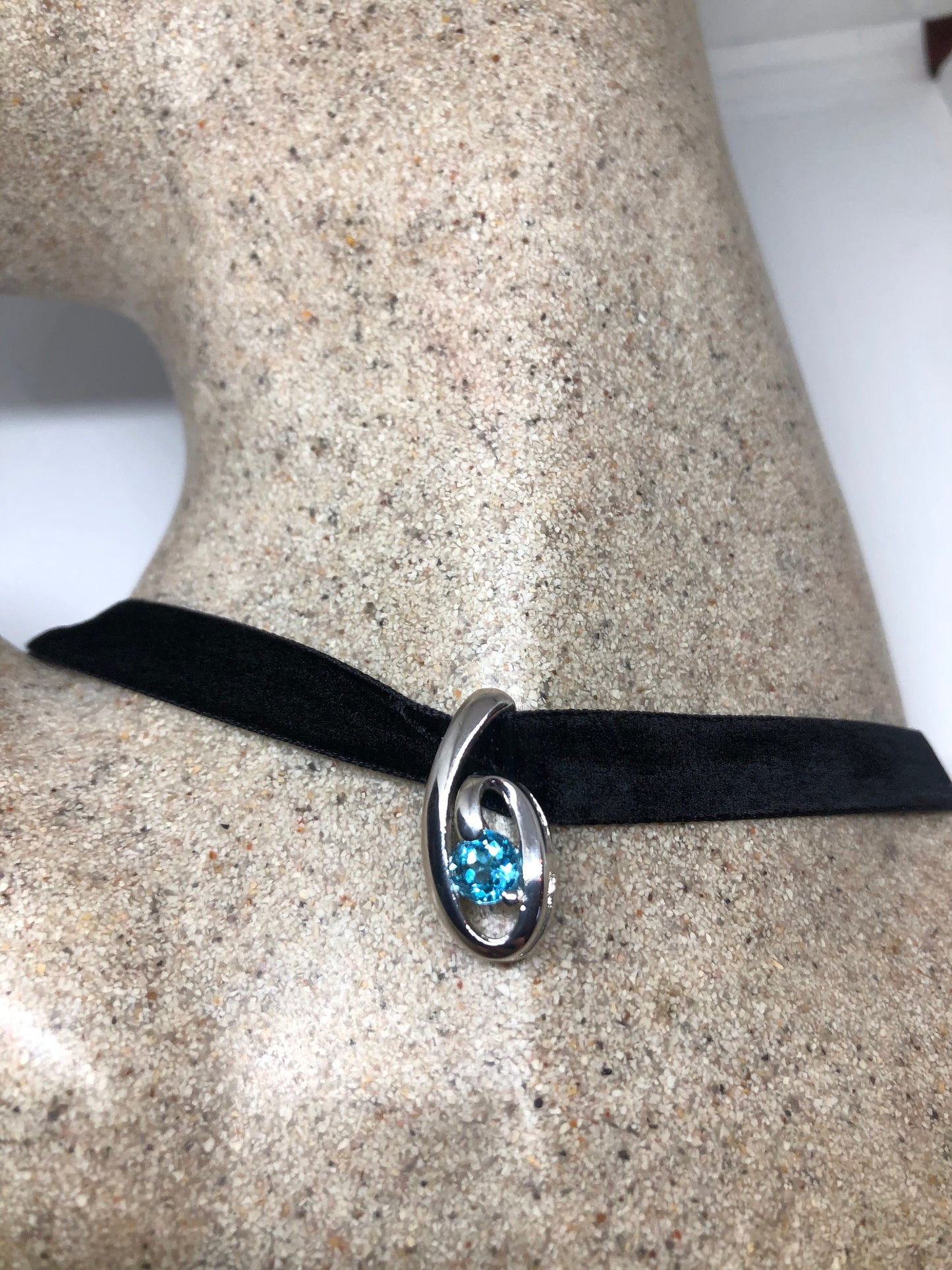Vintage Genuine Blue Topaz 925 Sterling Silver Deco Choker Necklace Pendant