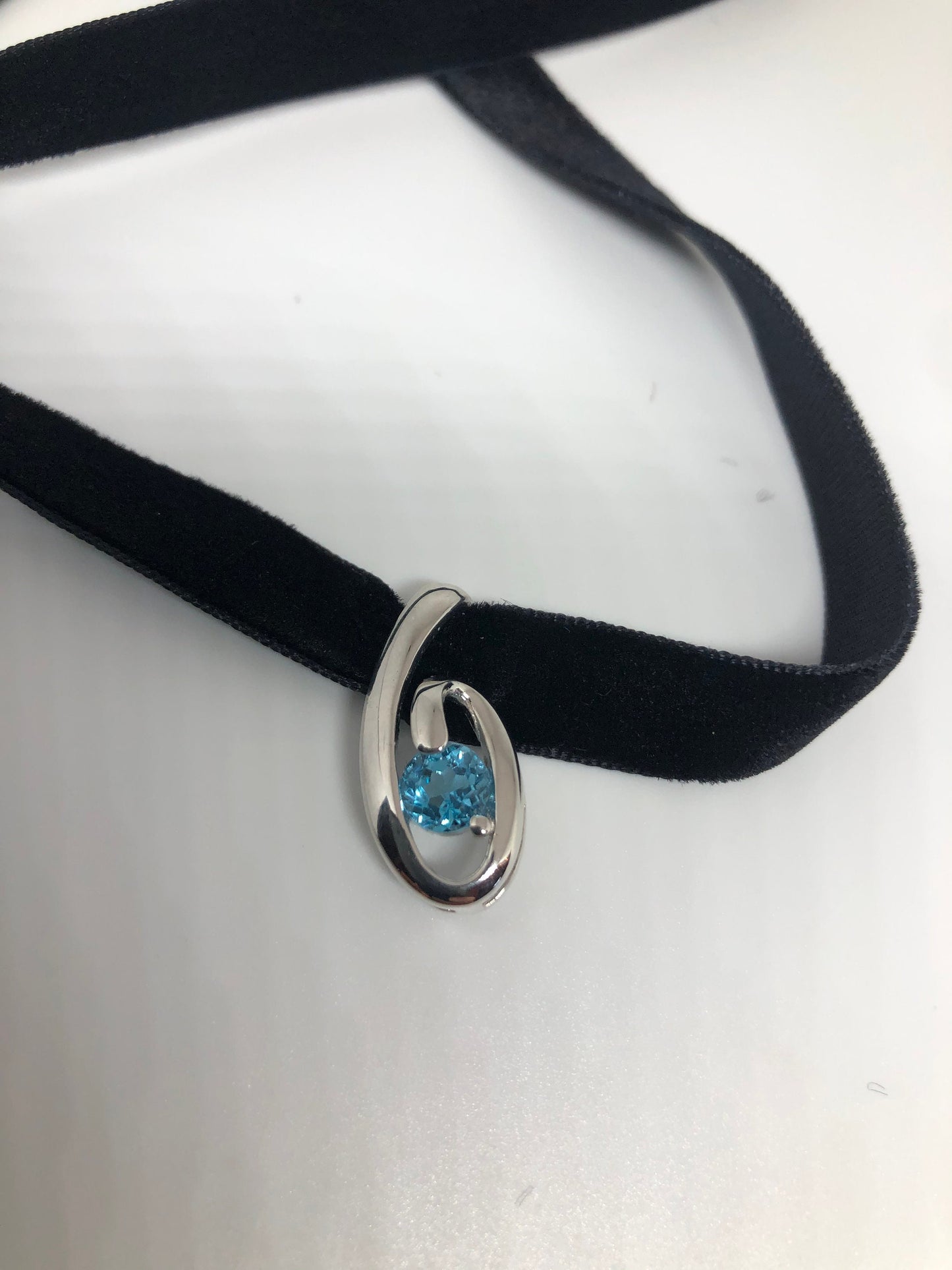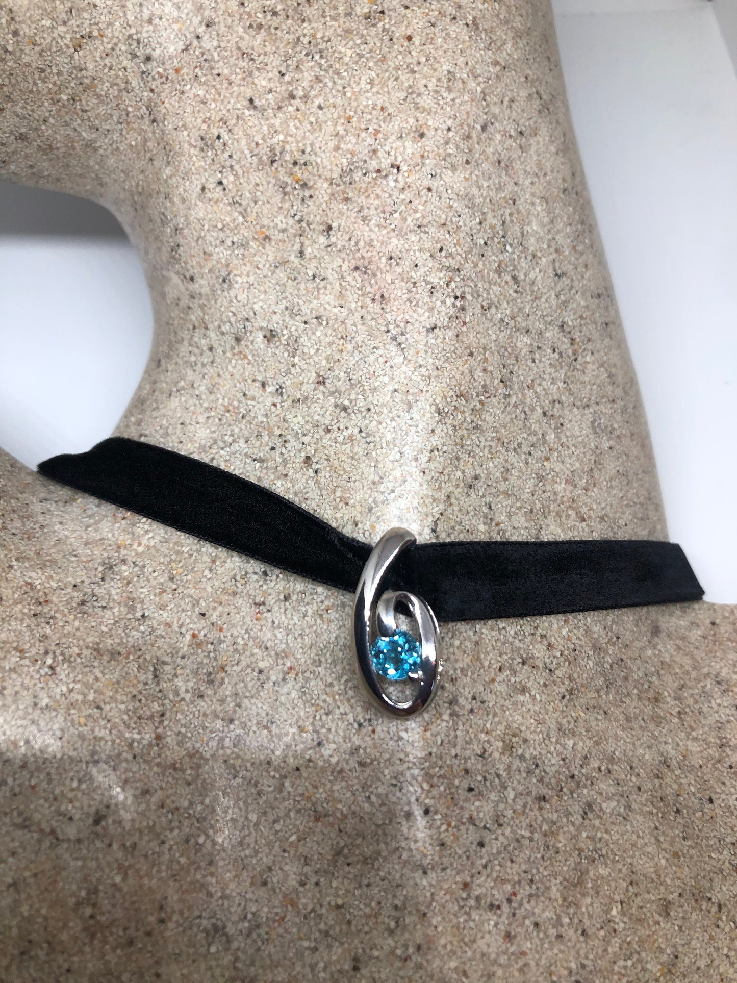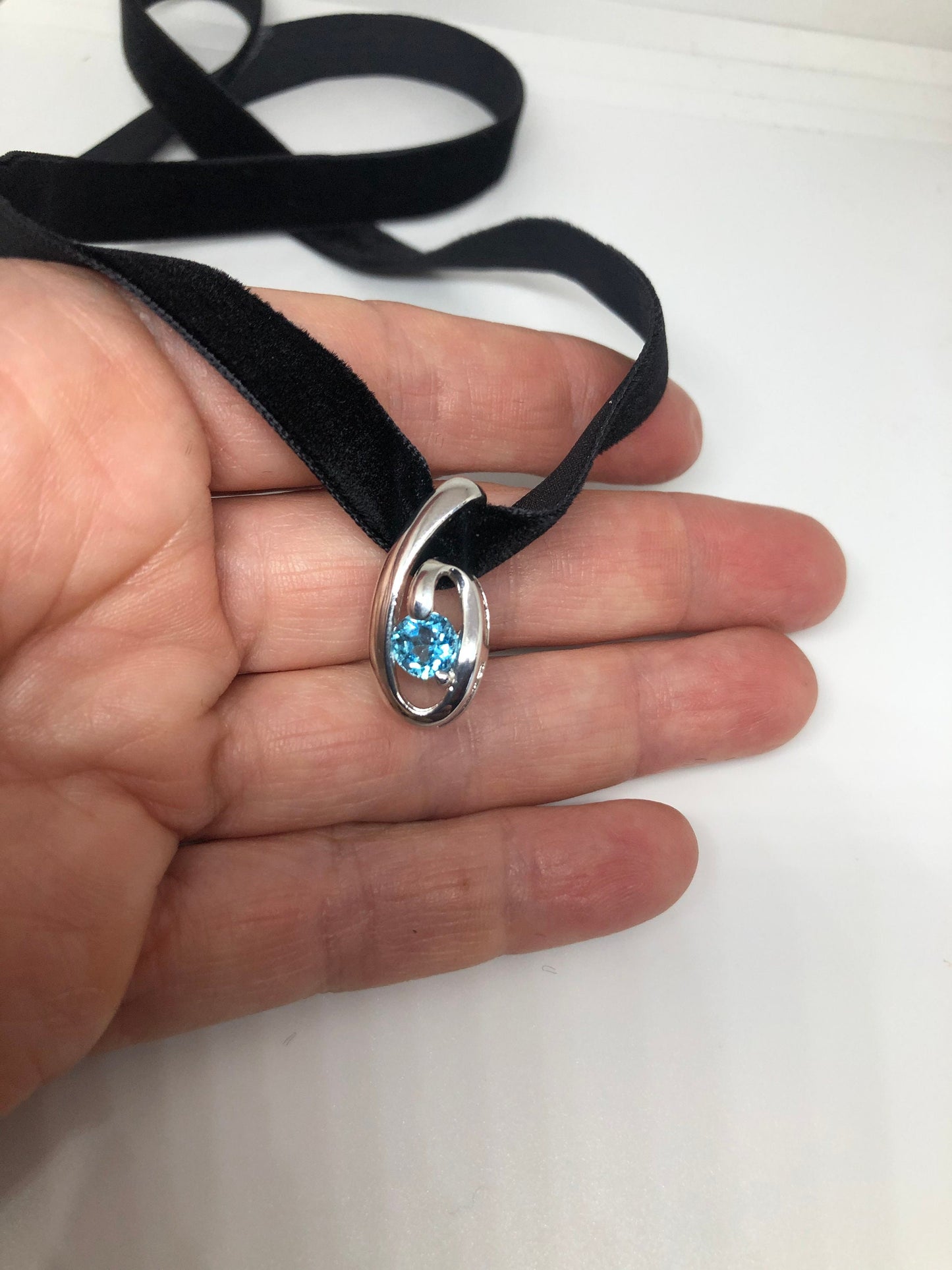Vintage Genuine Blue Topaz 925 Sterling Silver Deco Choker Necklace Pendant
