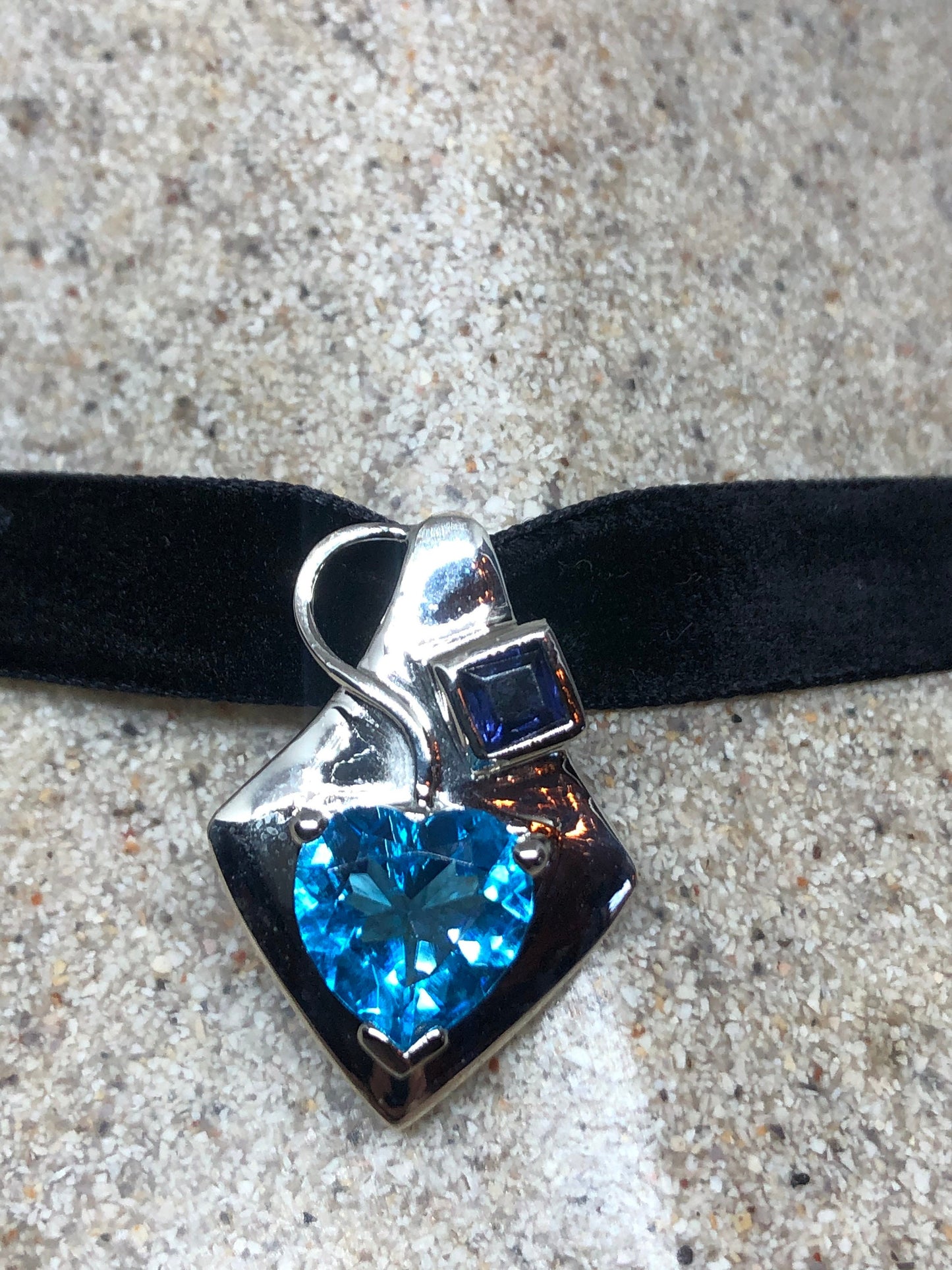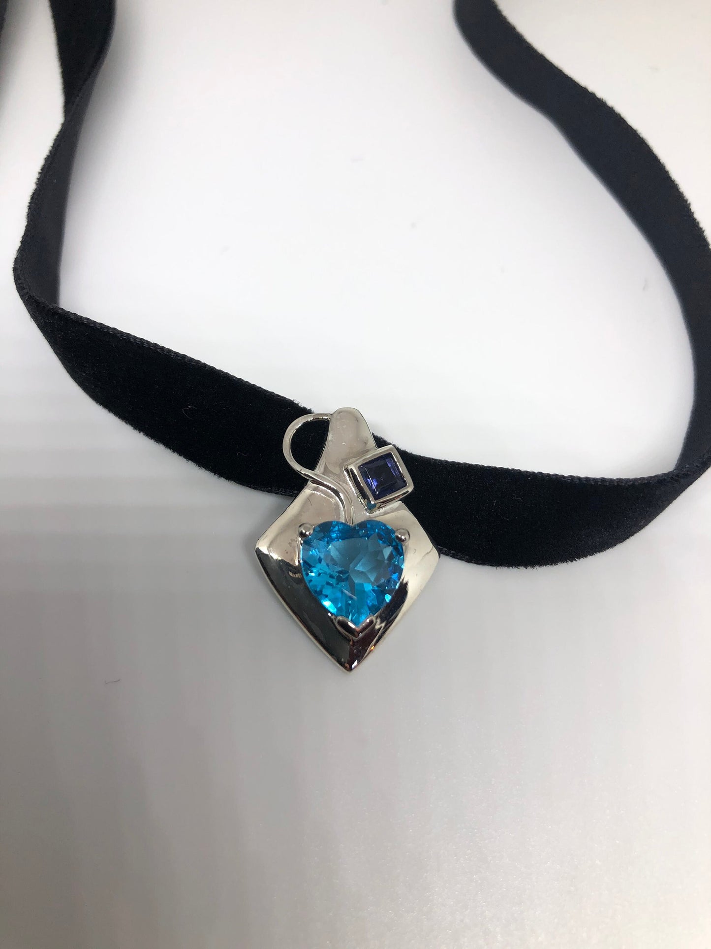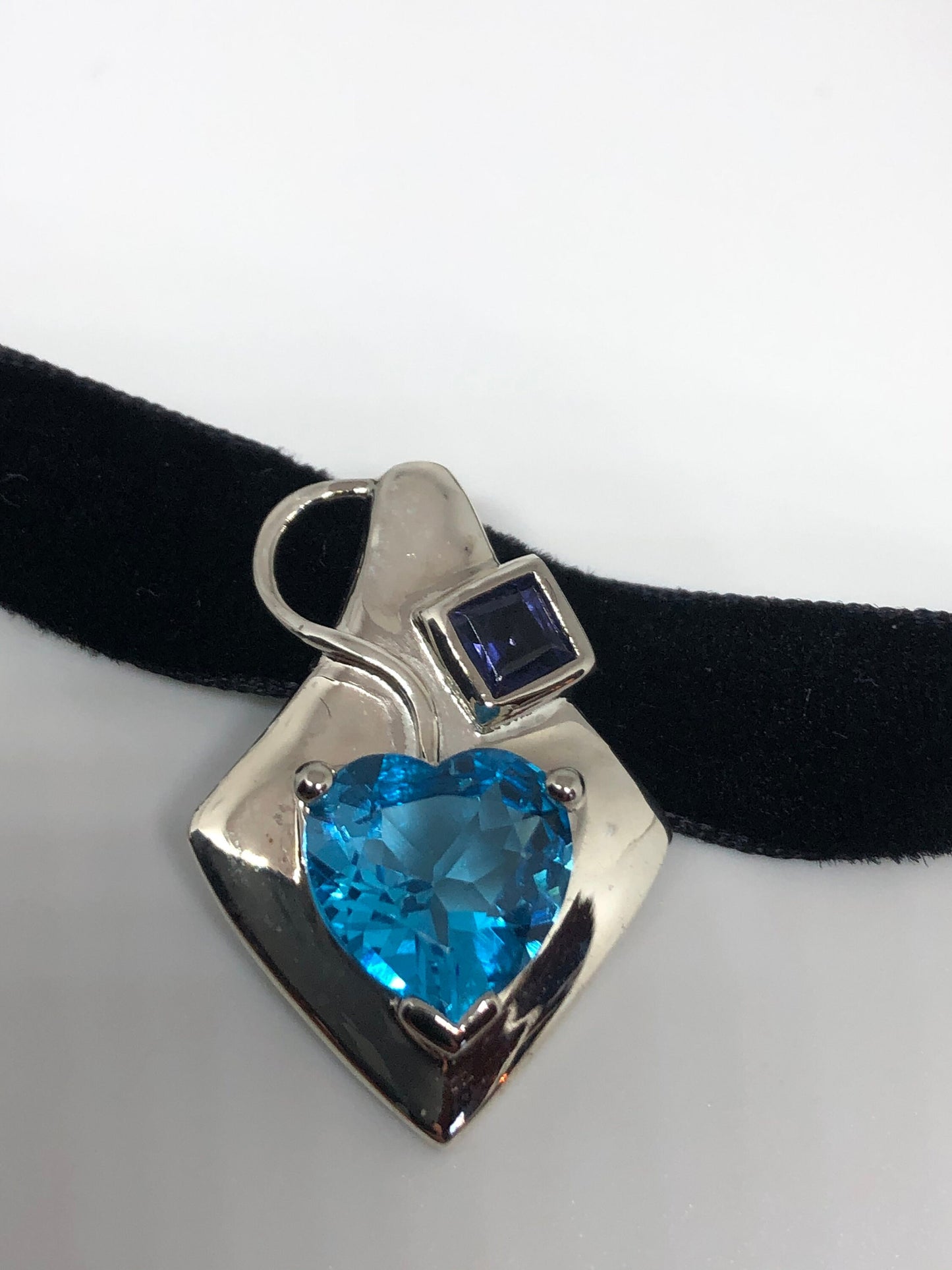 Vintage Genuine Blue Topaz 925 Sterling Silver Deco Choker Necklace Pendant