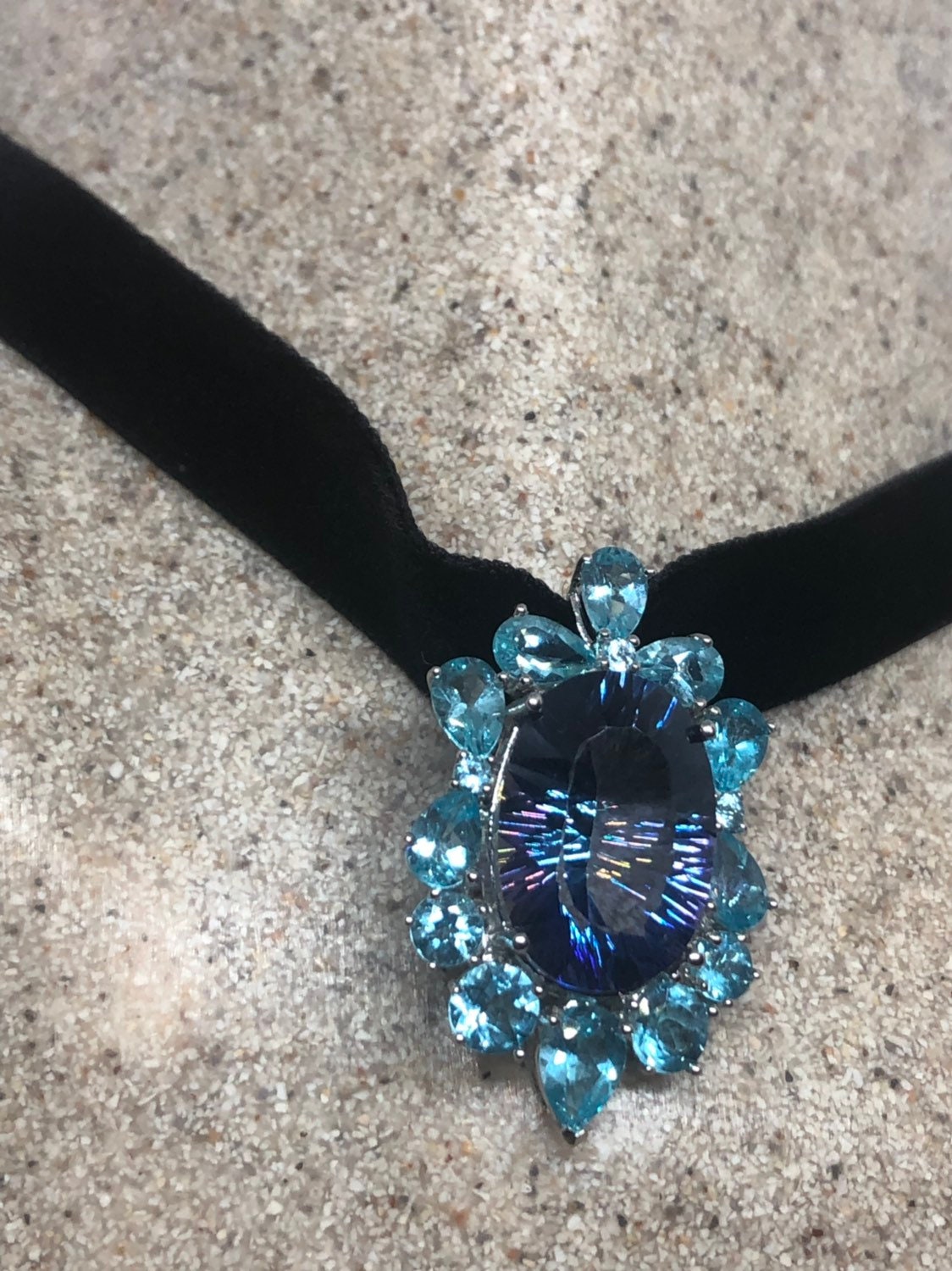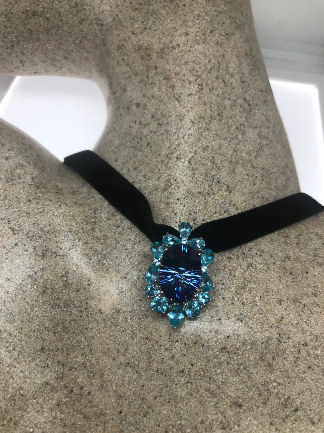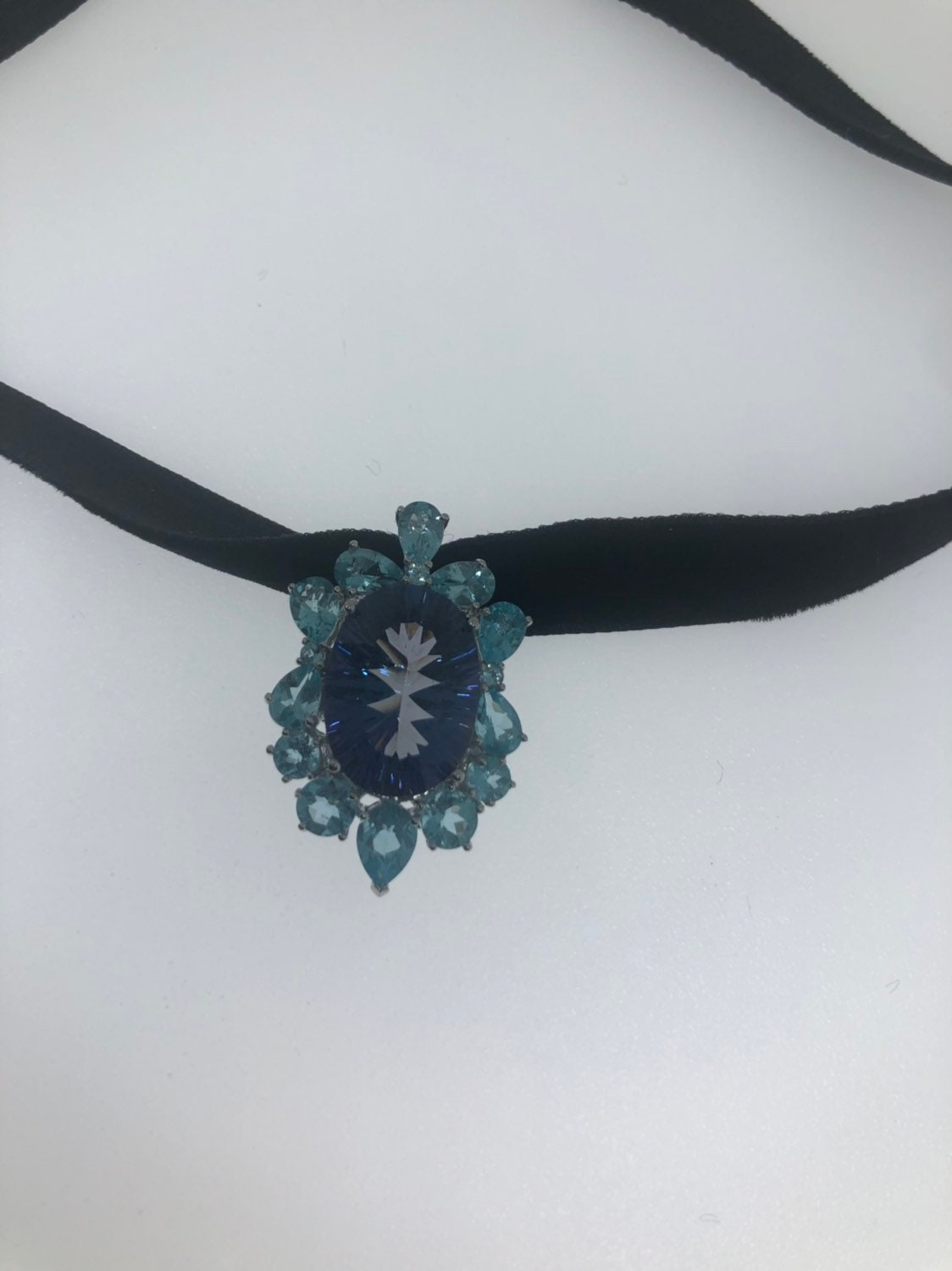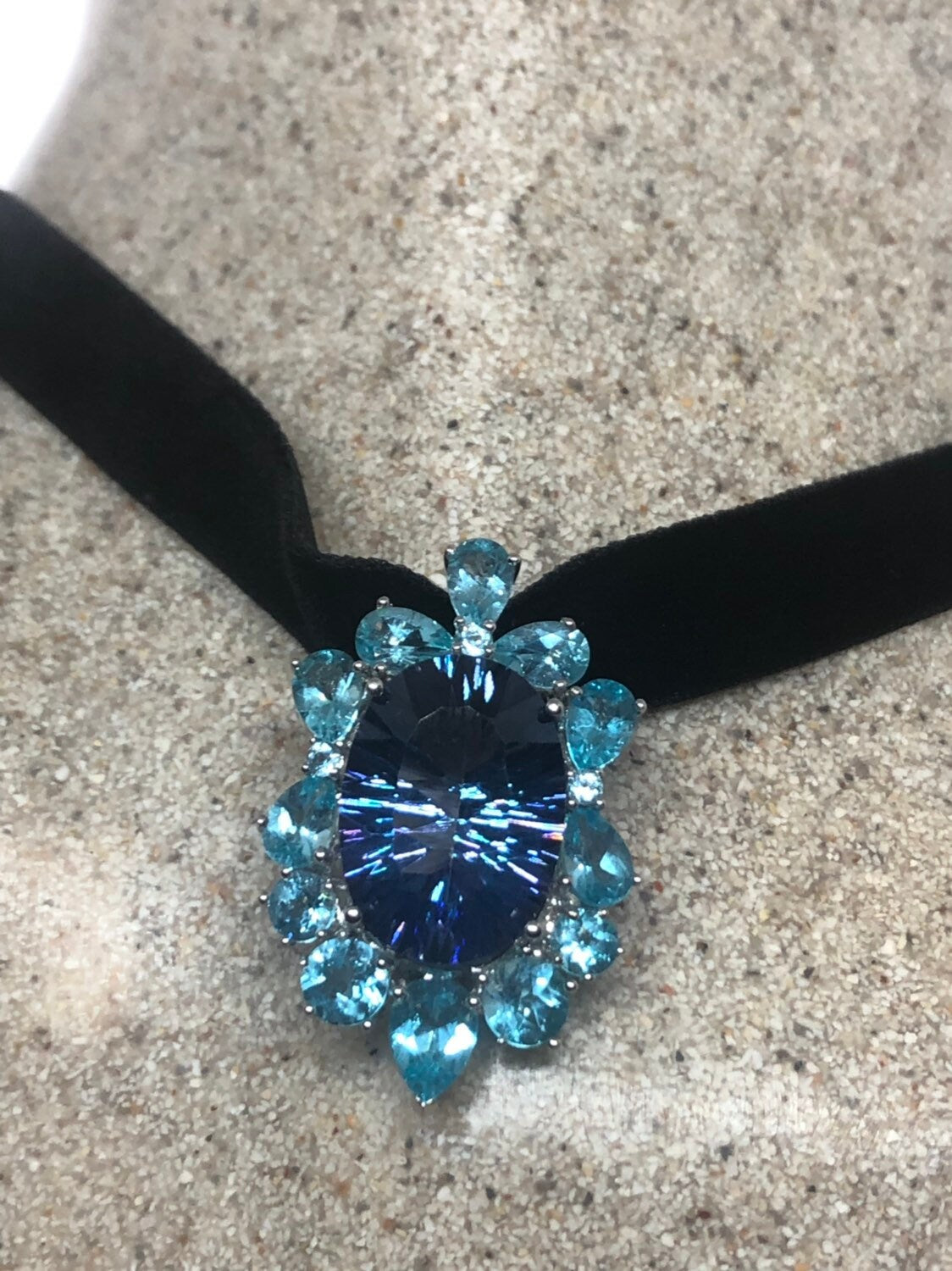 Deep mystic Blue Topaz surrounded by paler blue topaz