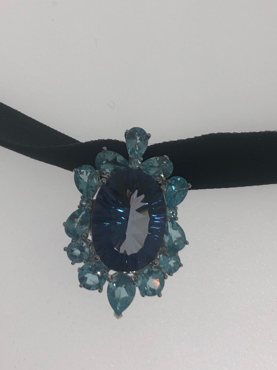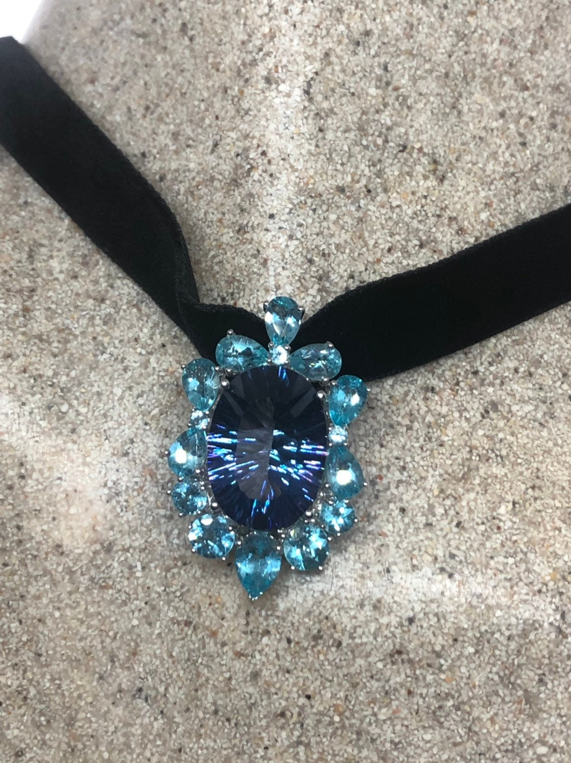 Vintage Genuine Deep Mystic Blue Topaz 925 Sterling Silver Necklace Pendant