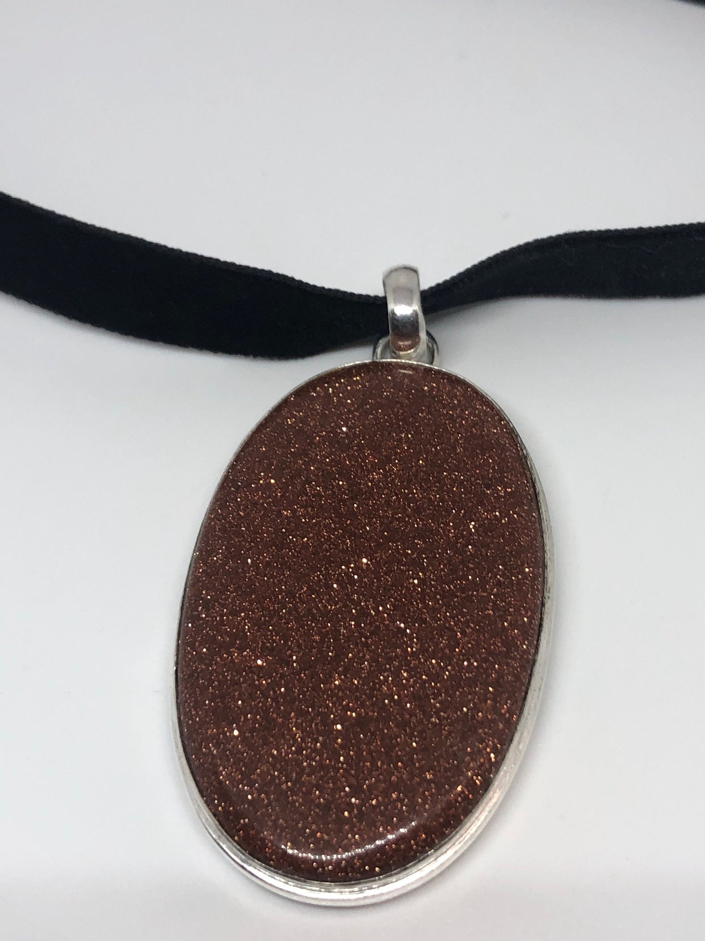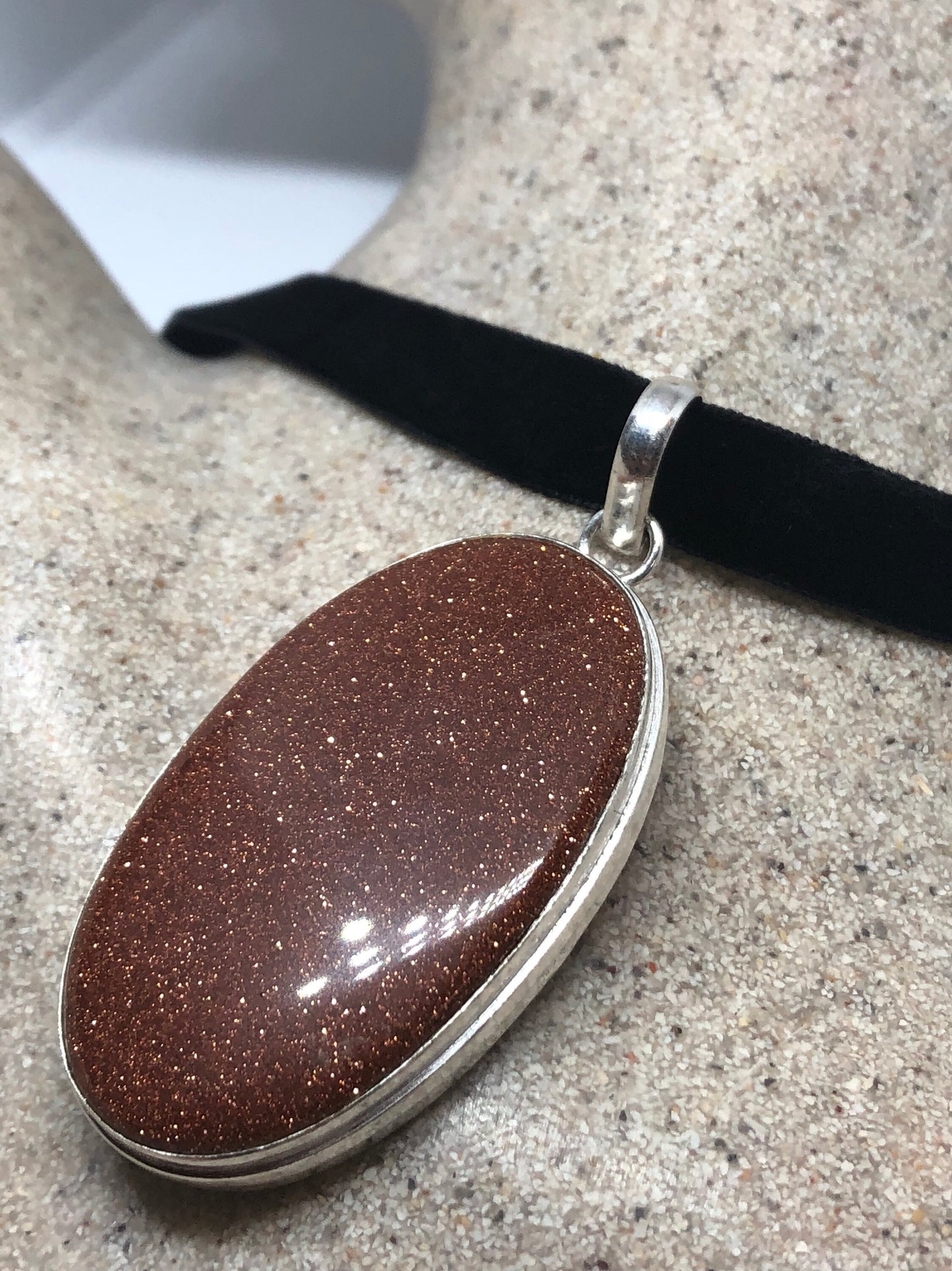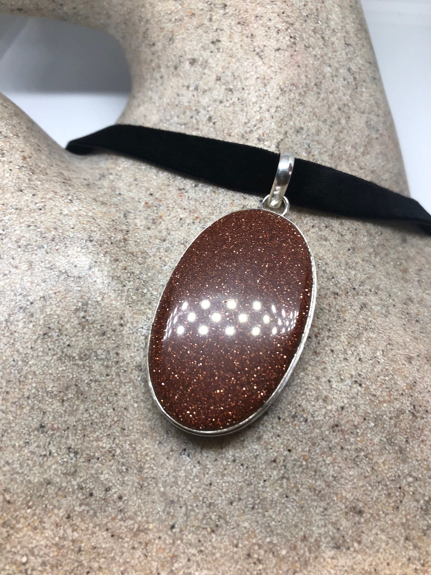 Vintage Golden Sandstone Choker Goldstone Silver Necklace