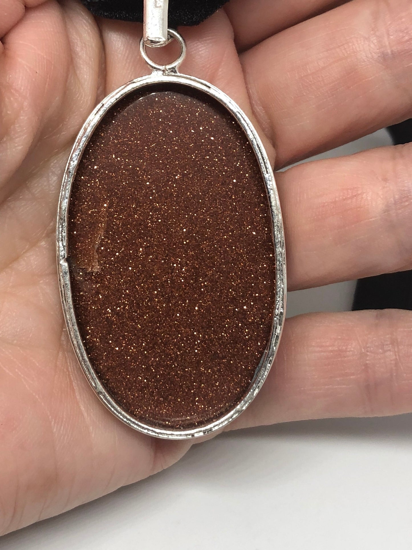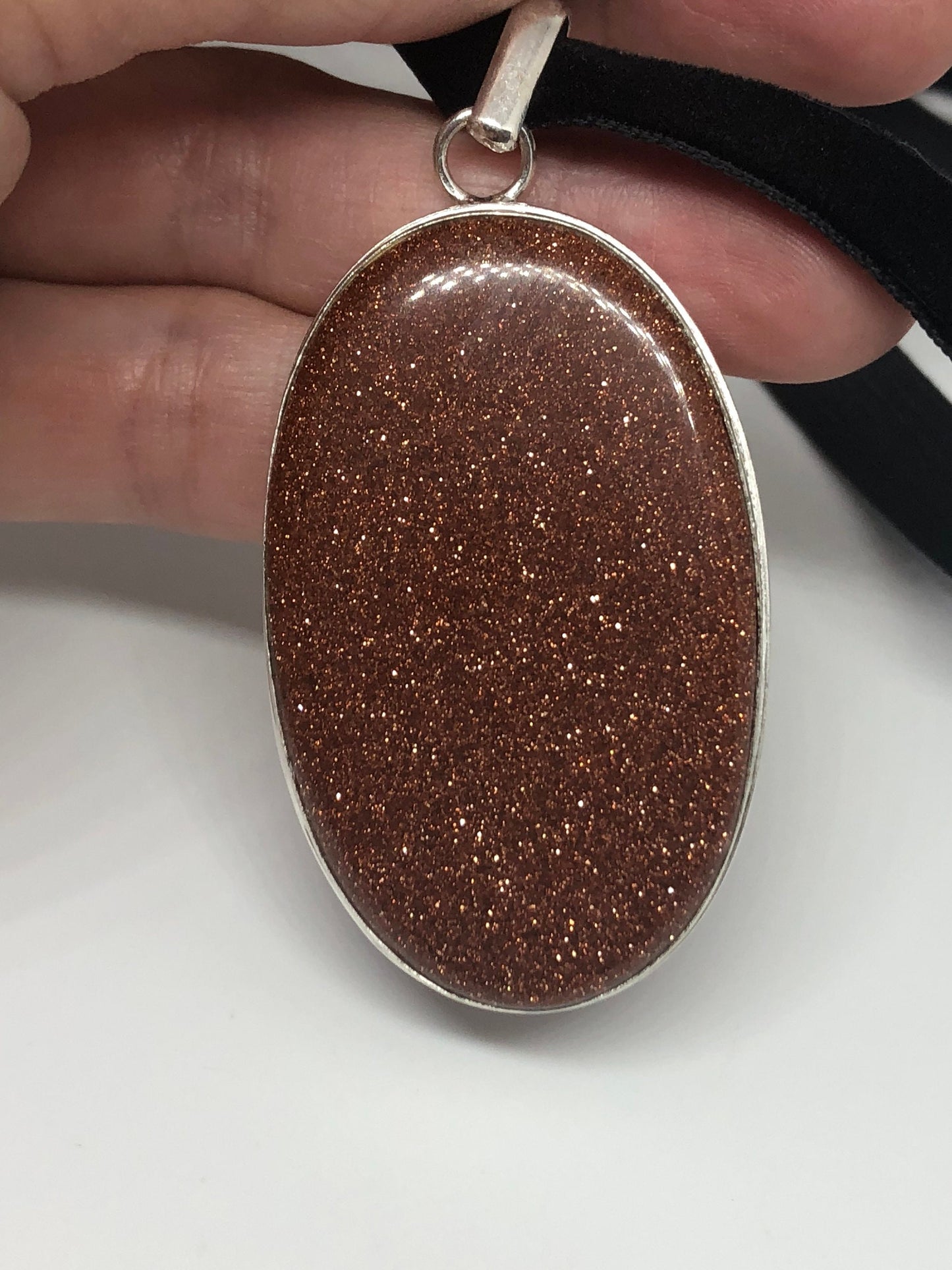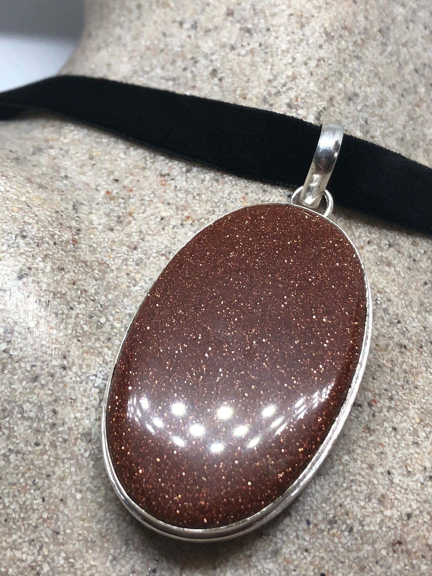 Vintage Golden Sandstone Choker Goldstone Silver Necklace