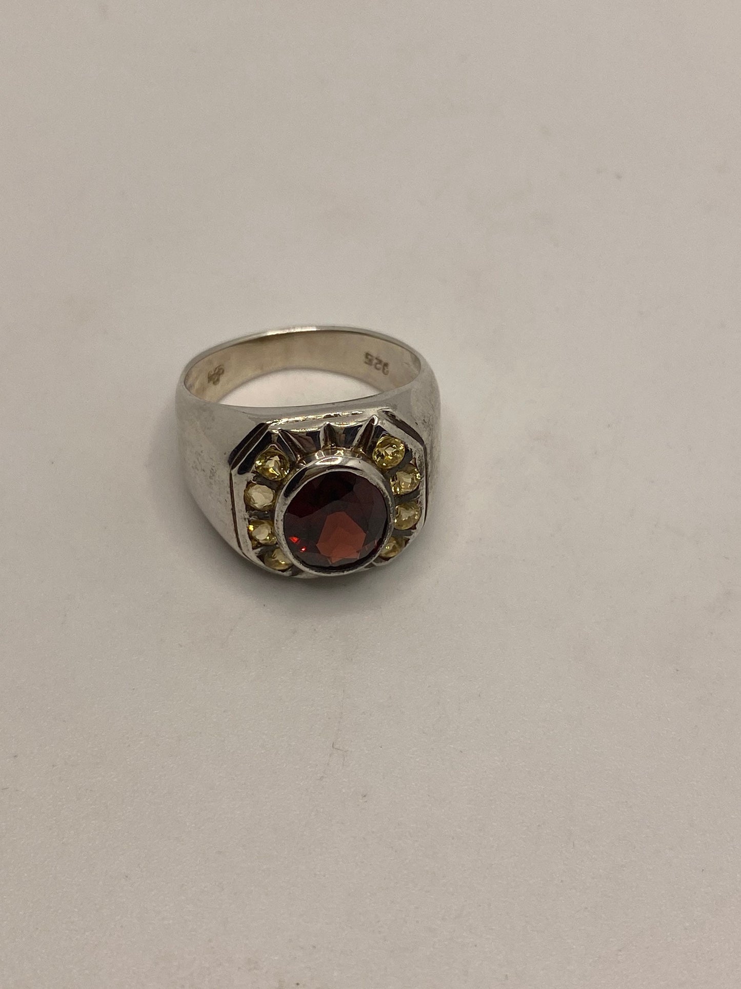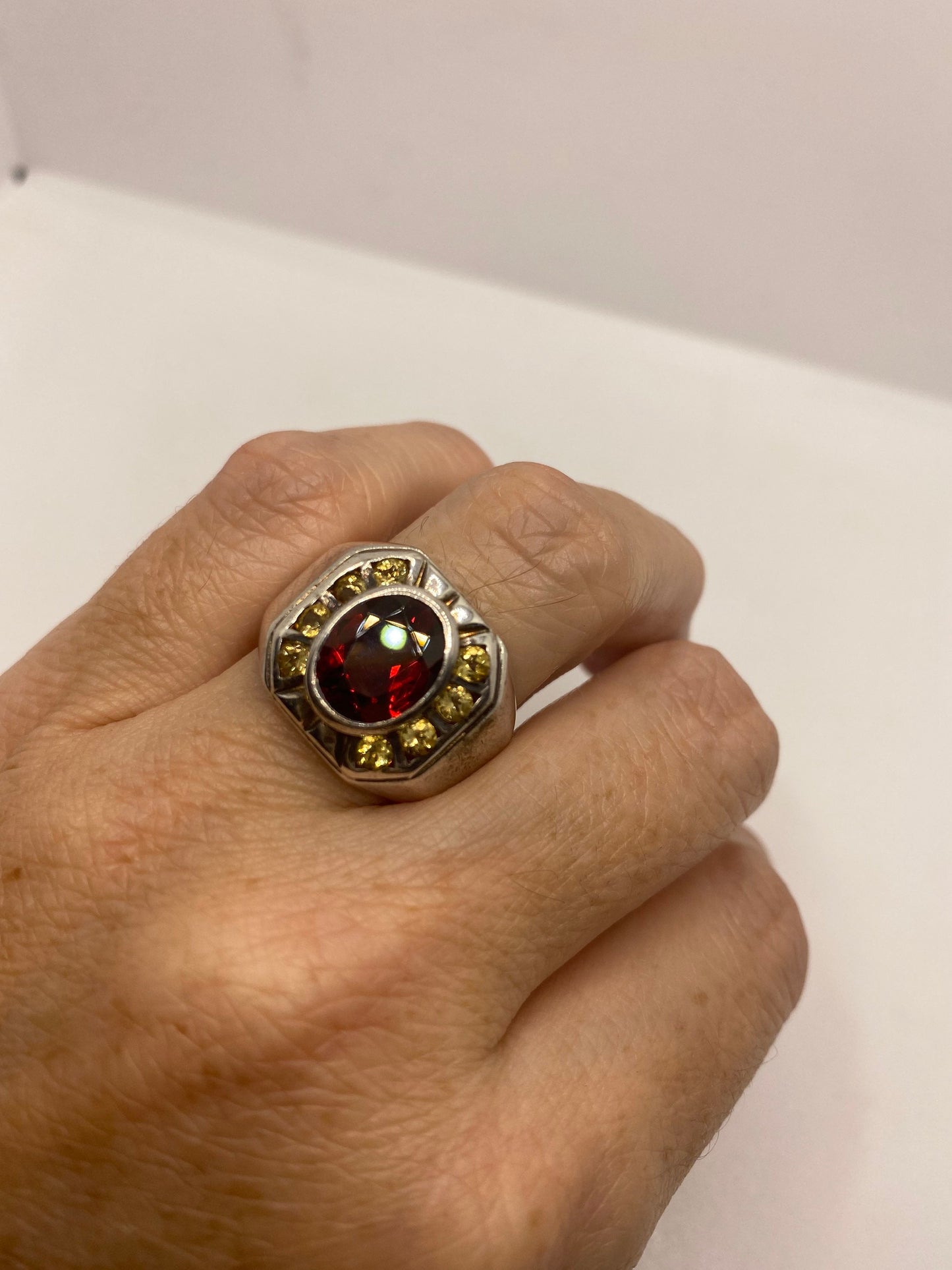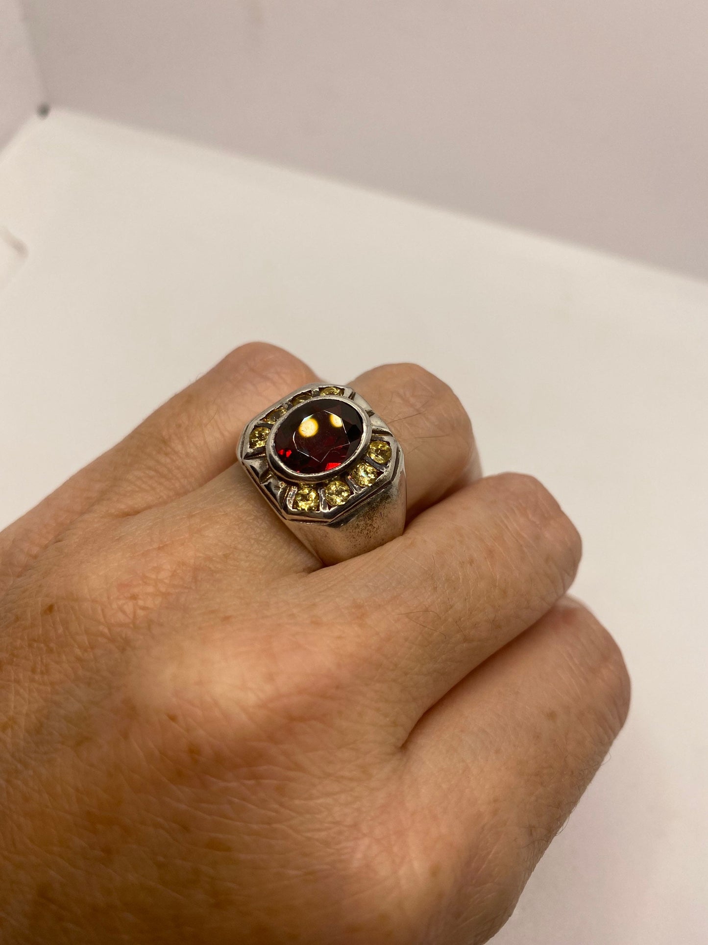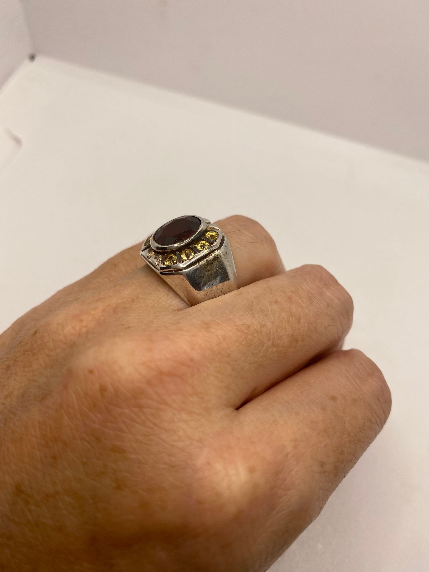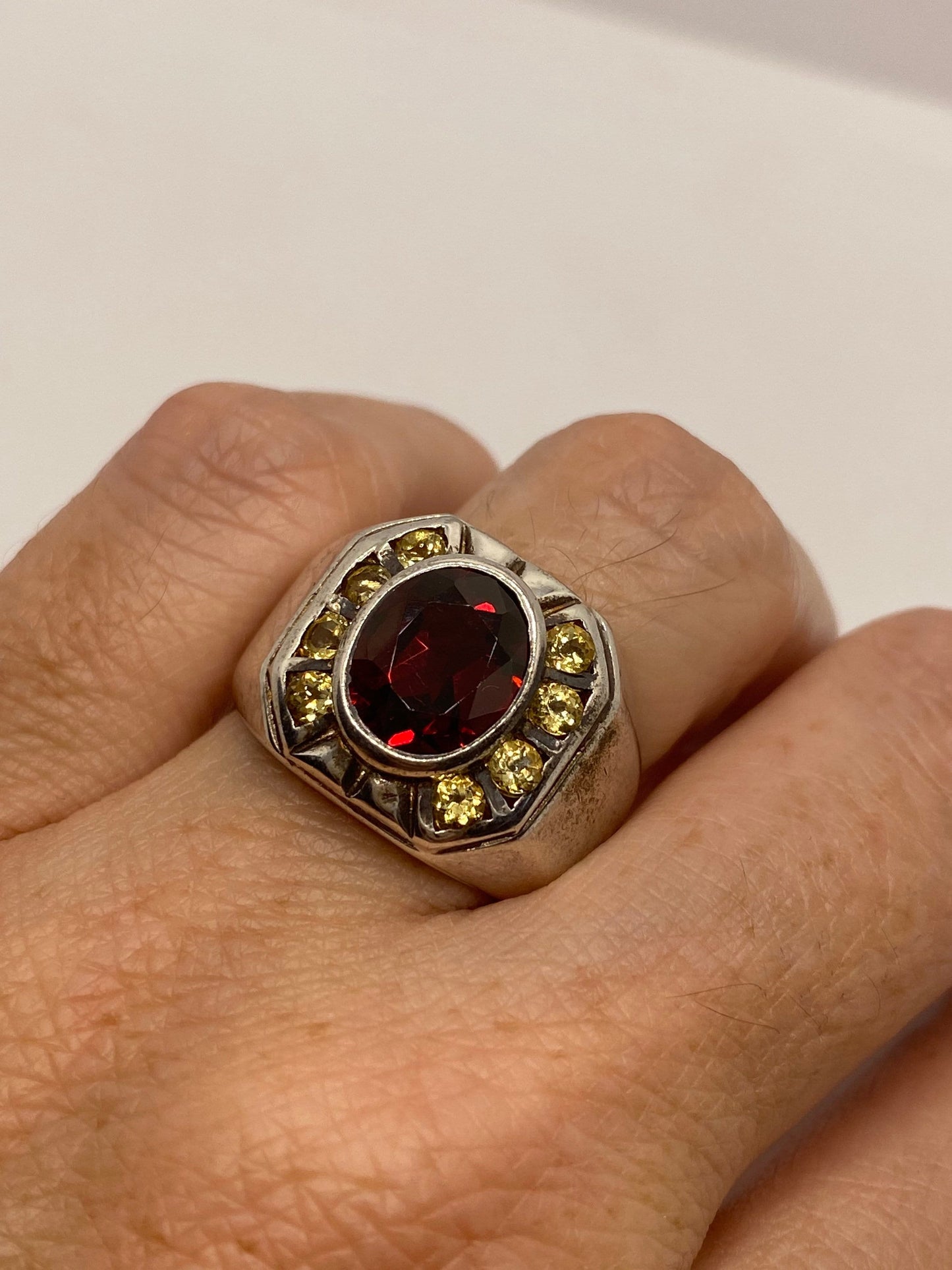 Vintage Golden Topaz Garnet 925 Sterling Silver Gothic Ring