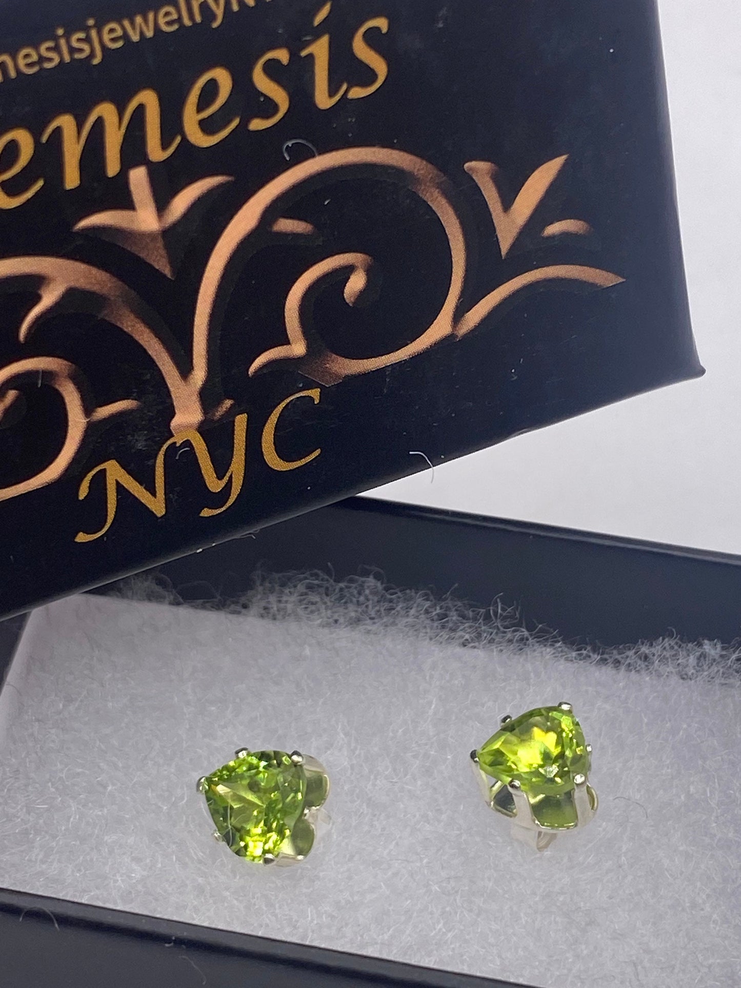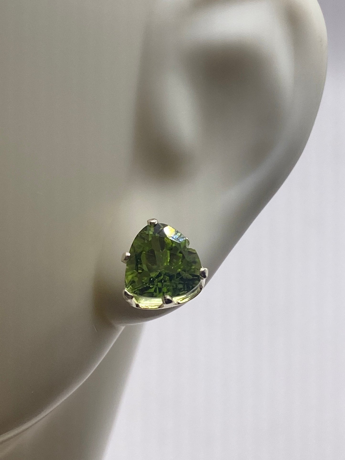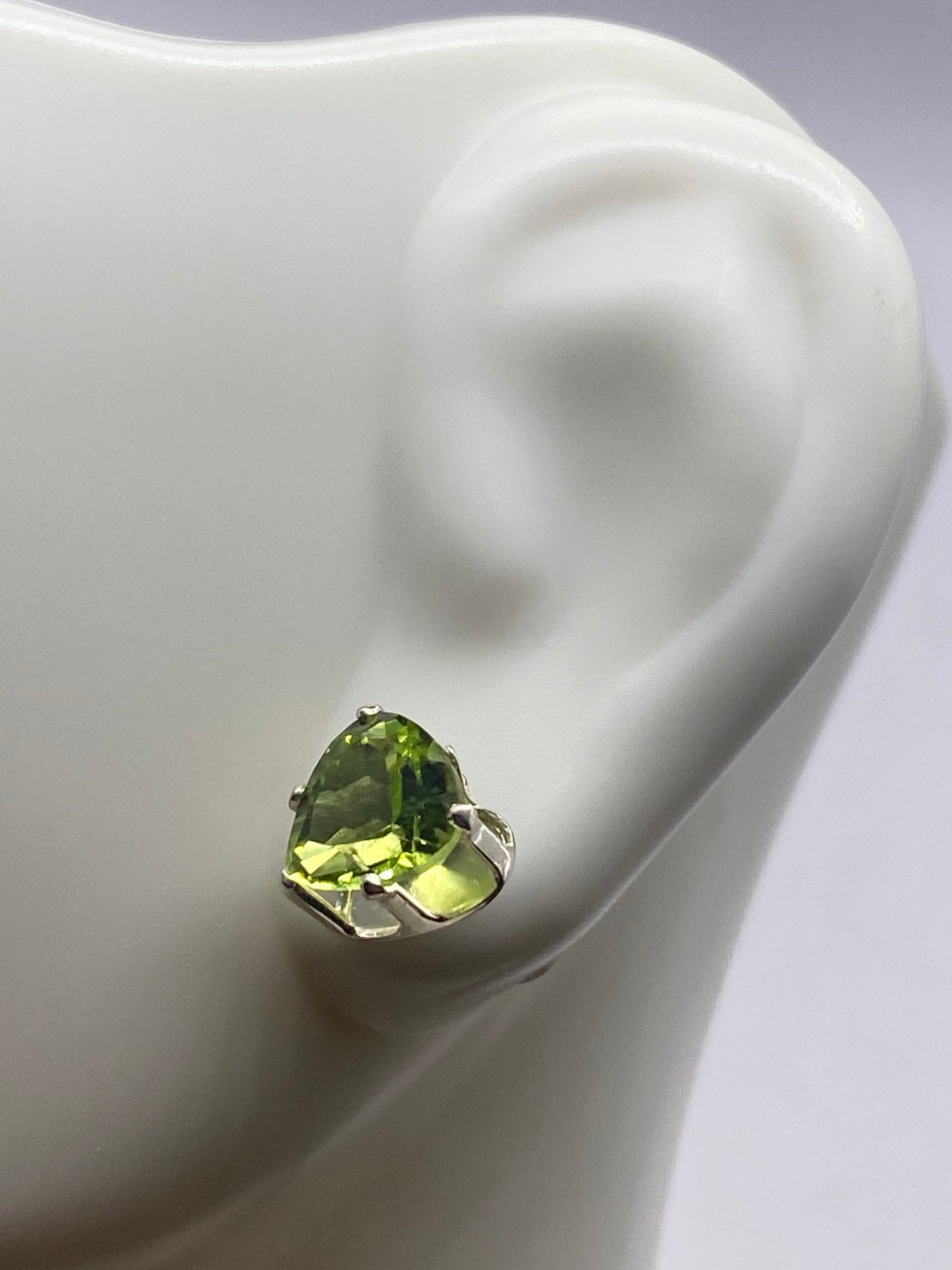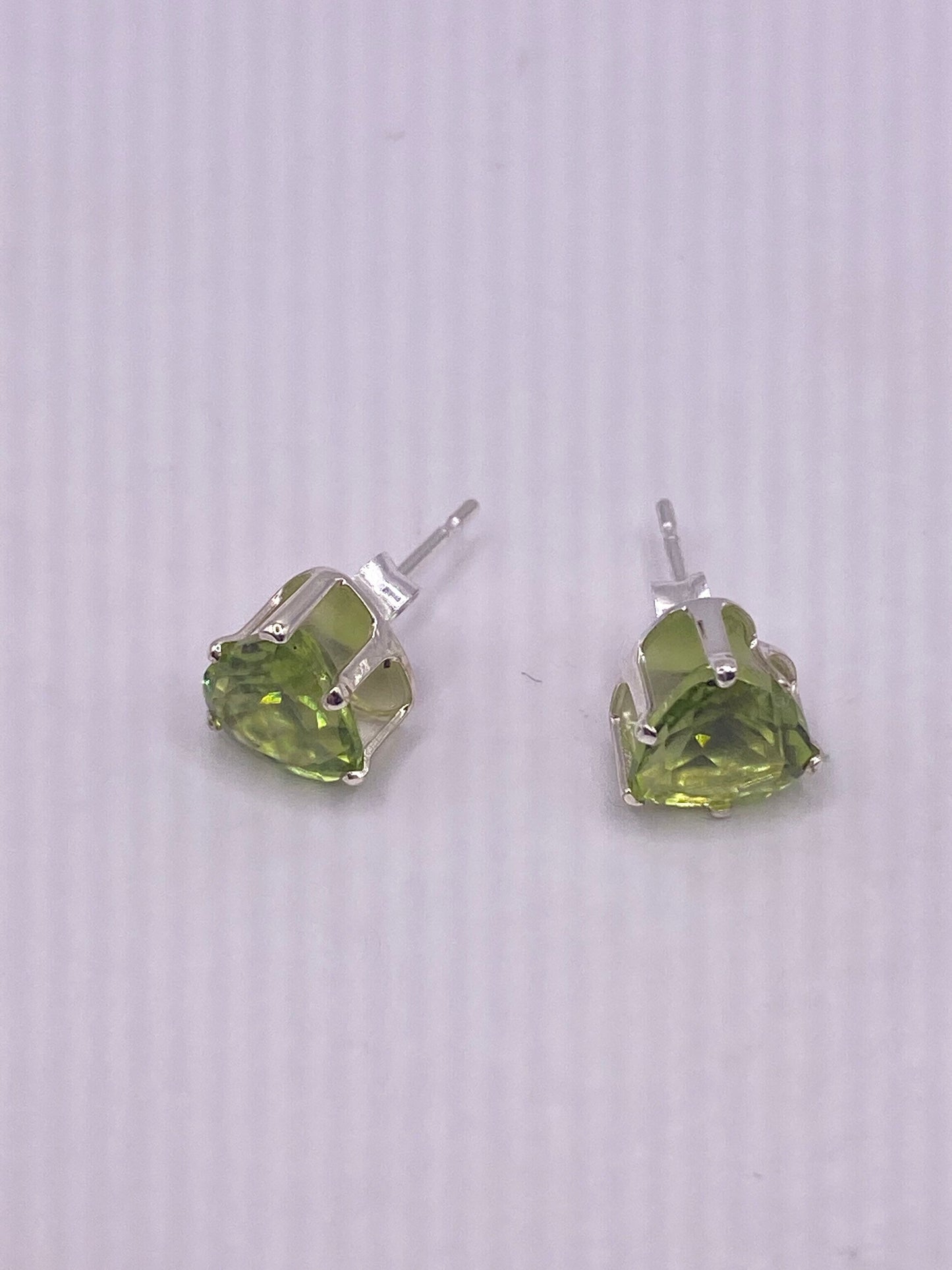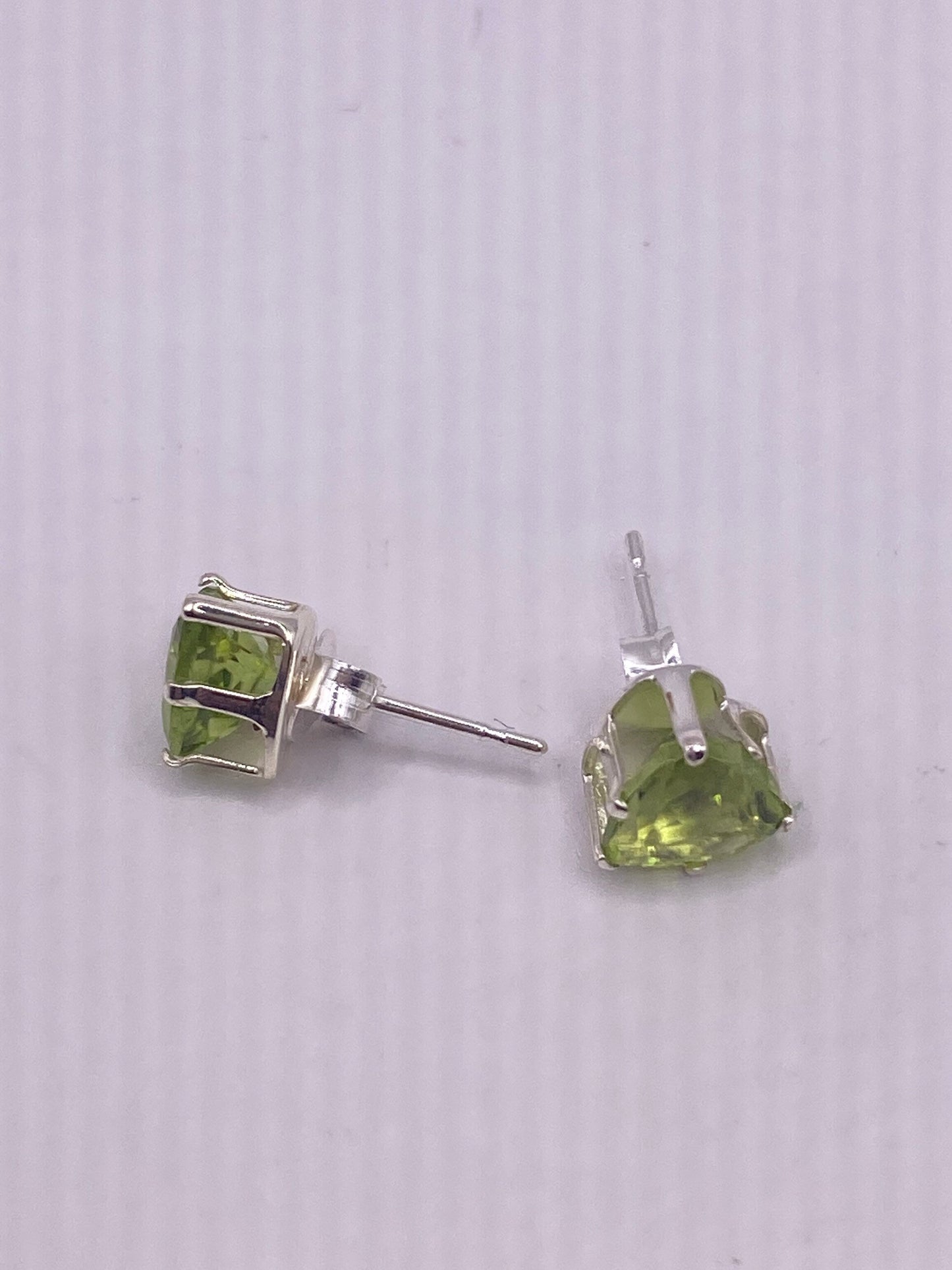 Vintage Green Peridot in 925 Sterling Silver Post Button Earrings