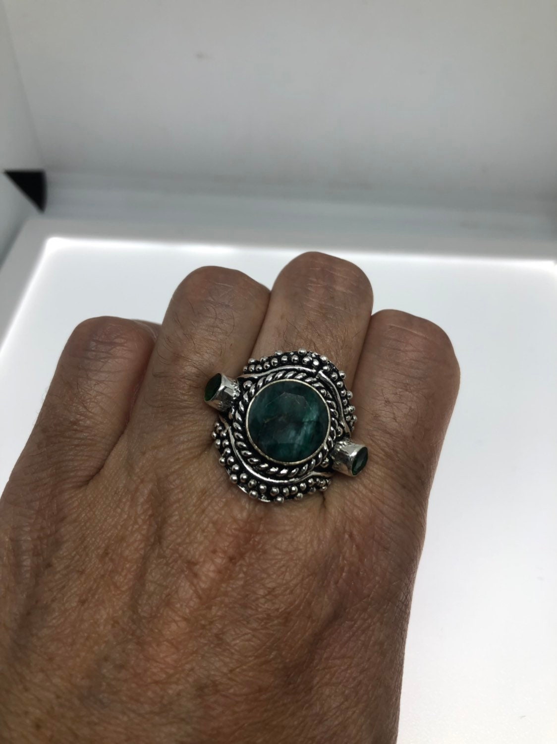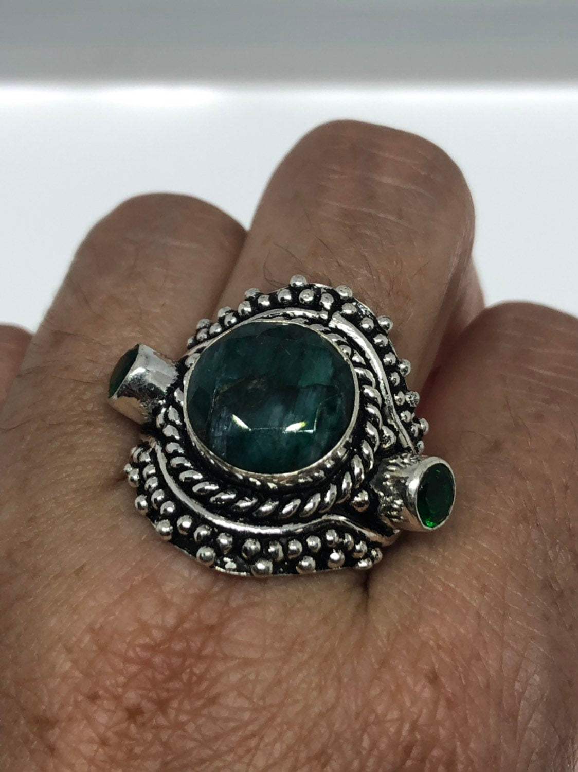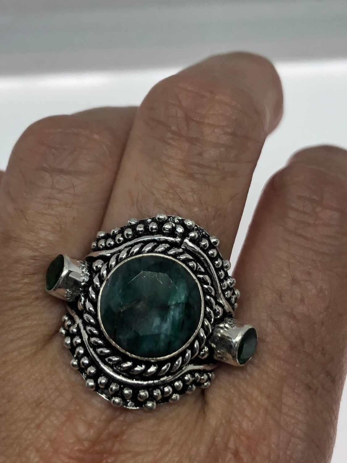 Vintage Green Raw Emerald Silver Bronze Statement Boho Ring