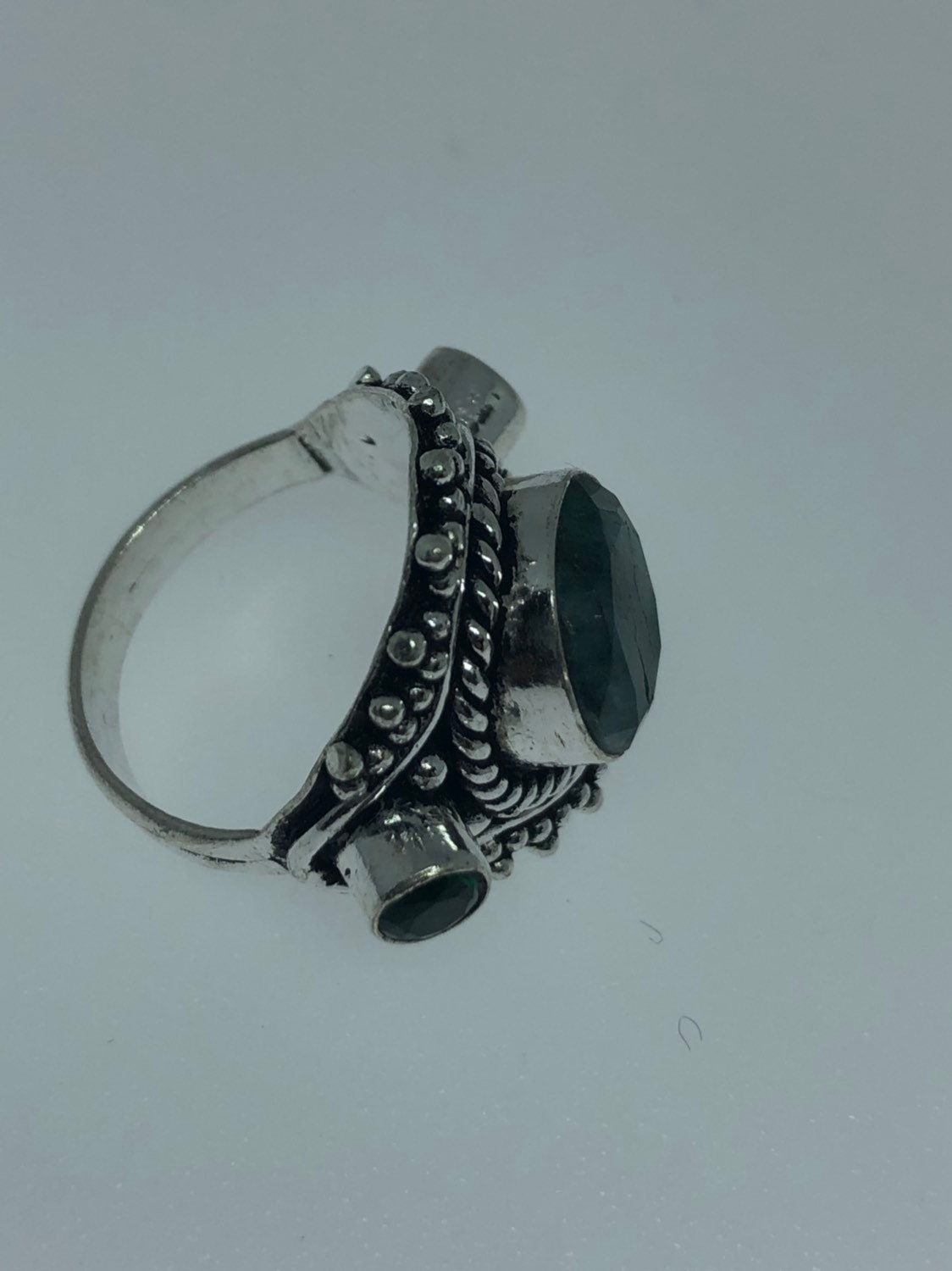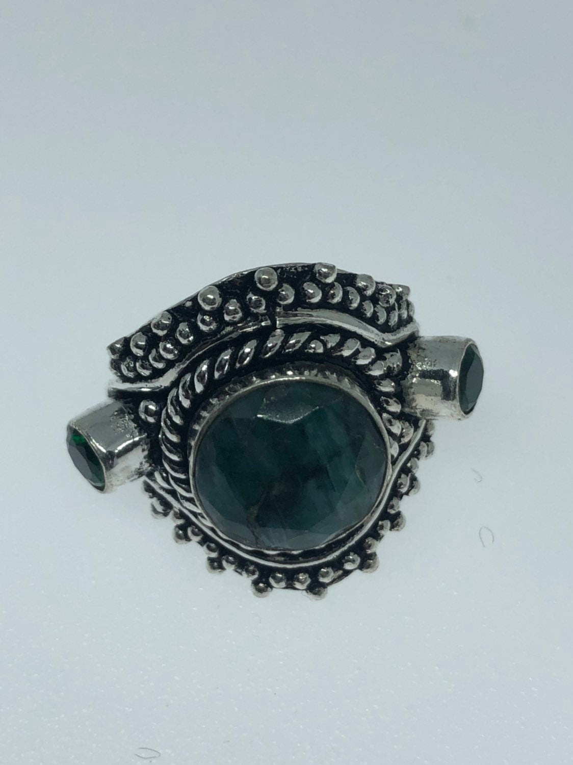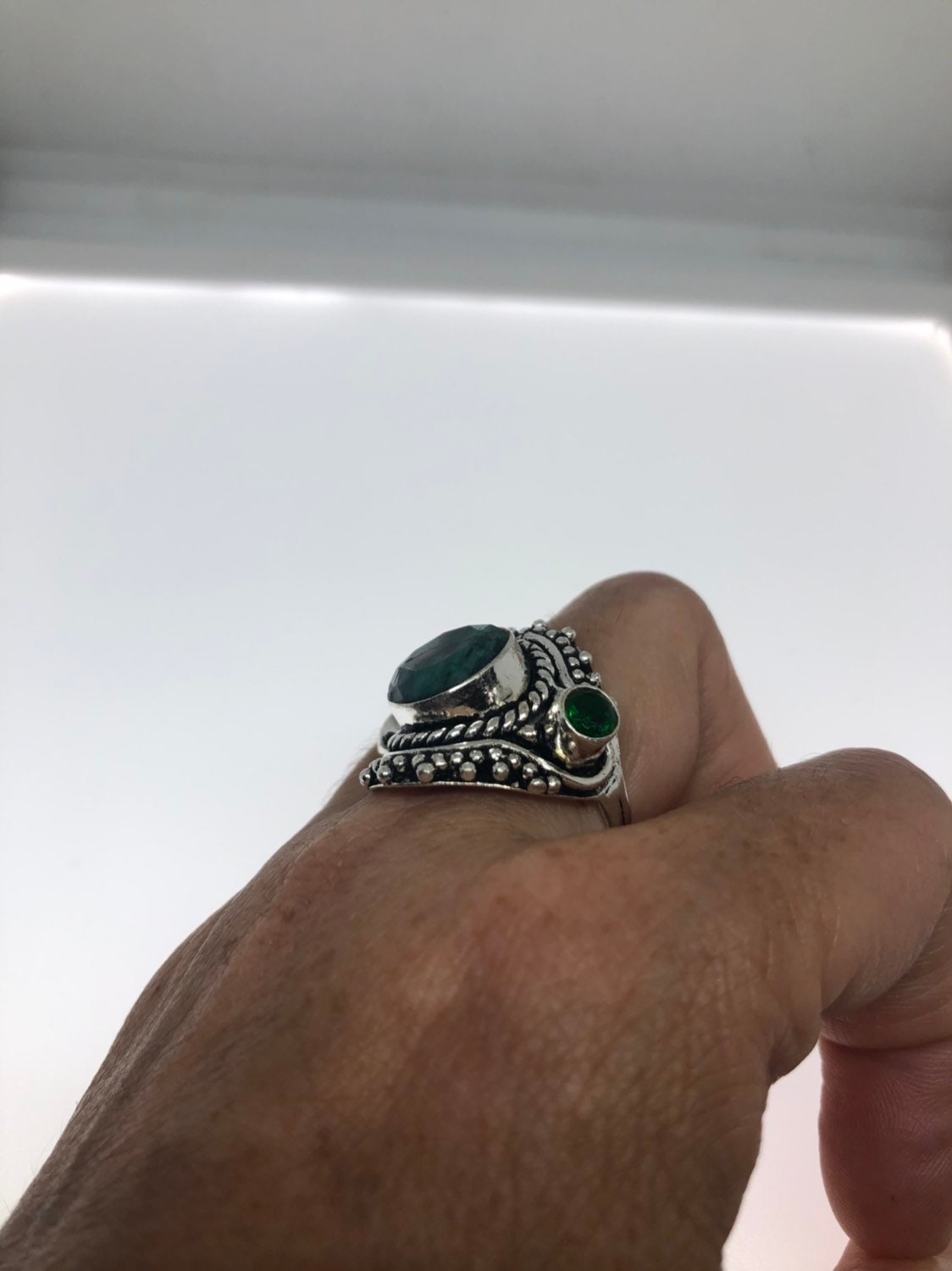 Vintage Green Raw Emerald Silver Bronze Statement Boho Ring